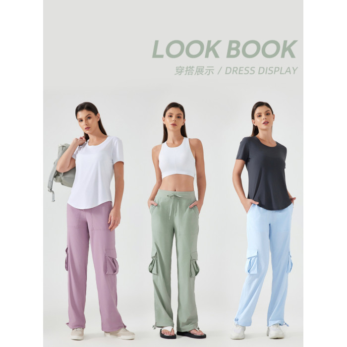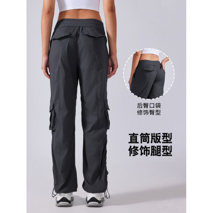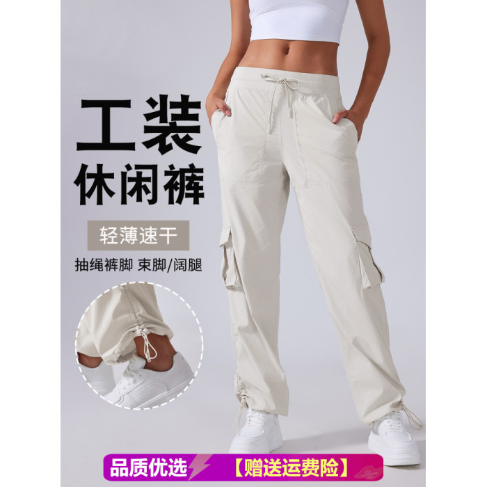 【夏季薄款】lu同款休閒工裝運動褲女寬松顯瘦抽繩兩穿速乾健身褲