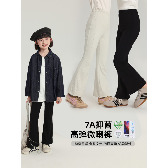 布丁哈魯童裝秋裝女童洋氣褲子2025春秋新款兒童雲感高彈微喇褲