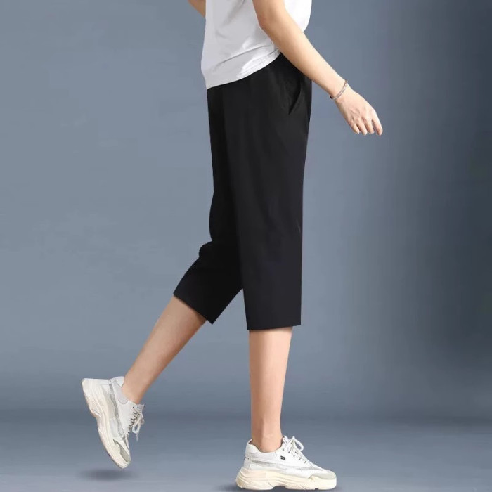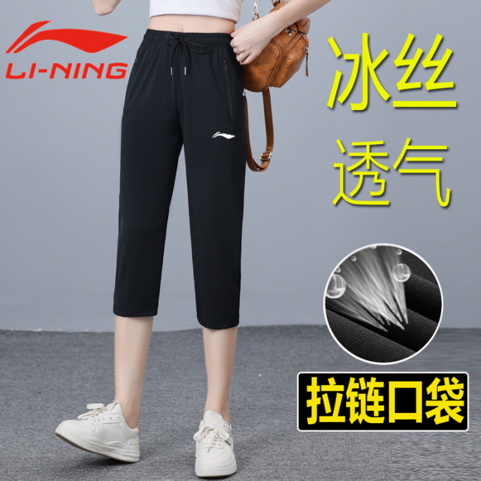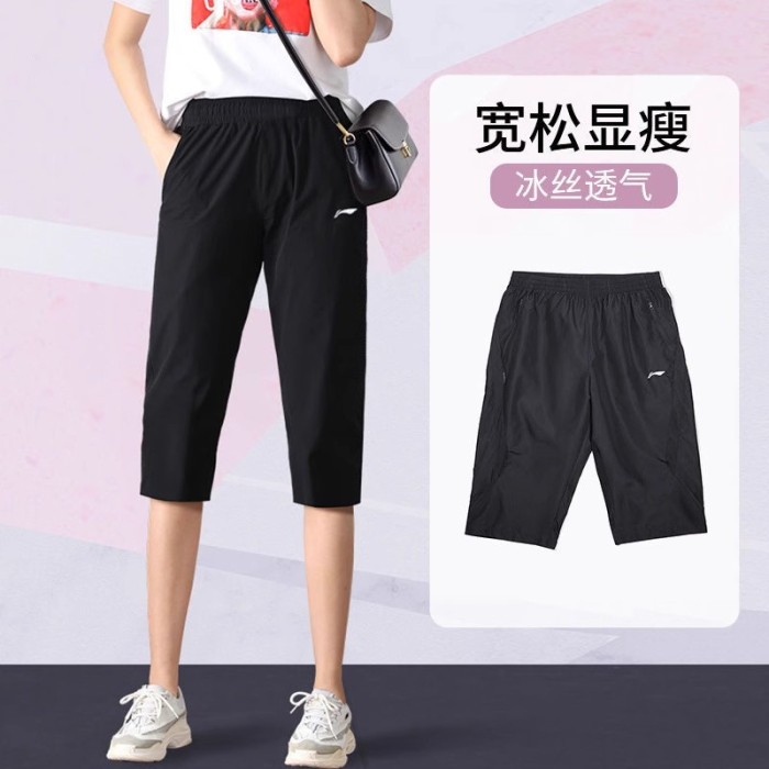 李甯七分褲運動褲女夏季薄款冰絲速乾寬松休閒健身跑步透氣短褲子