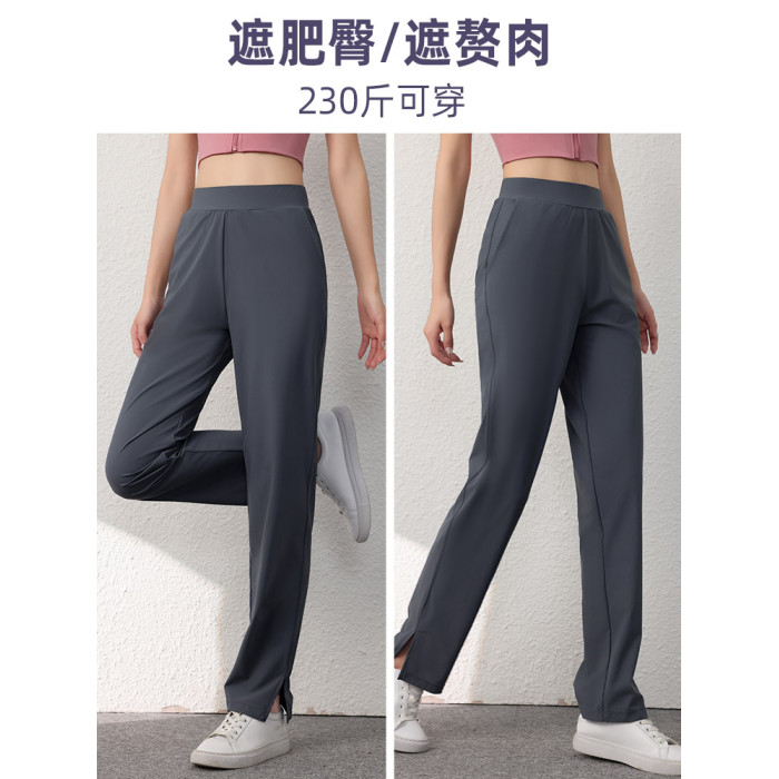 加大碼跑步褲女寬松直筒健身長褲運動褲胖mm濶腿速乾褲200斤春秋
