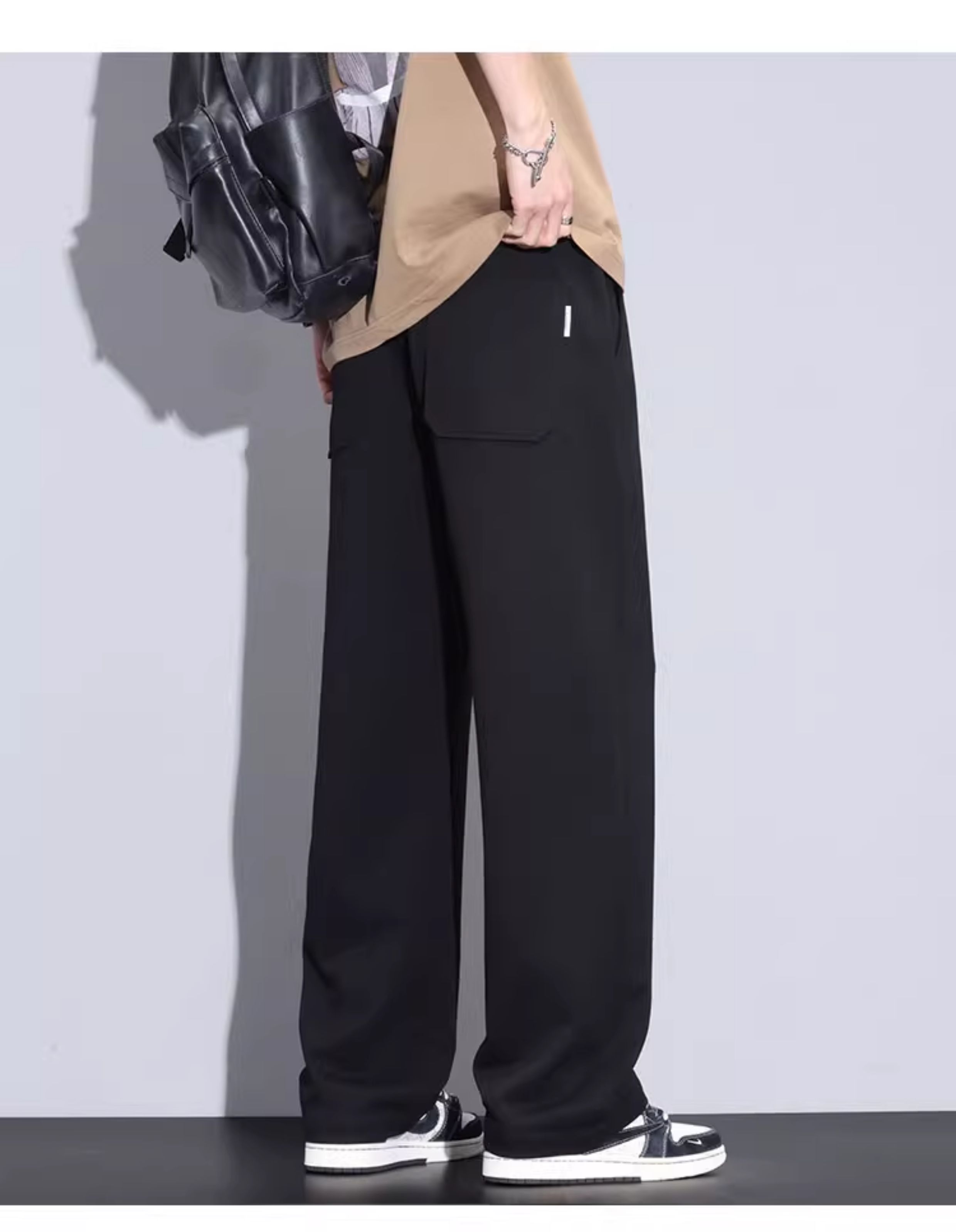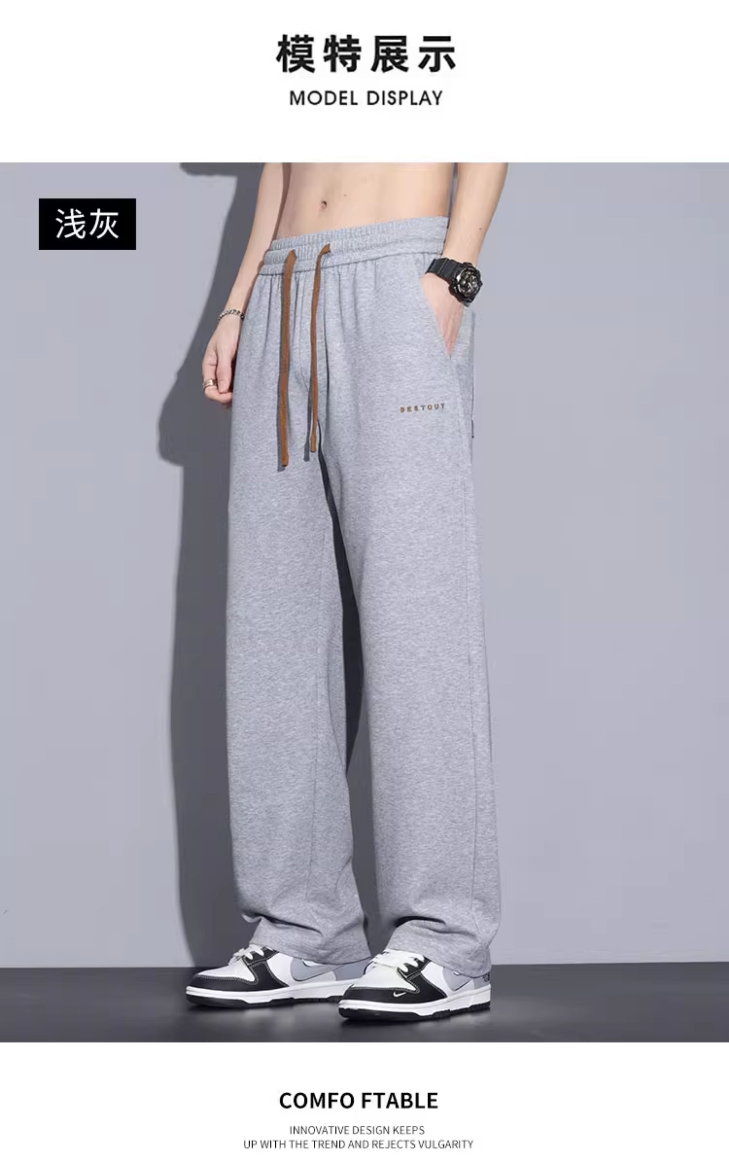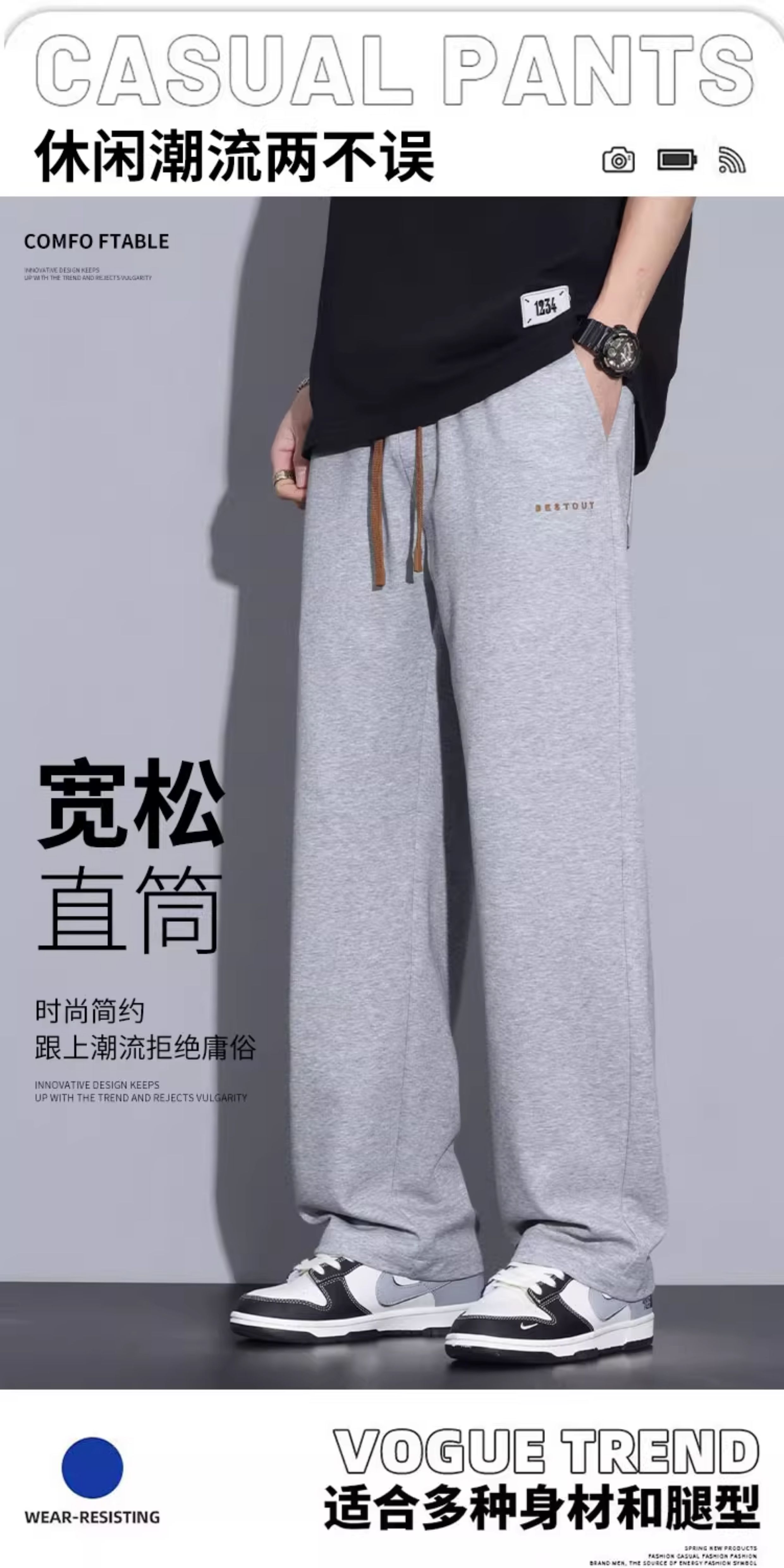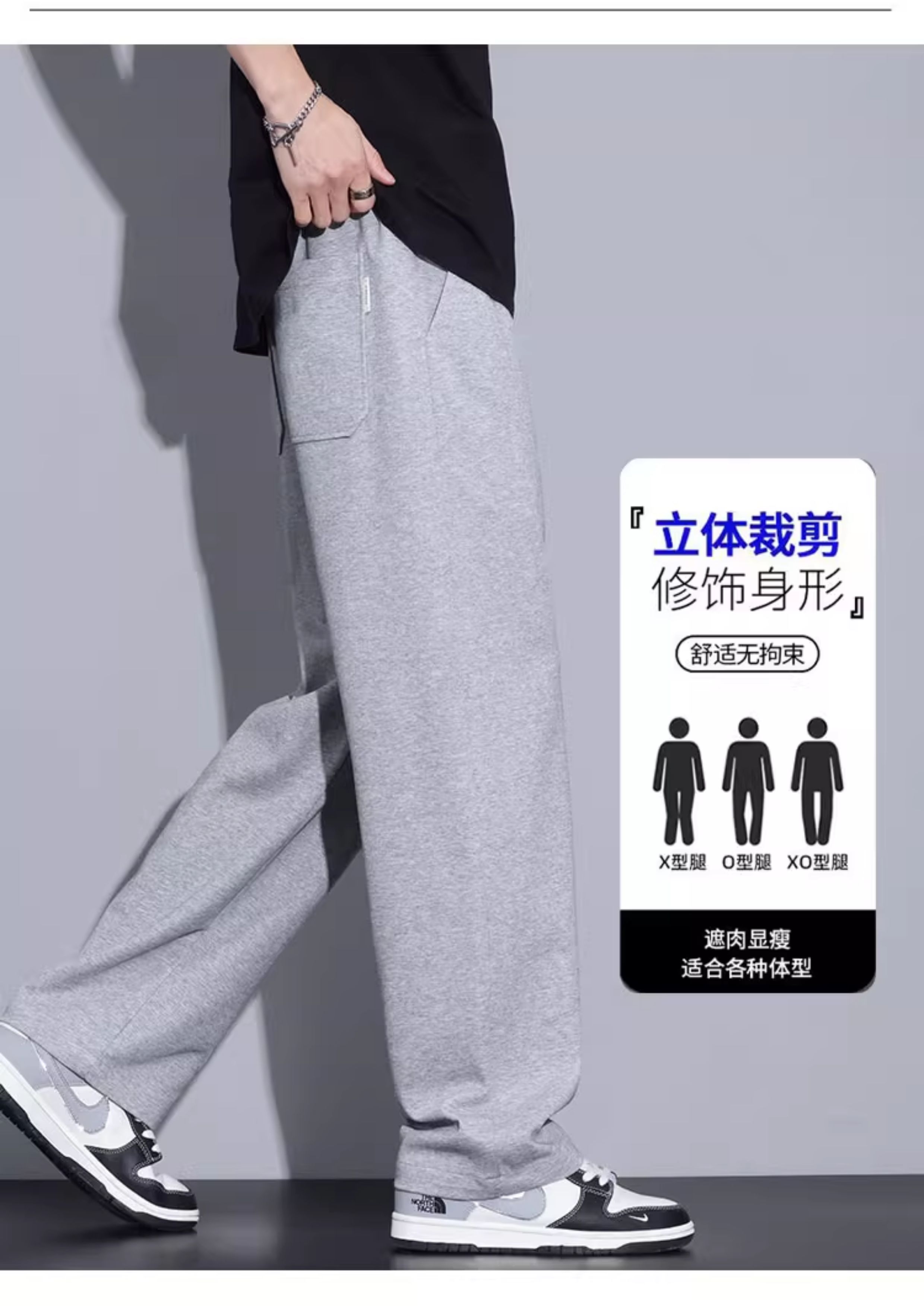 貓人休閒褲男士夏季潮牌高級垂感濶腿褲寬松美式直筒運動褲子男款