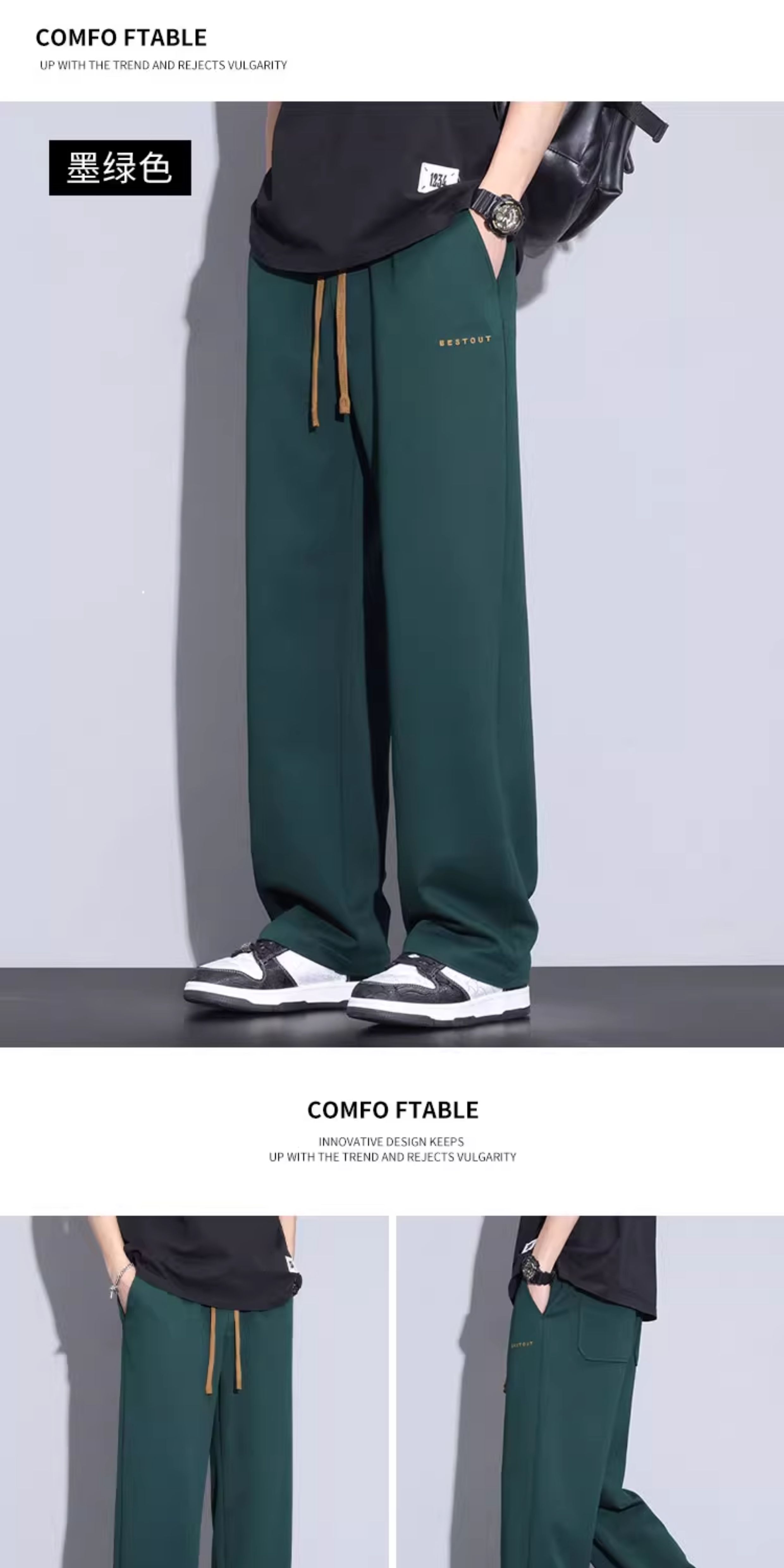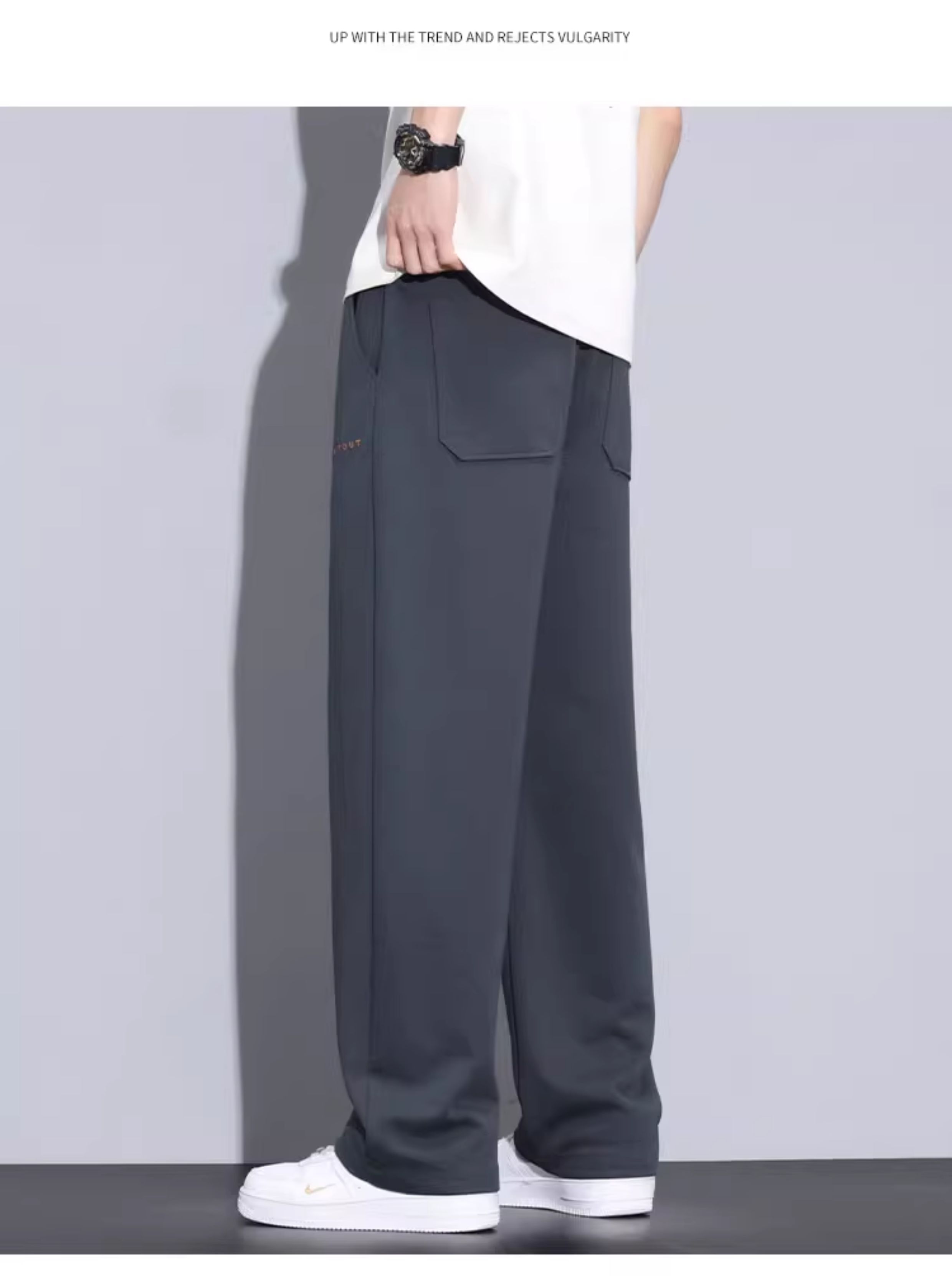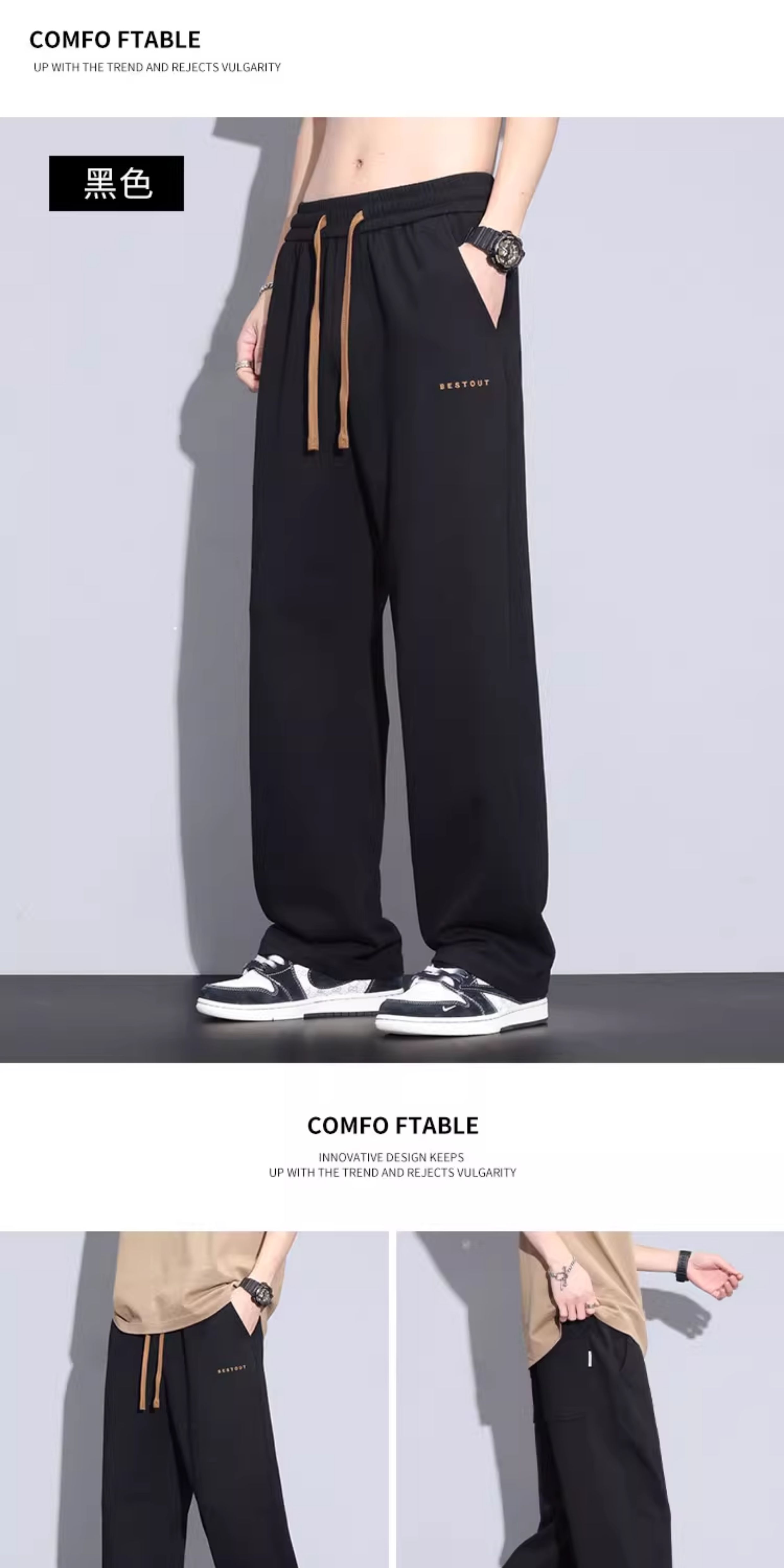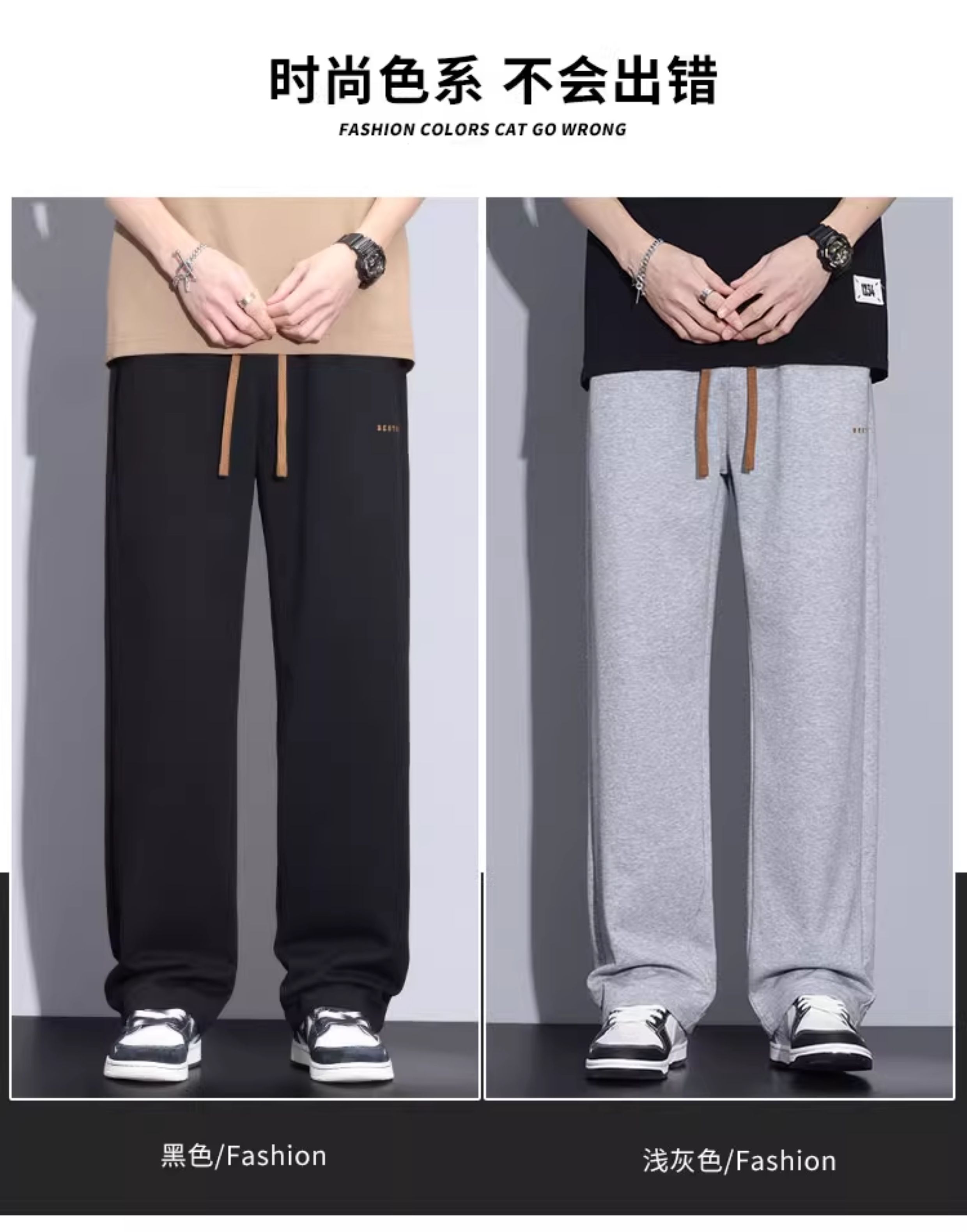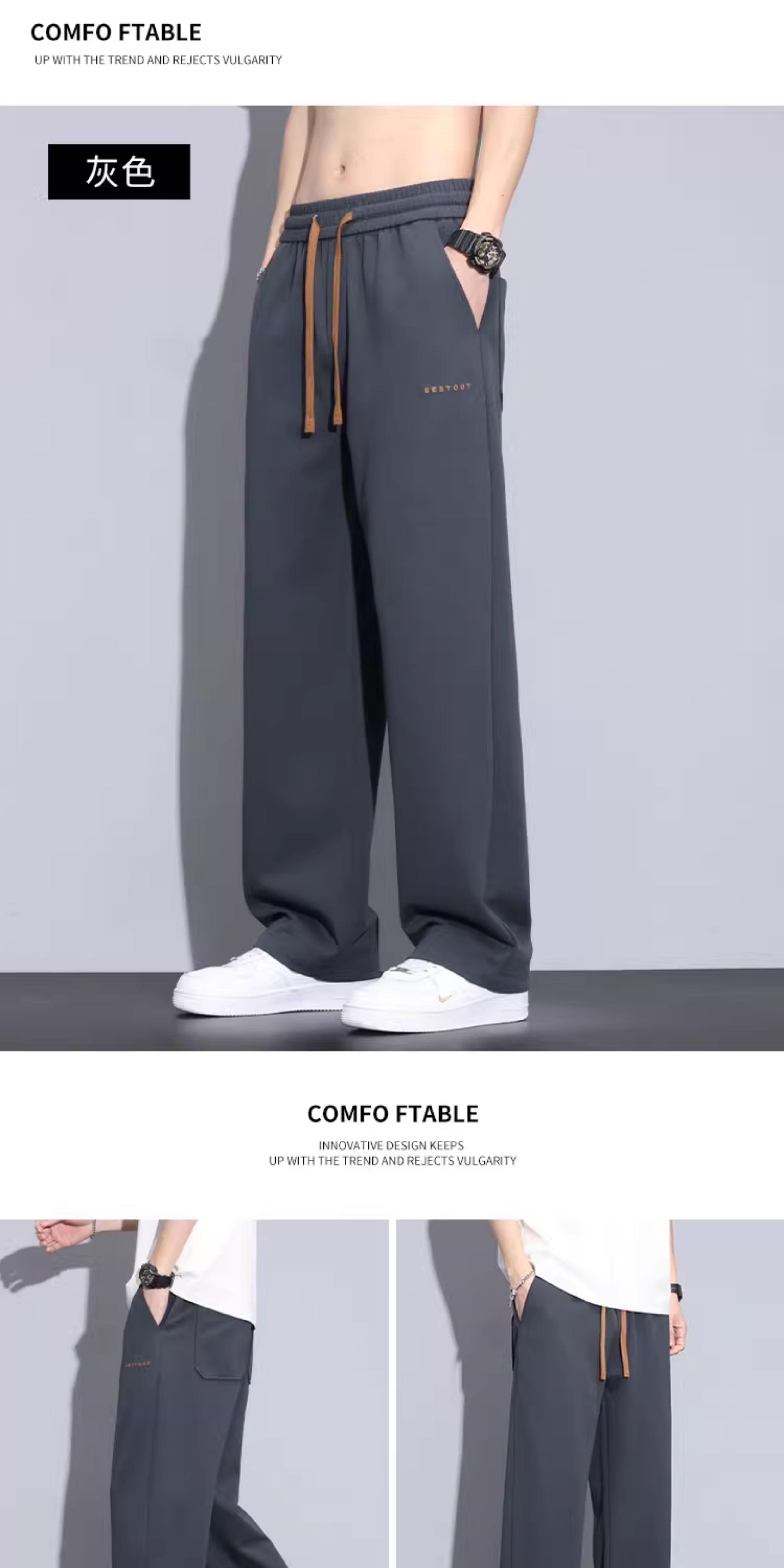貓人休閒褲男士夏季潮牌高級垂感濶腿褲寬松美式直筒運動褲子男款