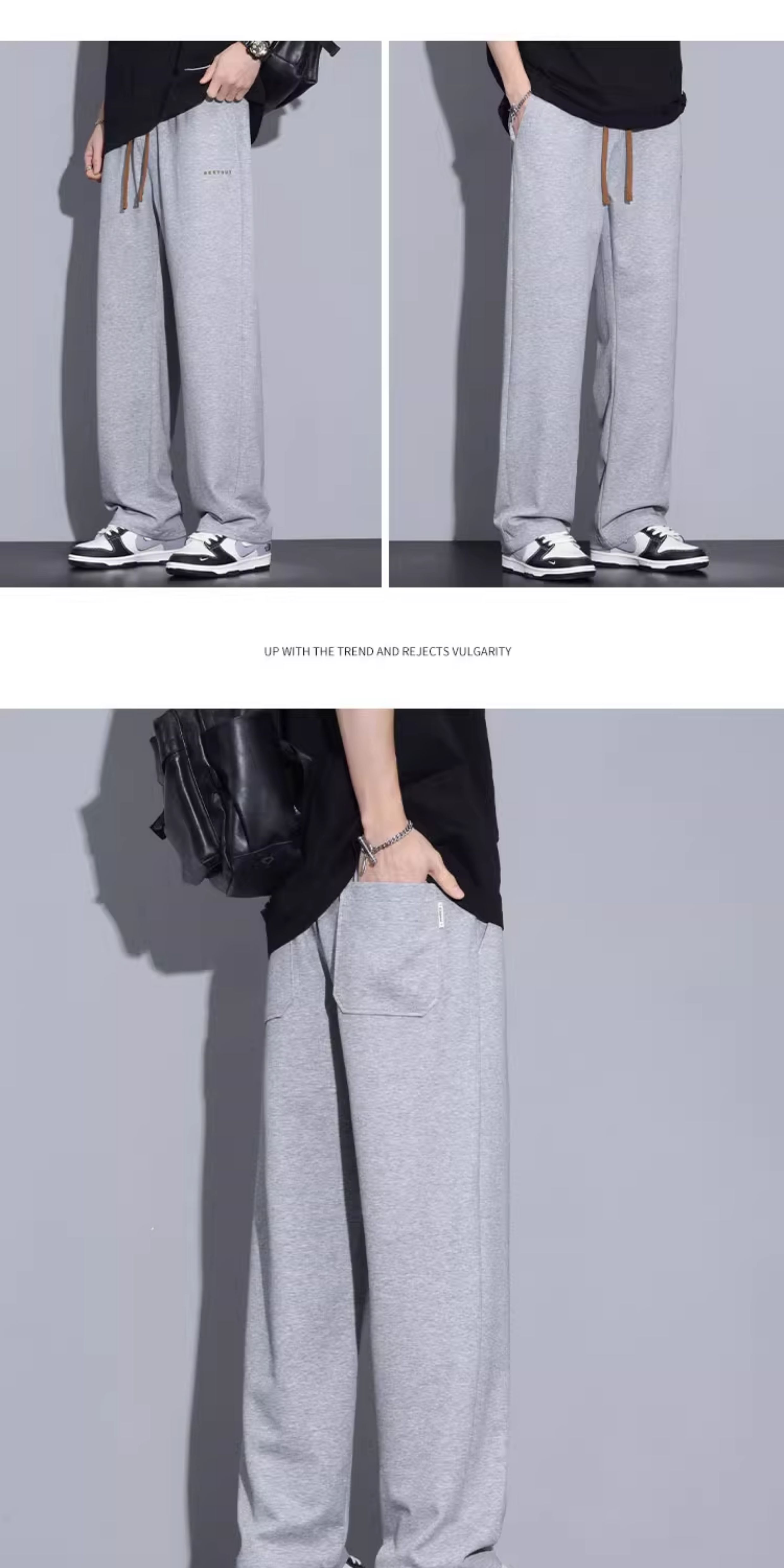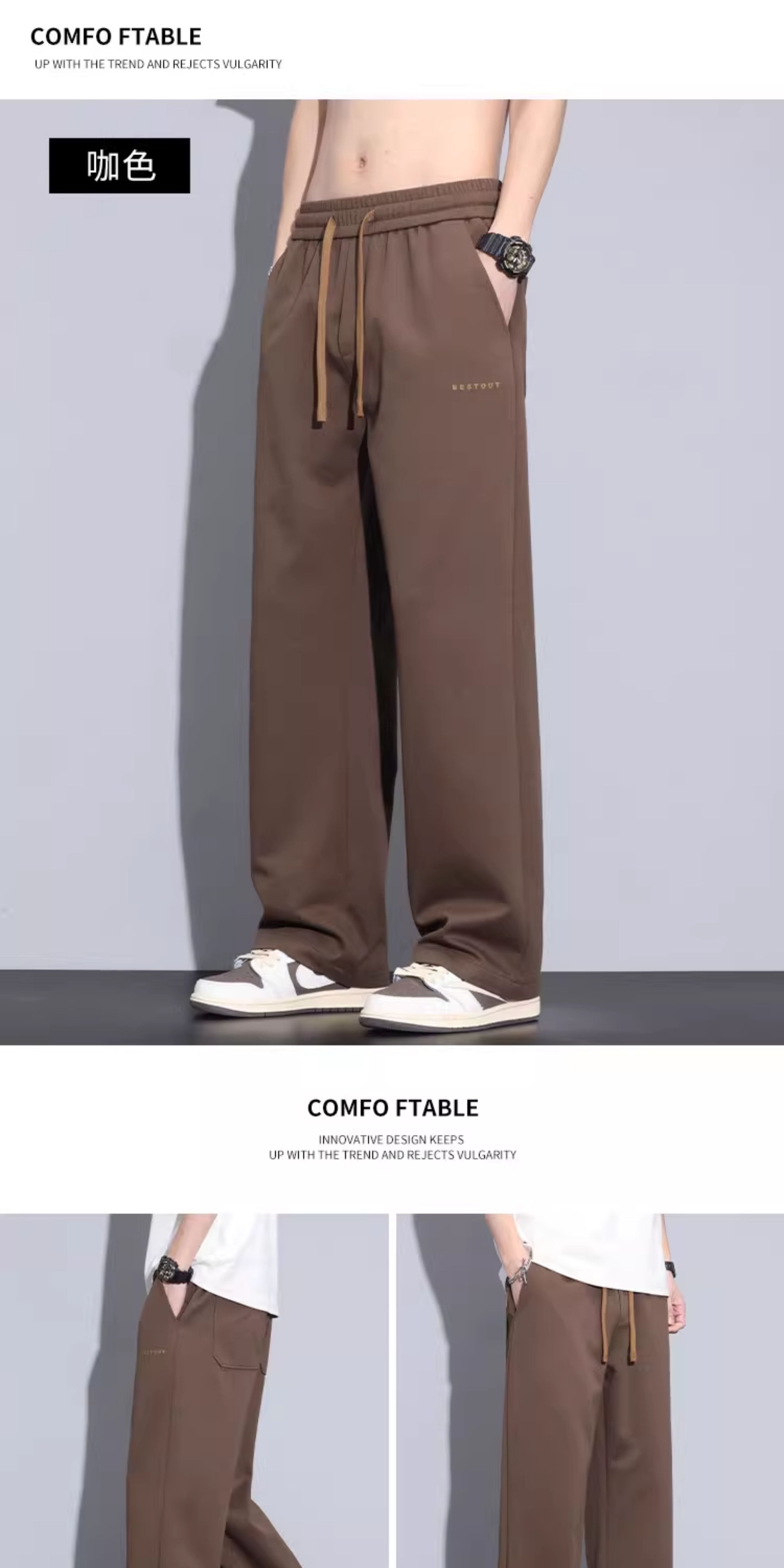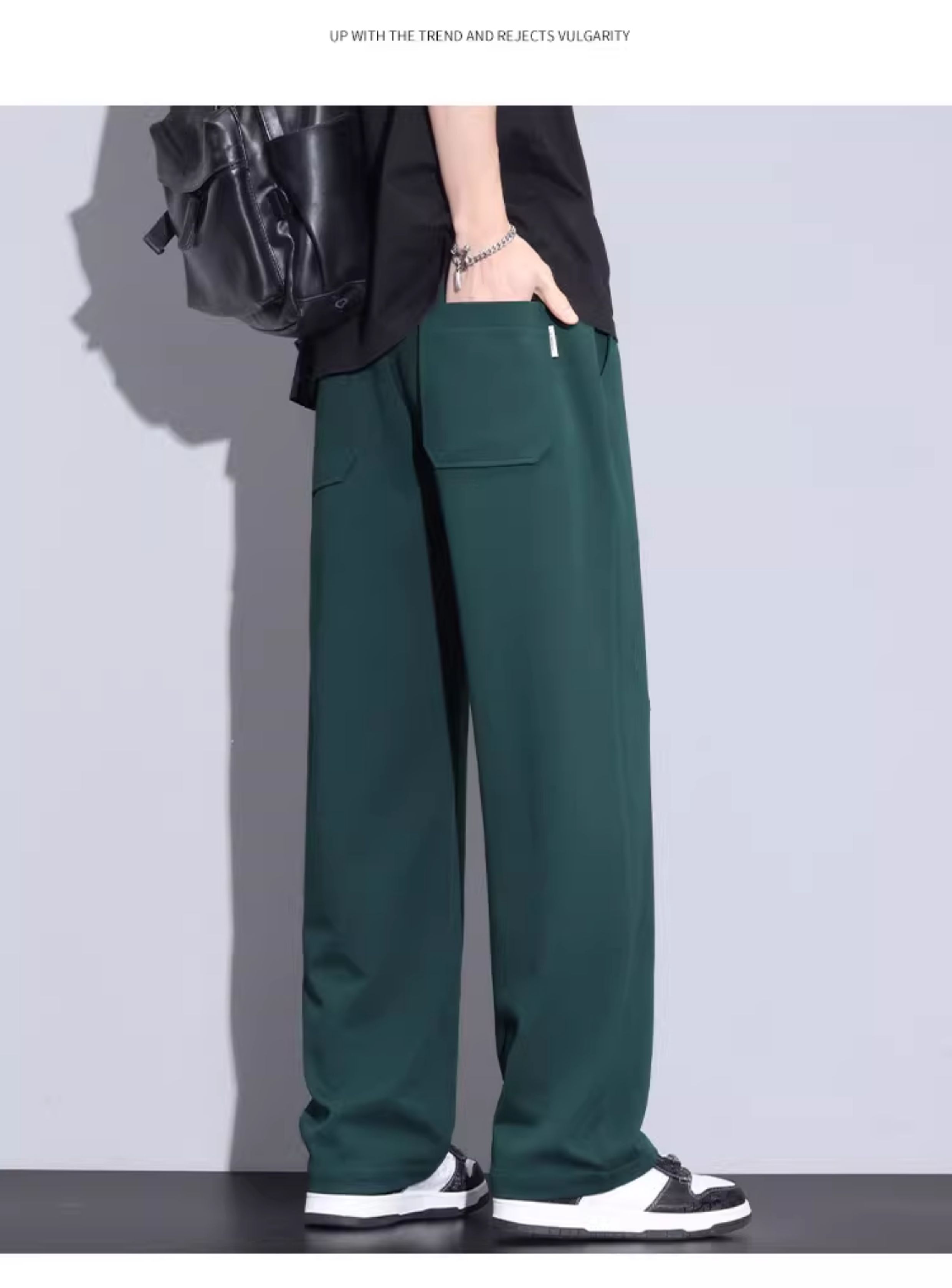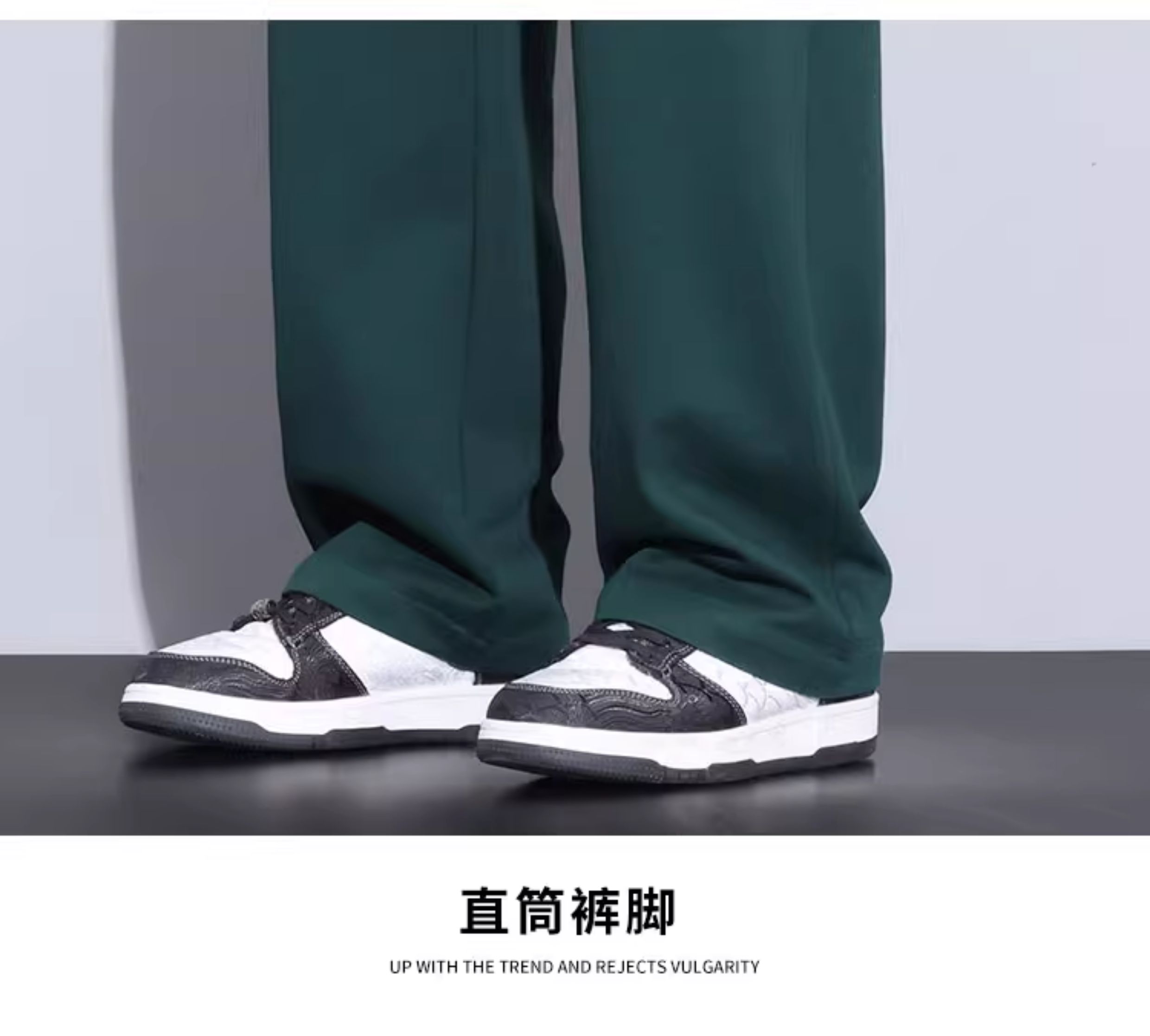 貓人休閒褲男士夏季潮牌高級垂感濶腿褲寬松美式直筒運動褲子男款