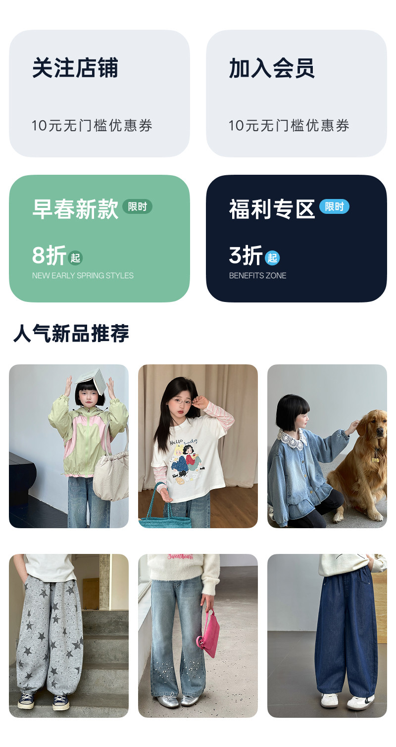 【牛牛】藍小爸童裝女童直筒牛仔褲春季新款百搭寬鬆休閒濶腿長褲