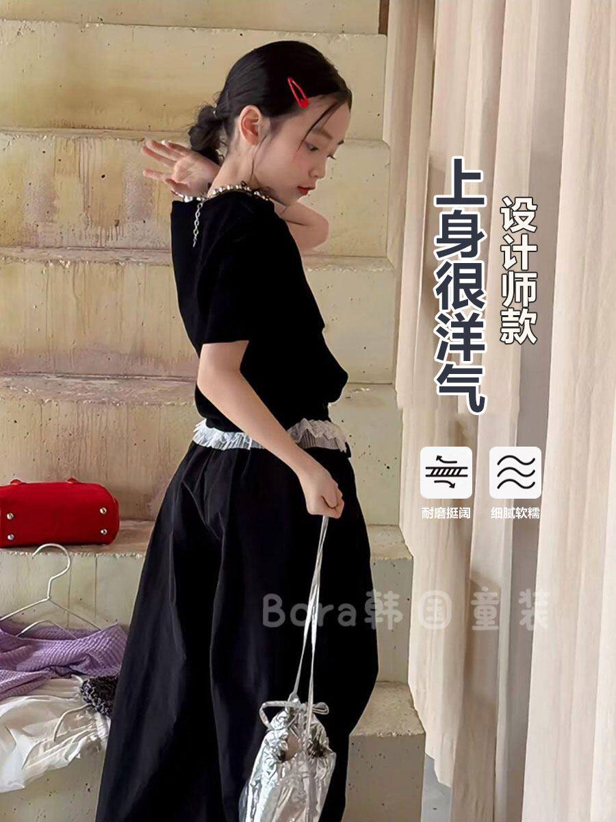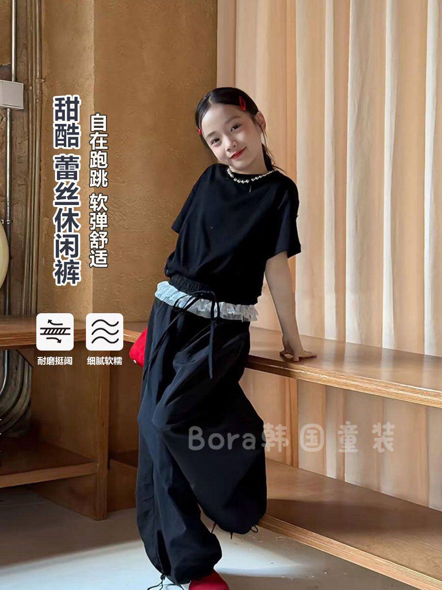 女童褲子兒童工裝褲黑色好看夏裝2026新款大童女孩超好看洋氣長褲