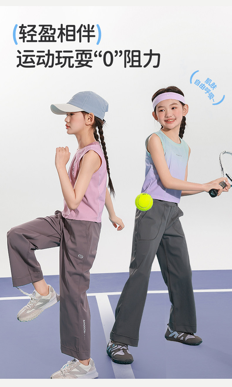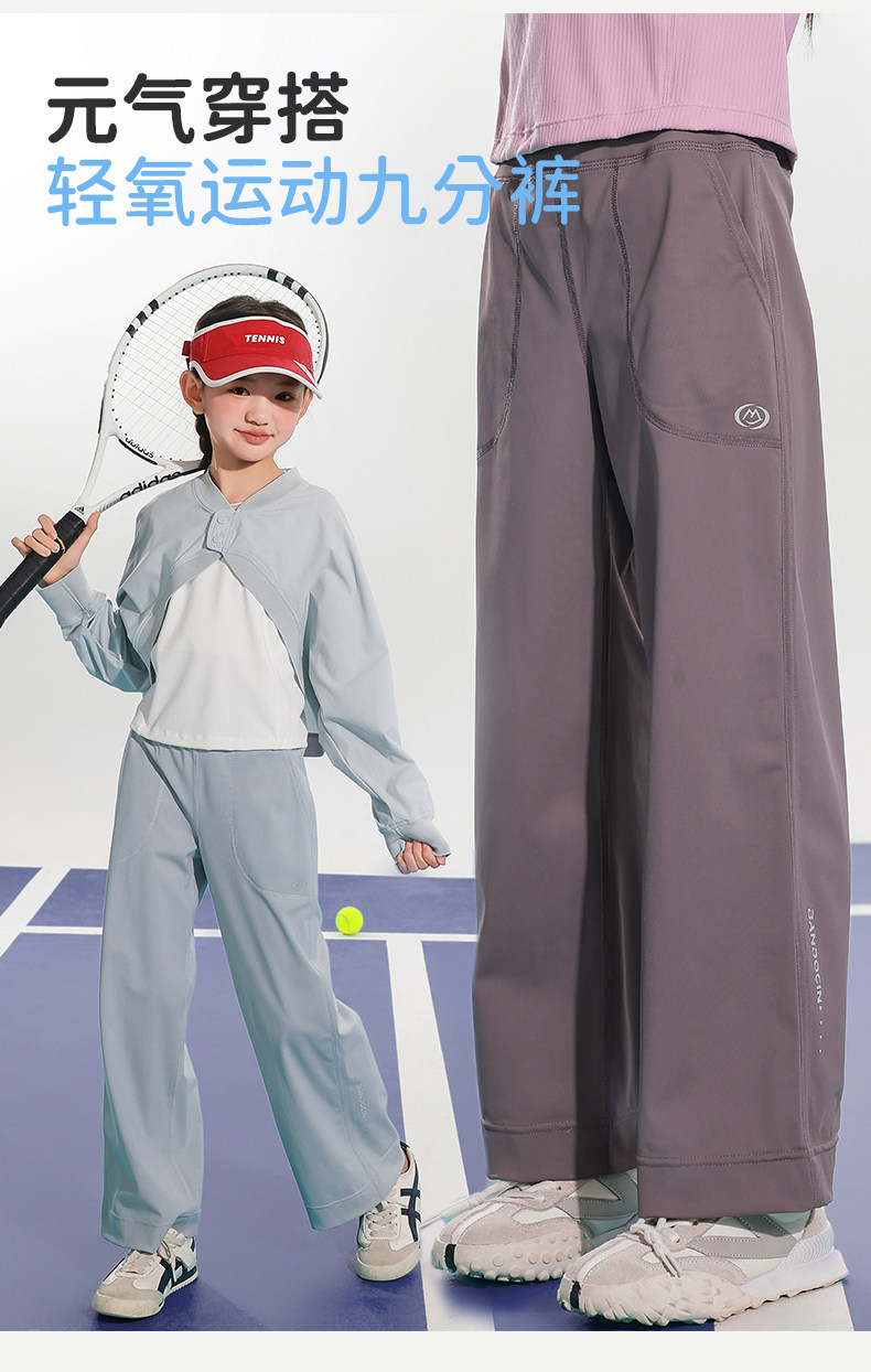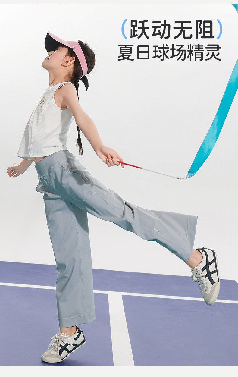 半度閒女童夏裝運動九分褲薄款透氣2025新款女孩夏季透氣休閒長褲