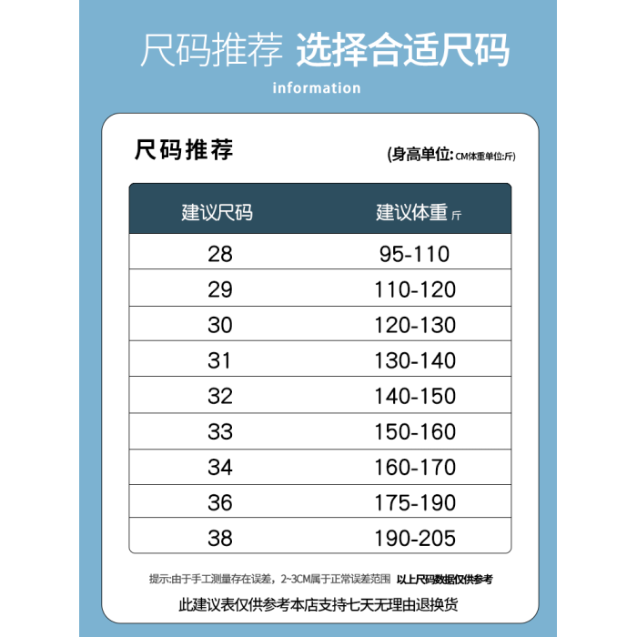 | 褲長 | 長褲 |