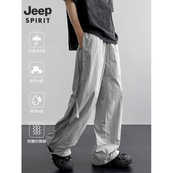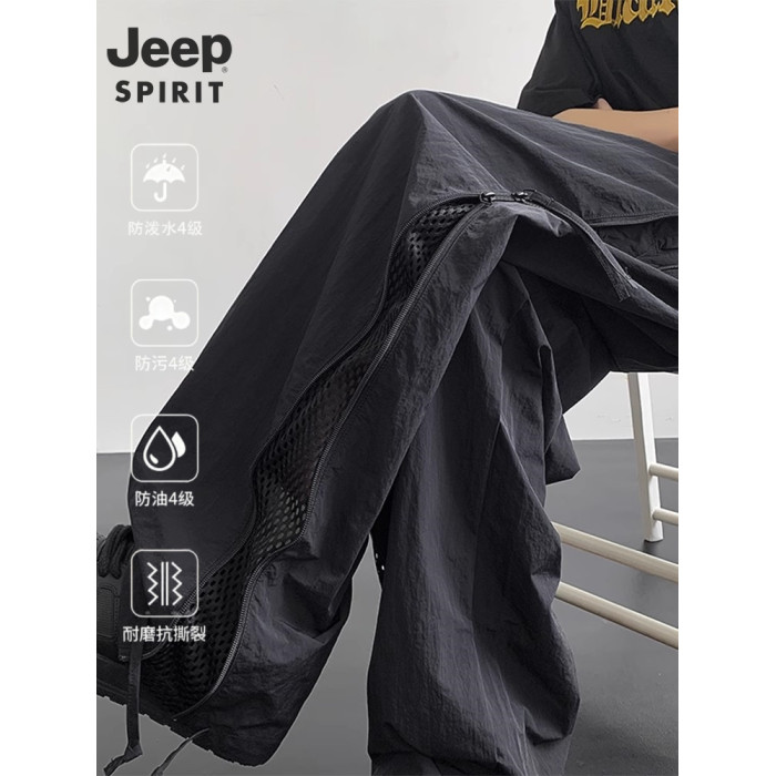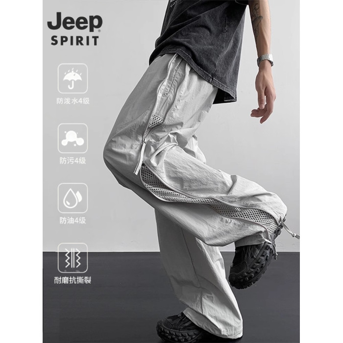 吉普JEEP2026新款工裝褲男夏季薄款運動速乾濶腿褲休閒網洞沖鋒褲