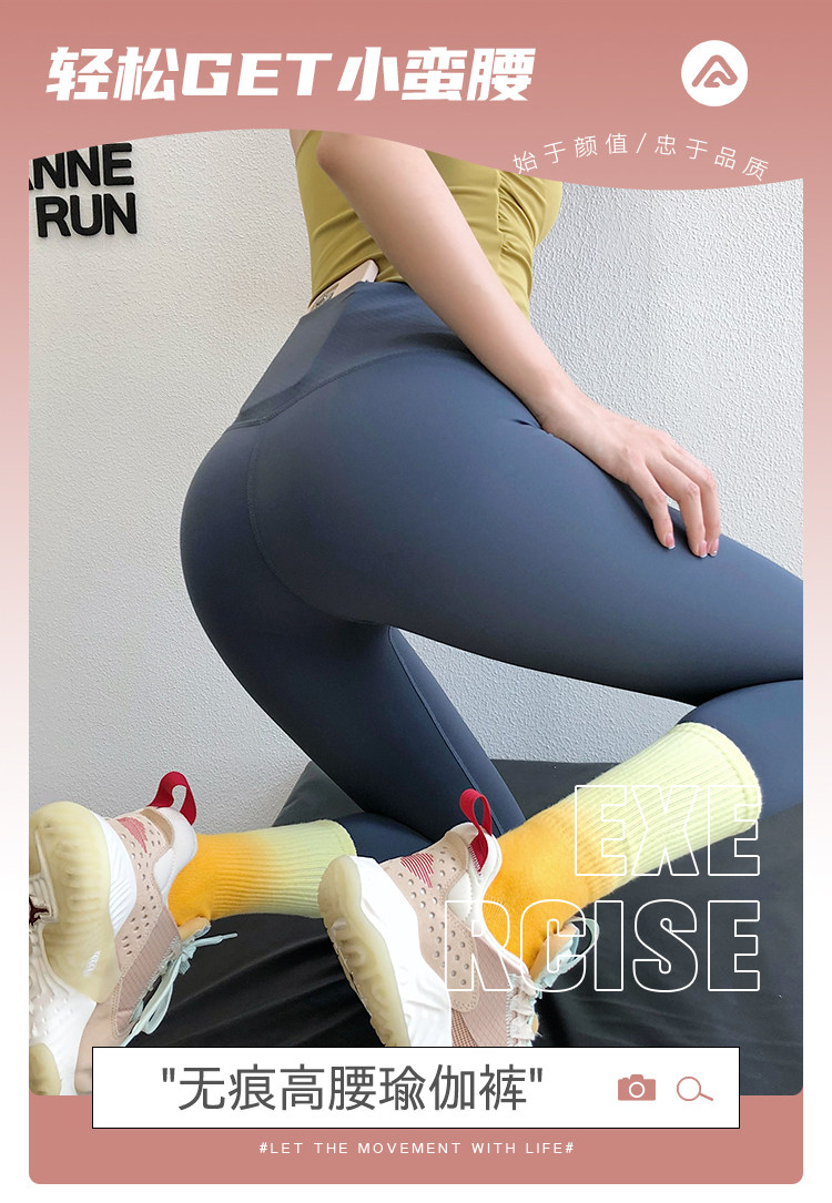 【新色】annerun無痕高腰緊身褲女蜜桃提臀收腹健身褲瑜珈運動褲