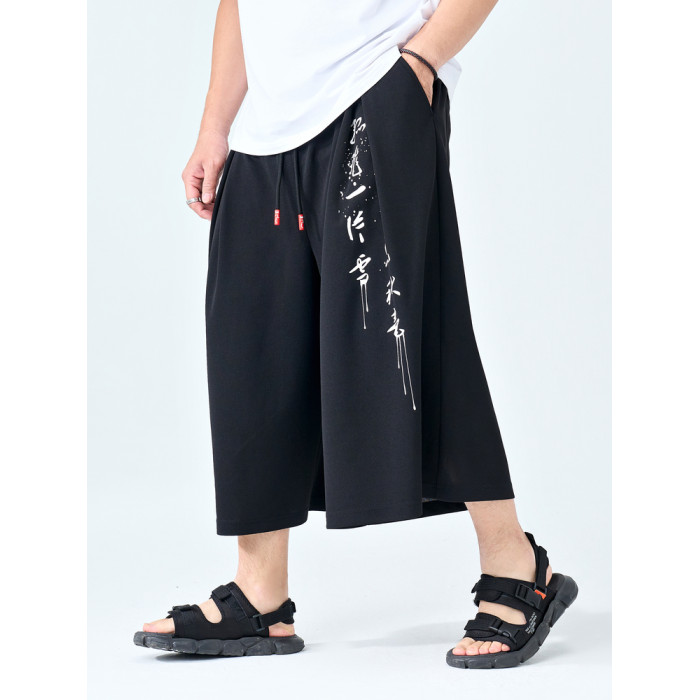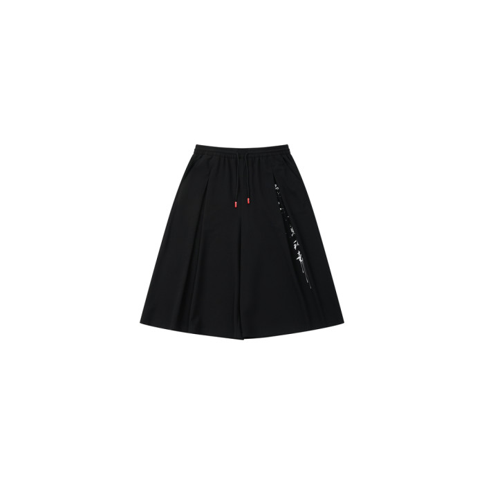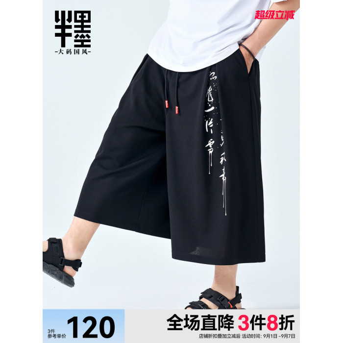 半墨大碼男裝直筒濶腿褲夏季設計感風八分褲加肥加大男士裙褲