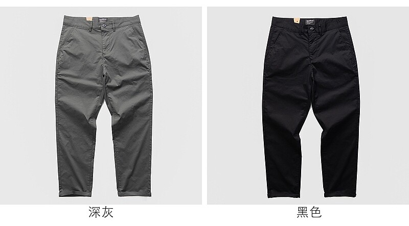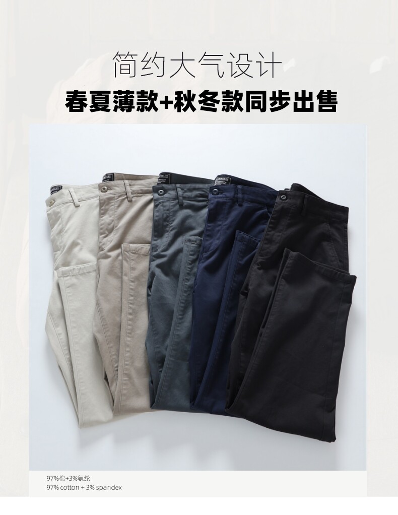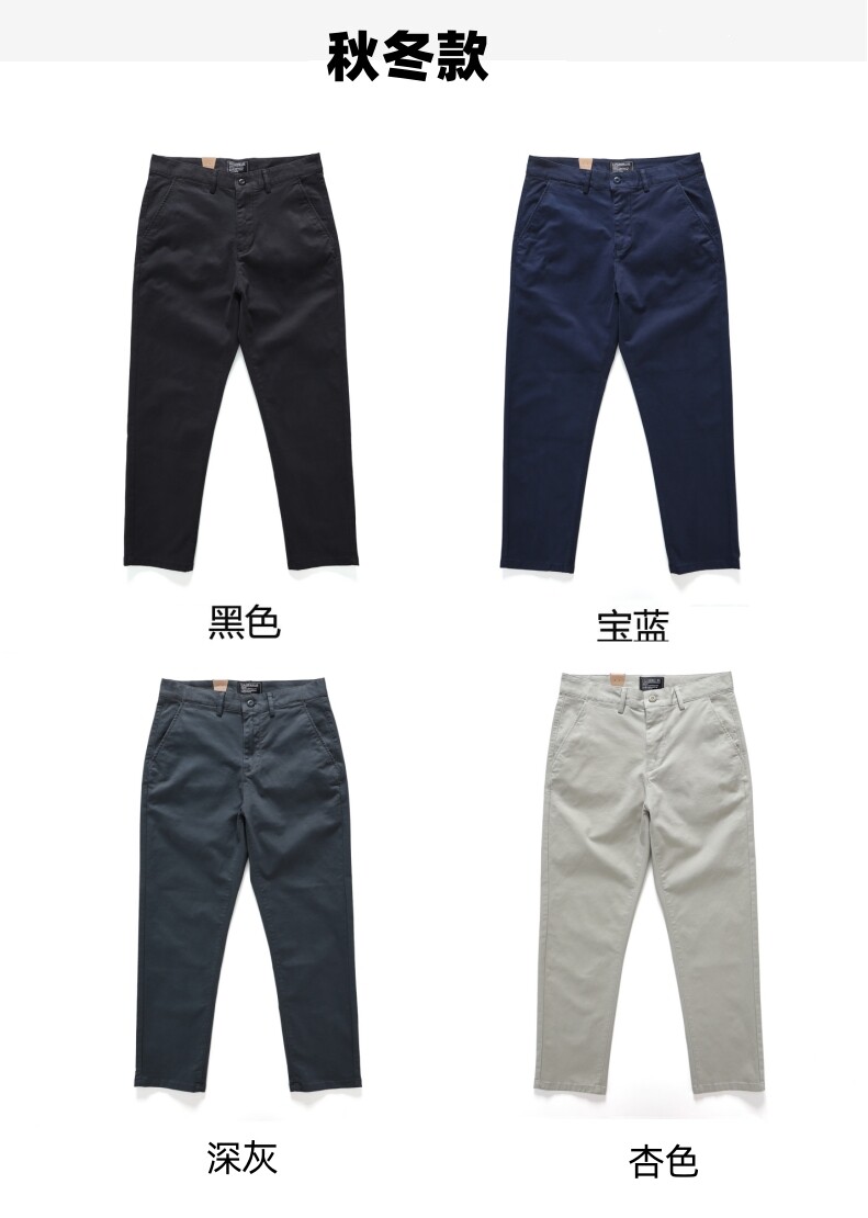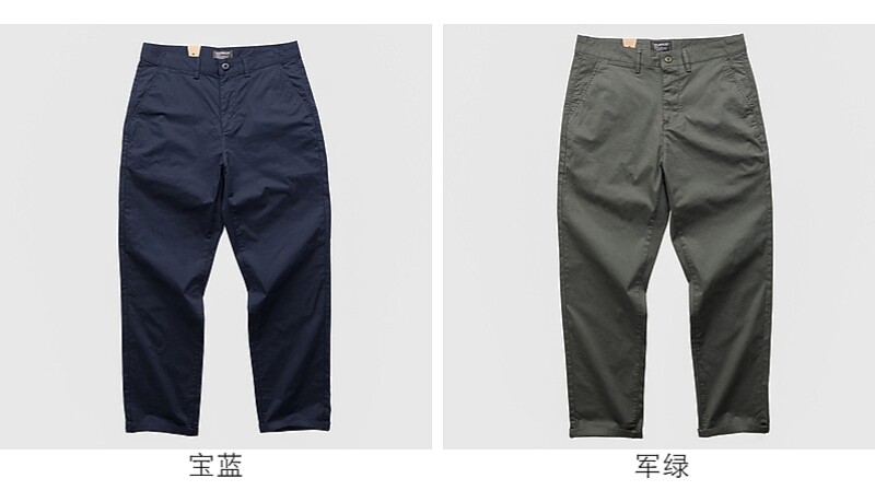 春秋簡約美式復古透氣商務休閒軍綠寶藍寬鬆工裝褲子微彈直角褲