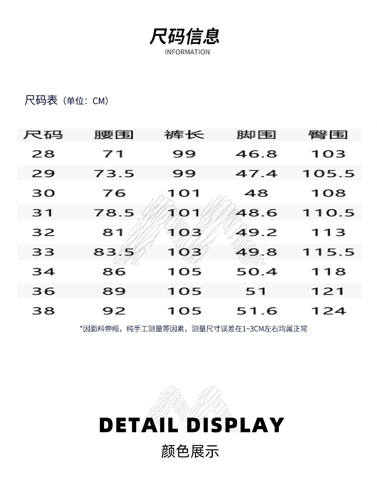 款式及尺寸: