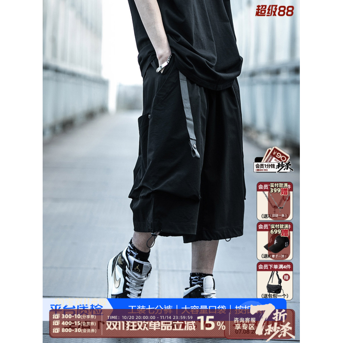 AOGZ夏季七分褲男新款寬松濶腿褲國潮牌薄款運動褲子機能工裝短褲