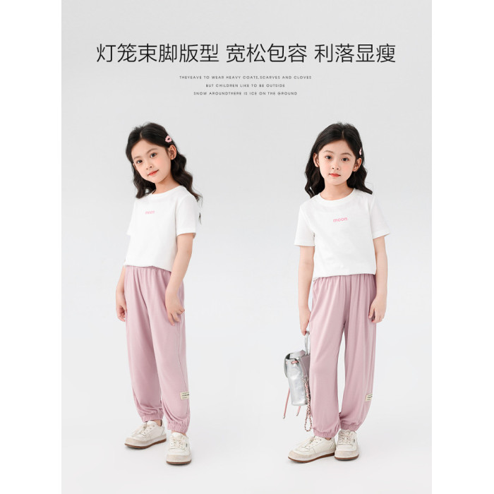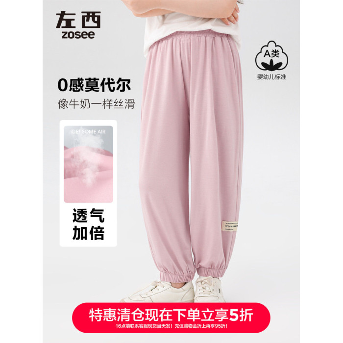 【特惠清倉】左西女童夏季褲子防蚊褲薄款夏裝兒童中大童透氣長褲
