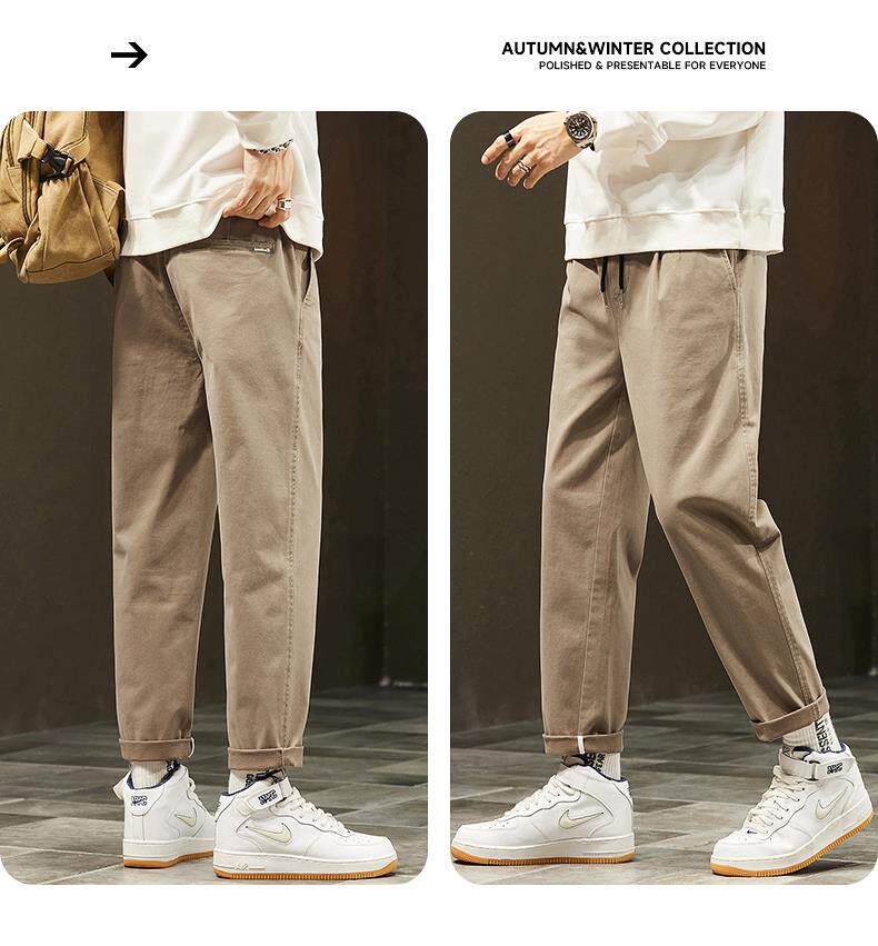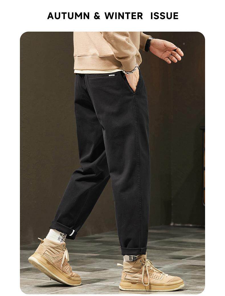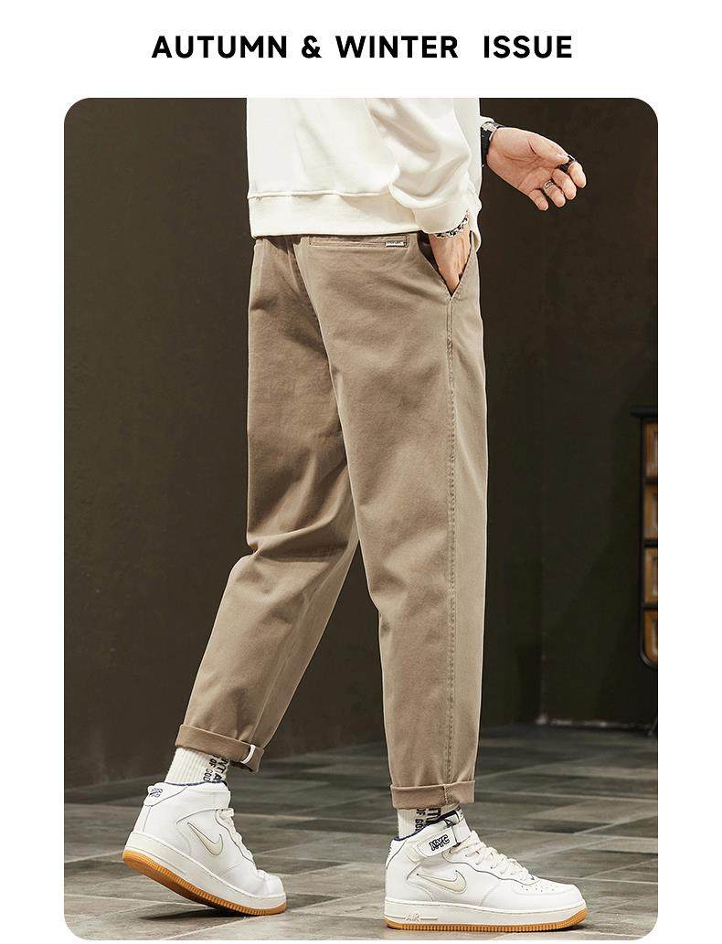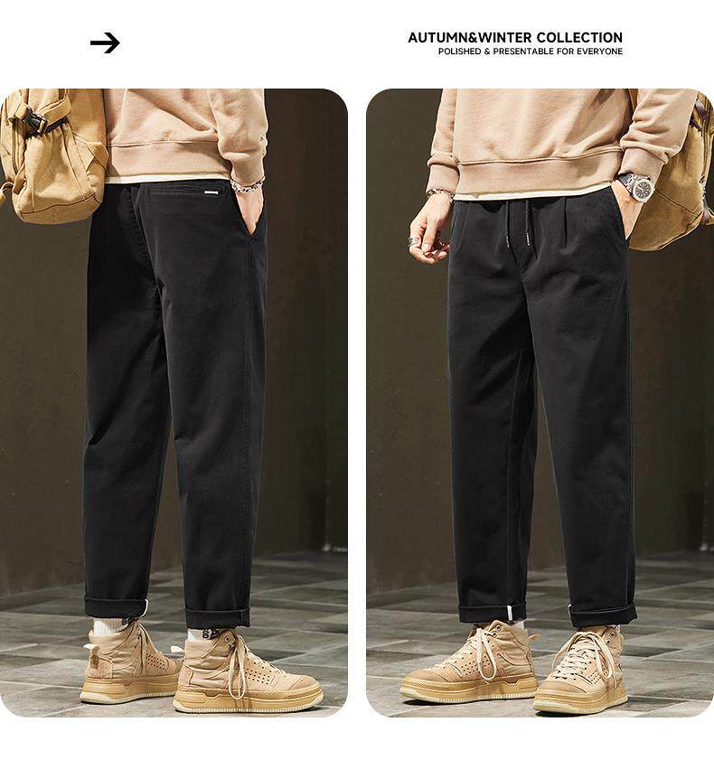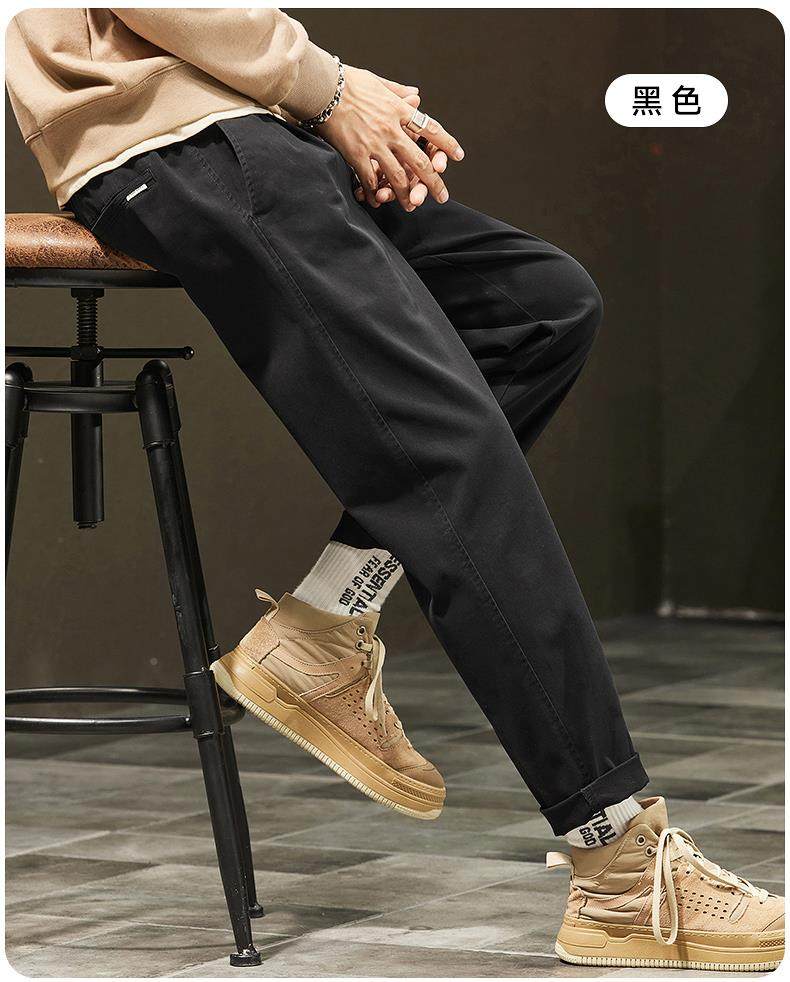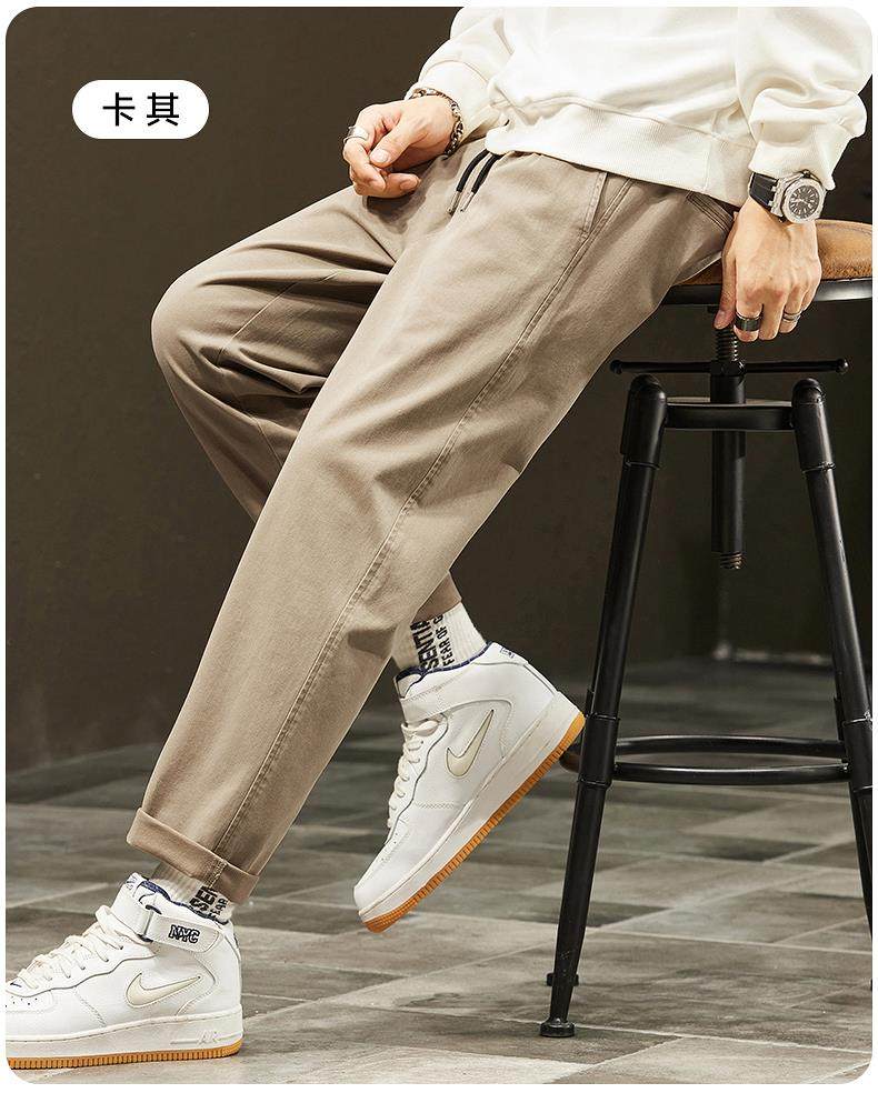 休閒褲男士秋冬季新款直筒寬鬆錐形九分男生彈力運動長褲