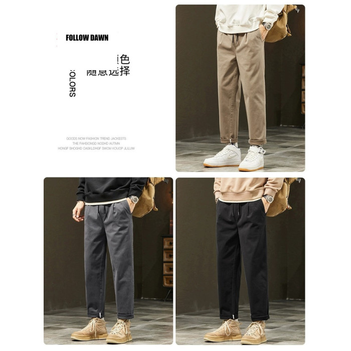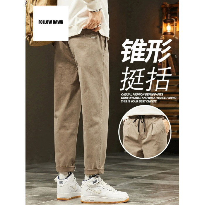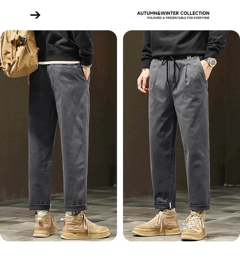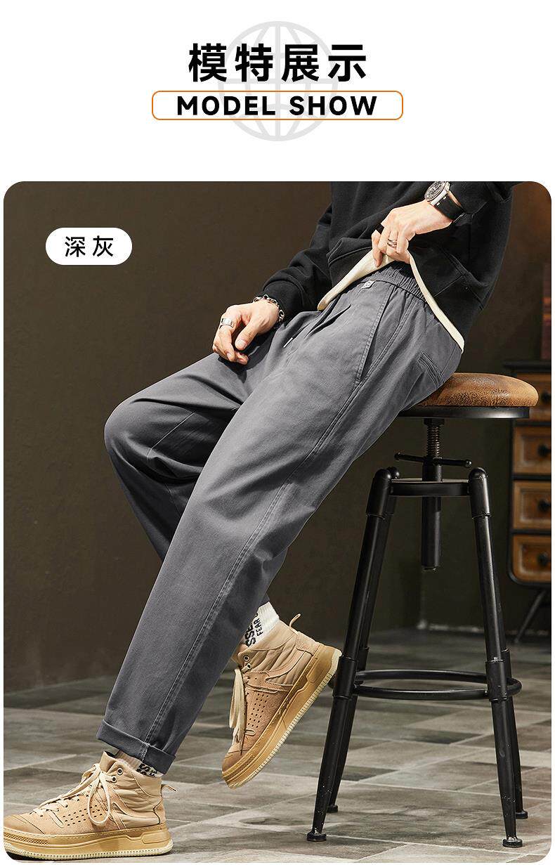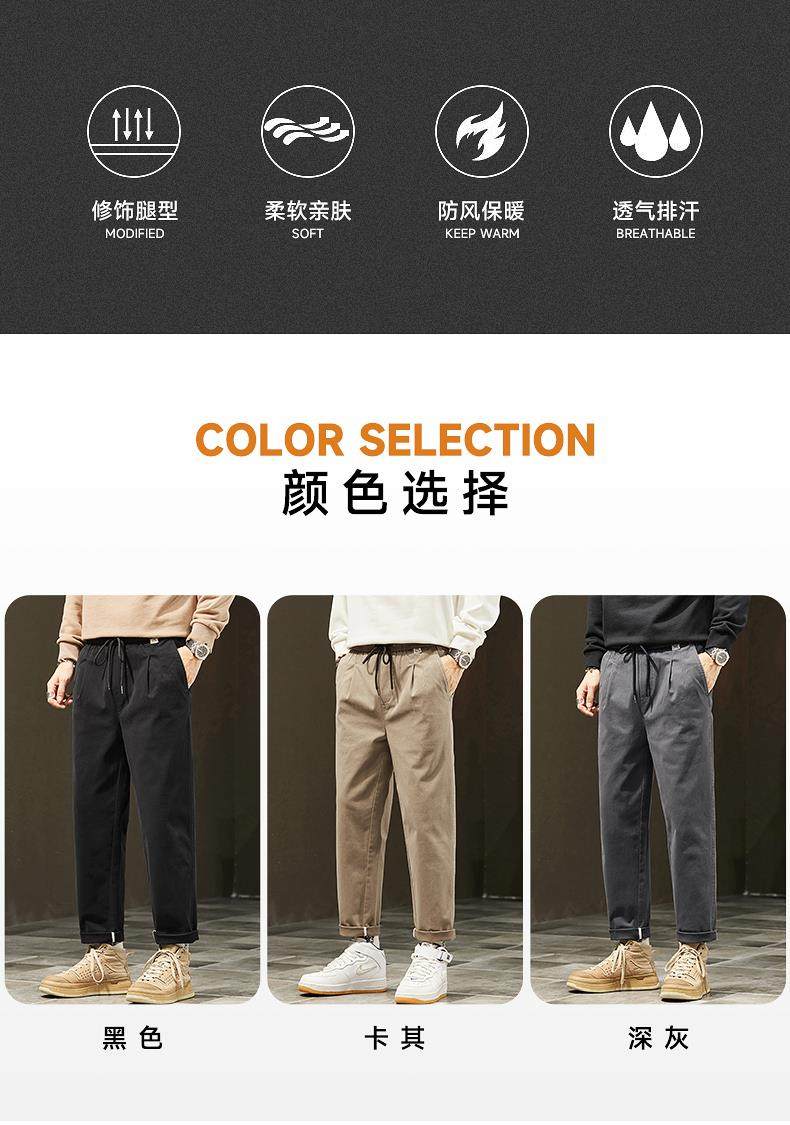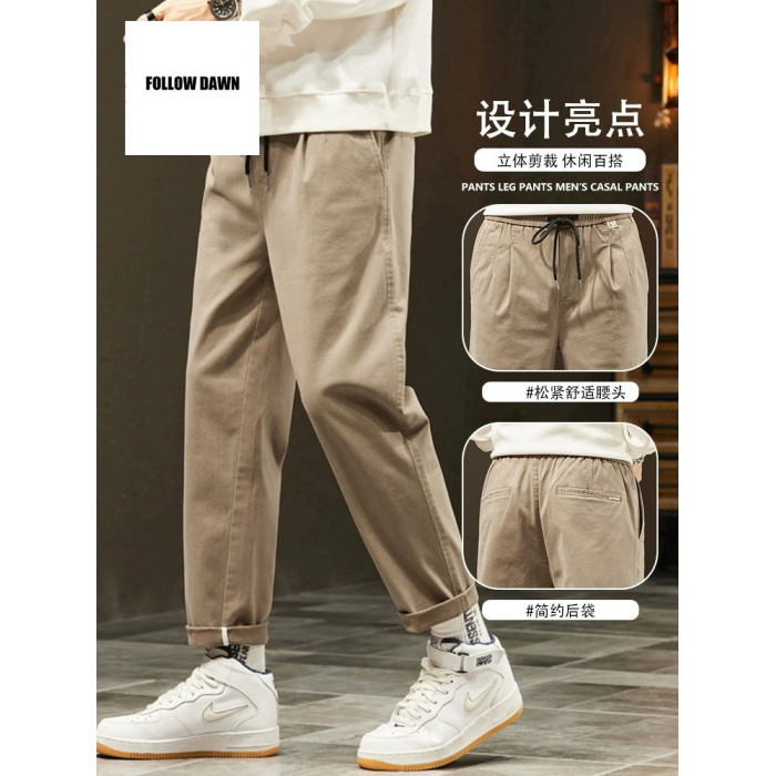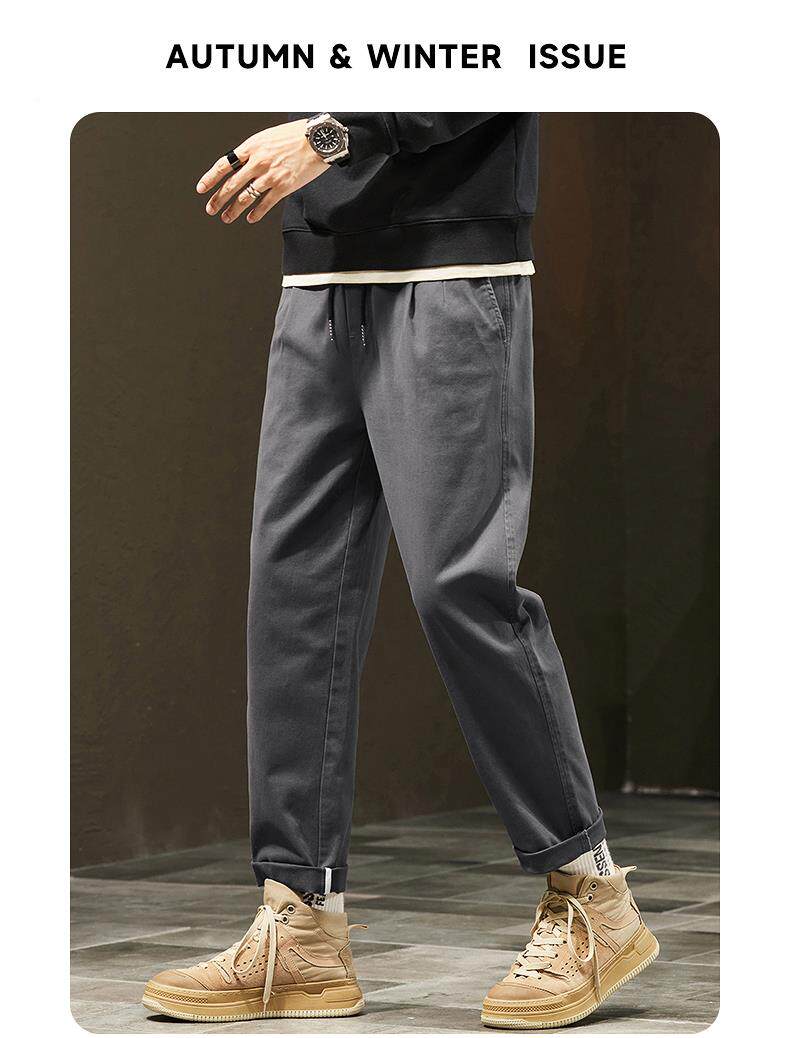 休閒褲男士秋冬季新款直筒寬鬆錐形九分男生彈力運動長褲