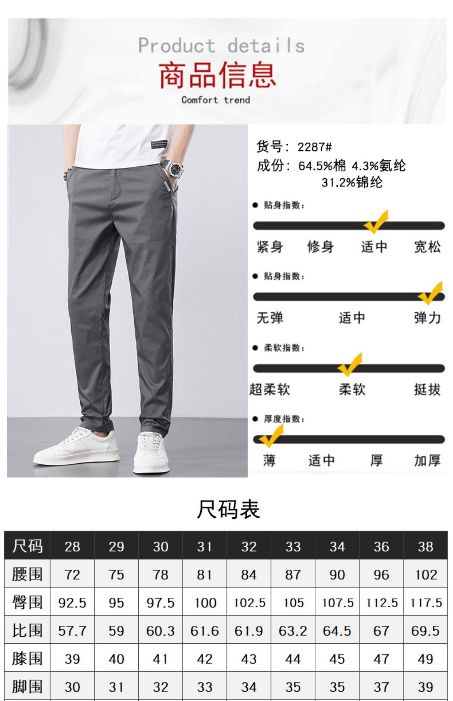 夏季休閒褲男士彈力直筒男裝新款長褲子春夏潮流超薄款透