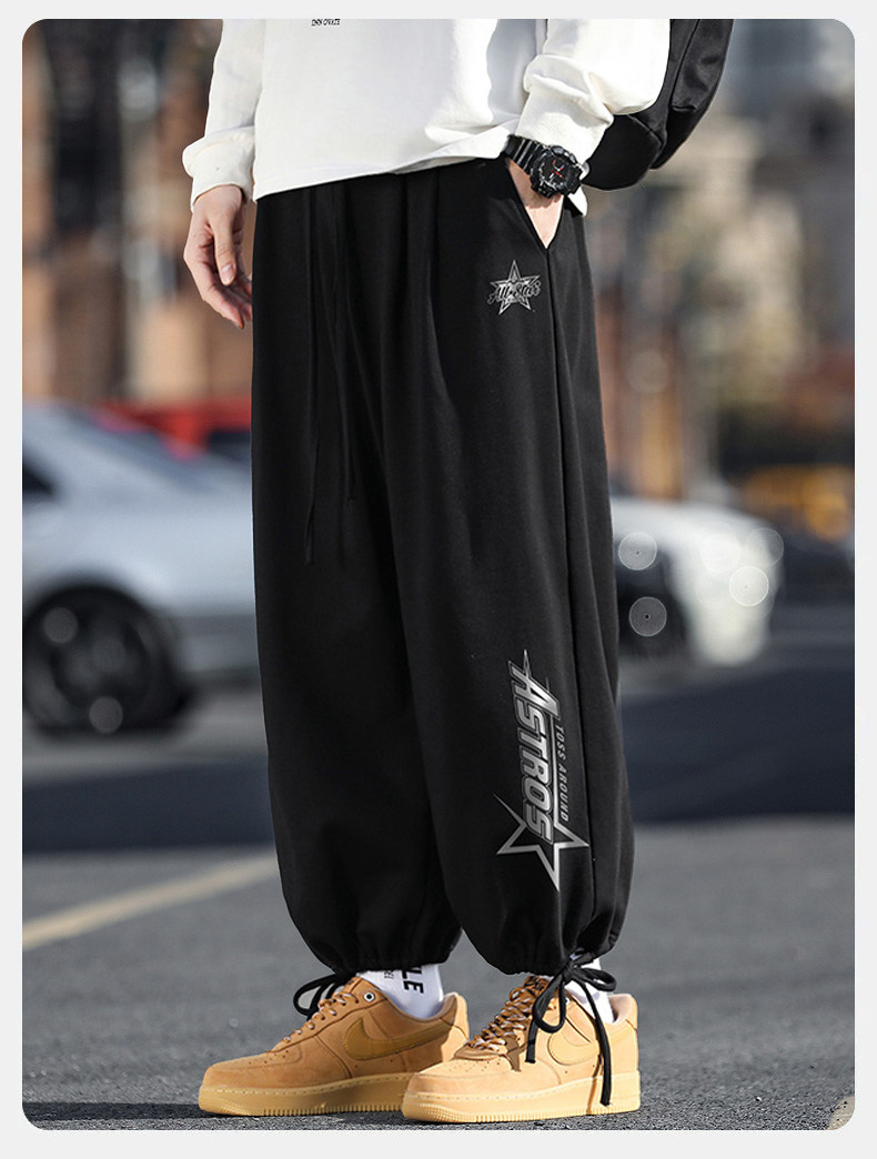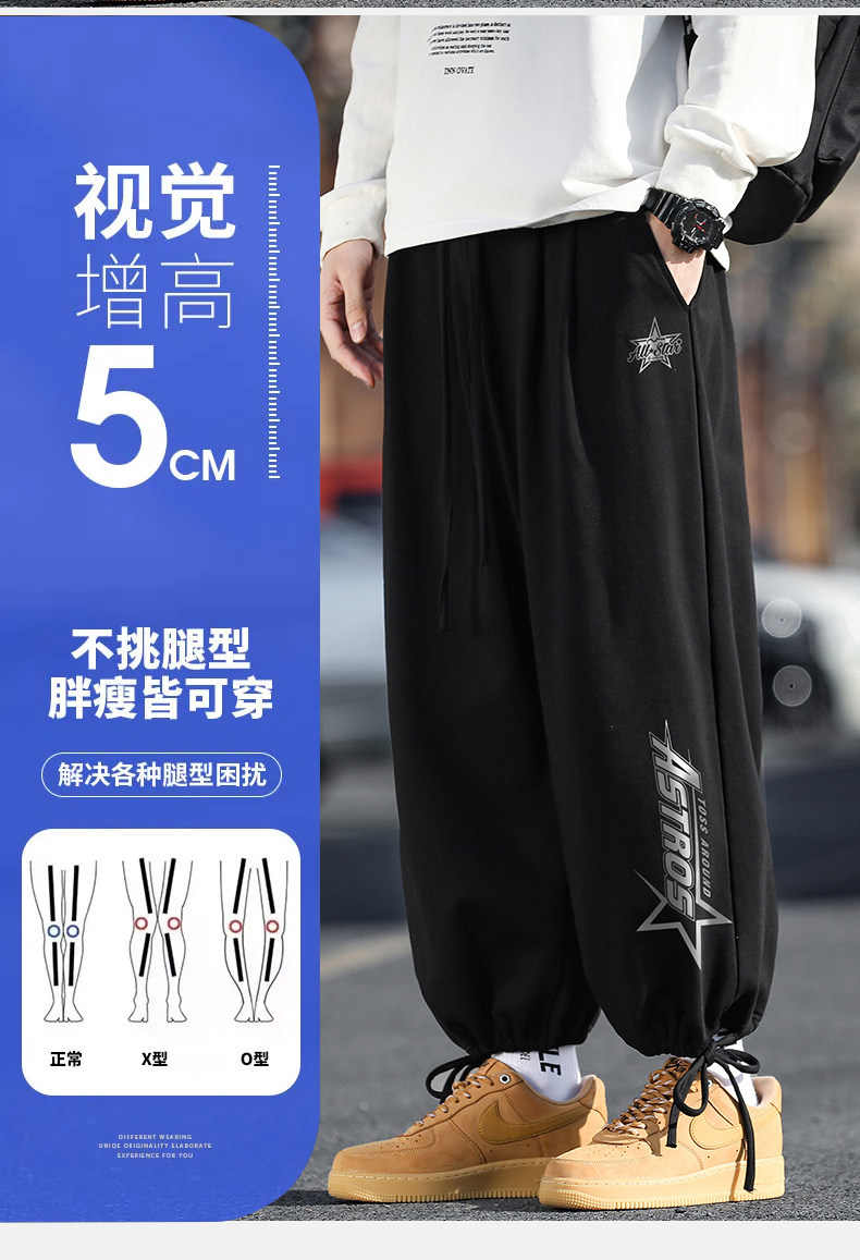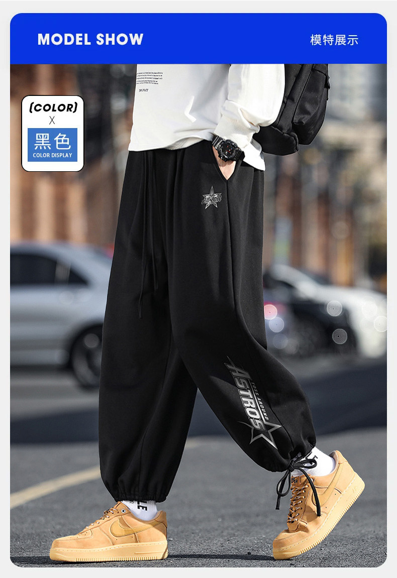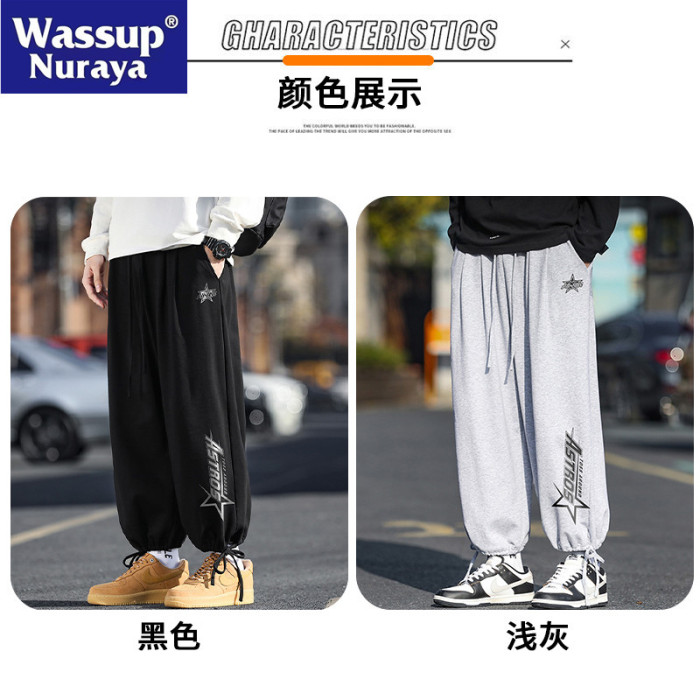 WASSUP NURAYA休閒褲男加絨加厚長褲潮牌束腳褲子青年百搭運動褲
