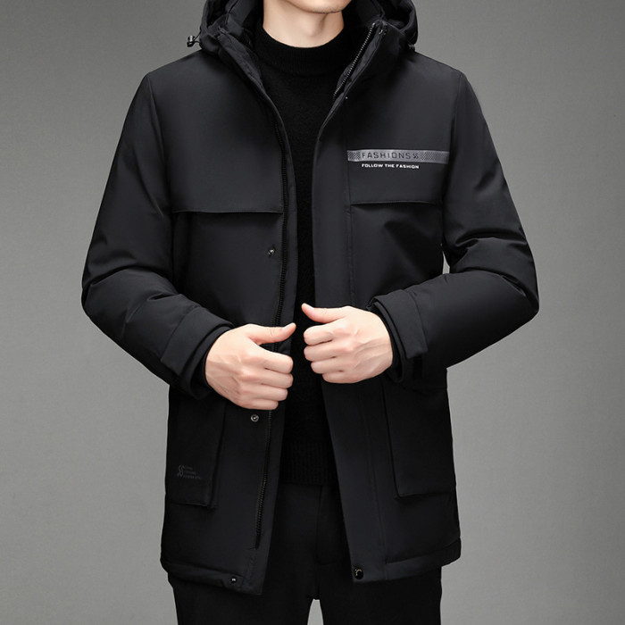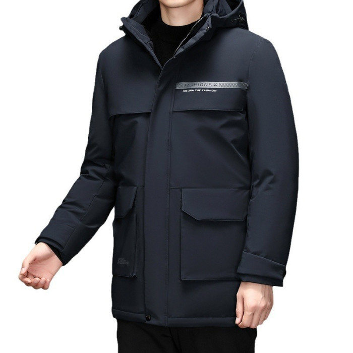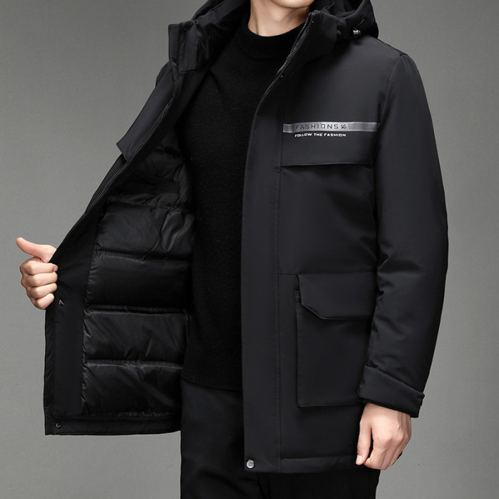 中長款新款羽絨服男爸爸工作服裝老年鵞絨服男加厚爺爺裝老人外套