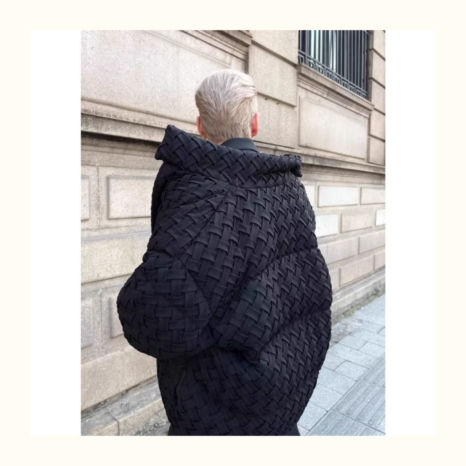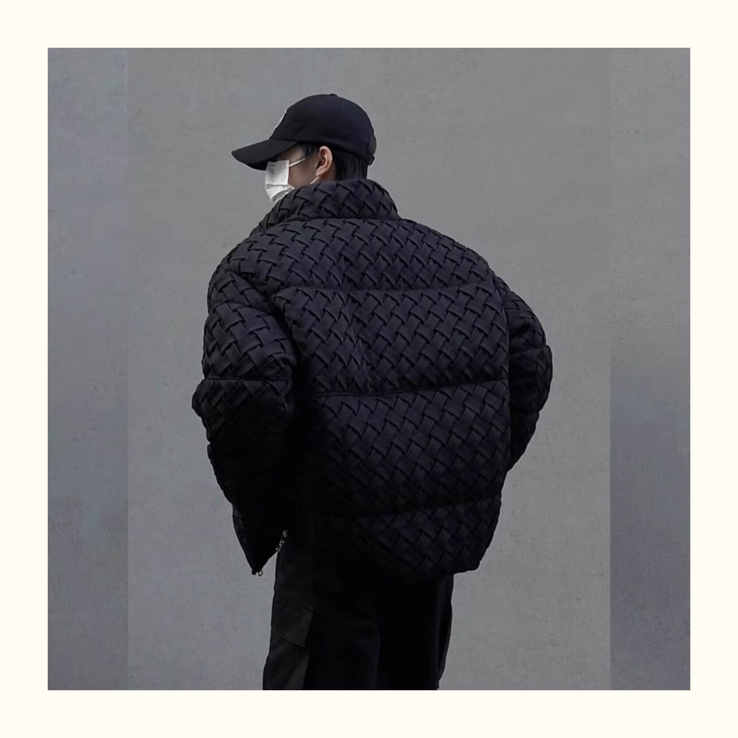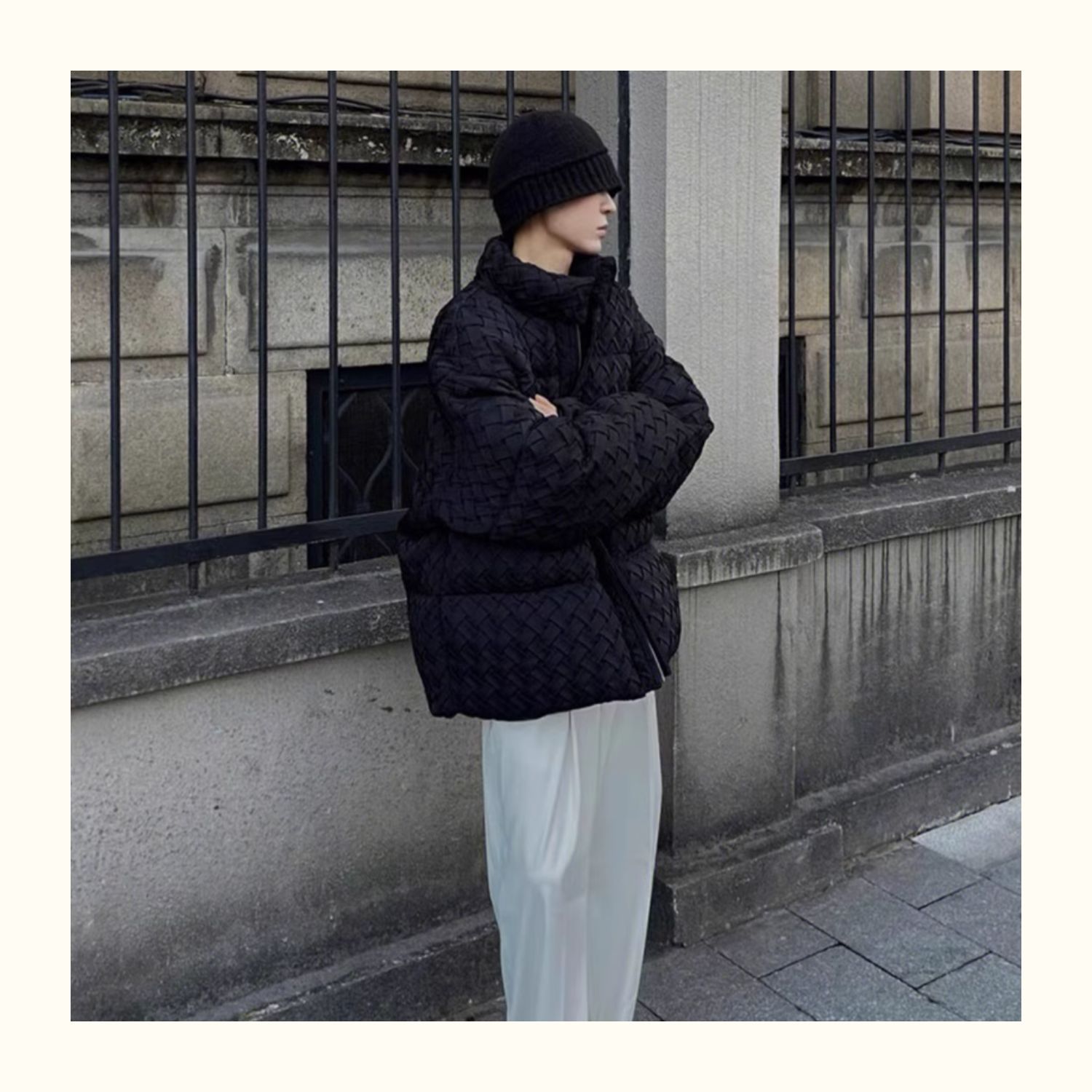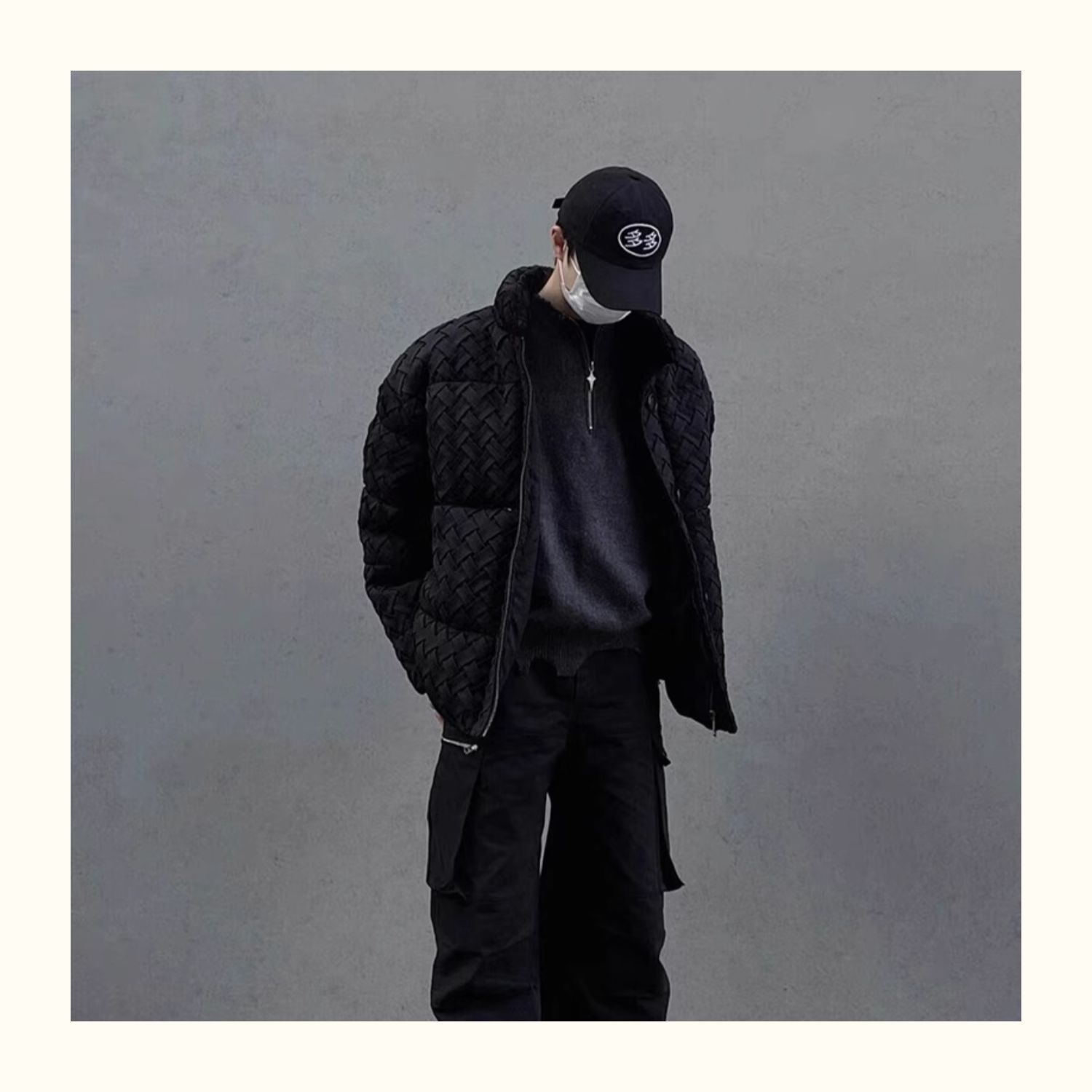 美式小香風編織羽絨服棉服男款冬季小衆設計師高級感男裝棉衣外套