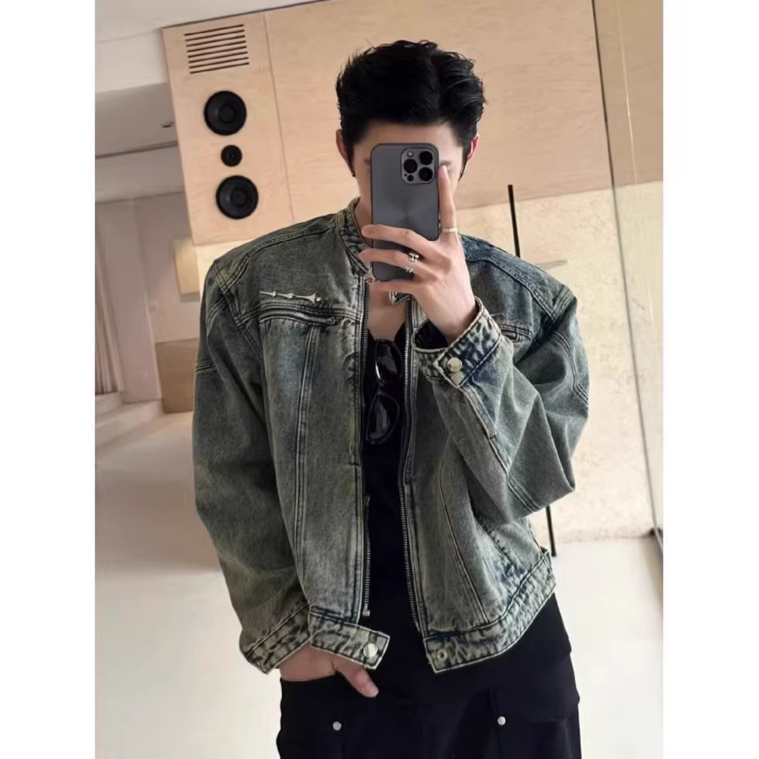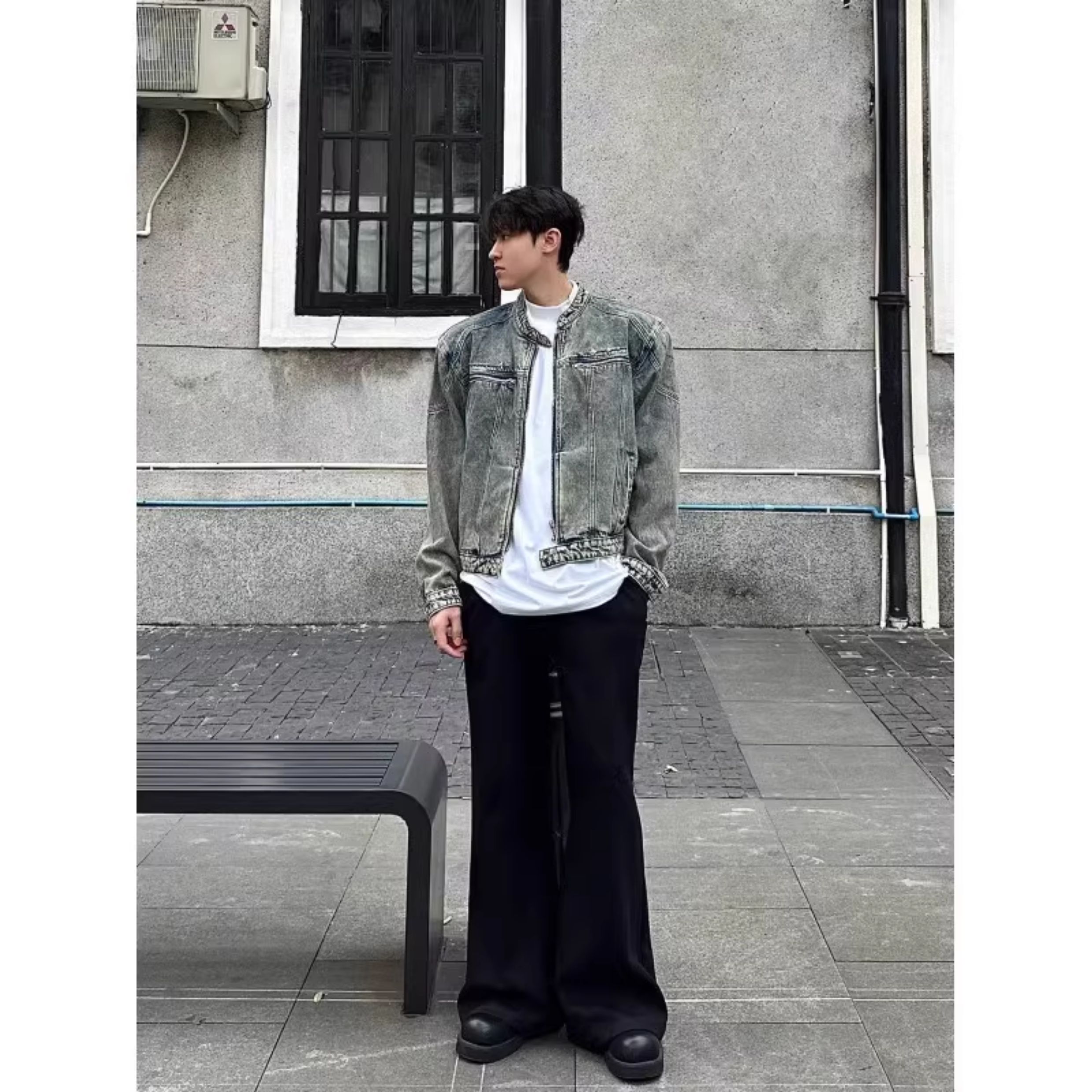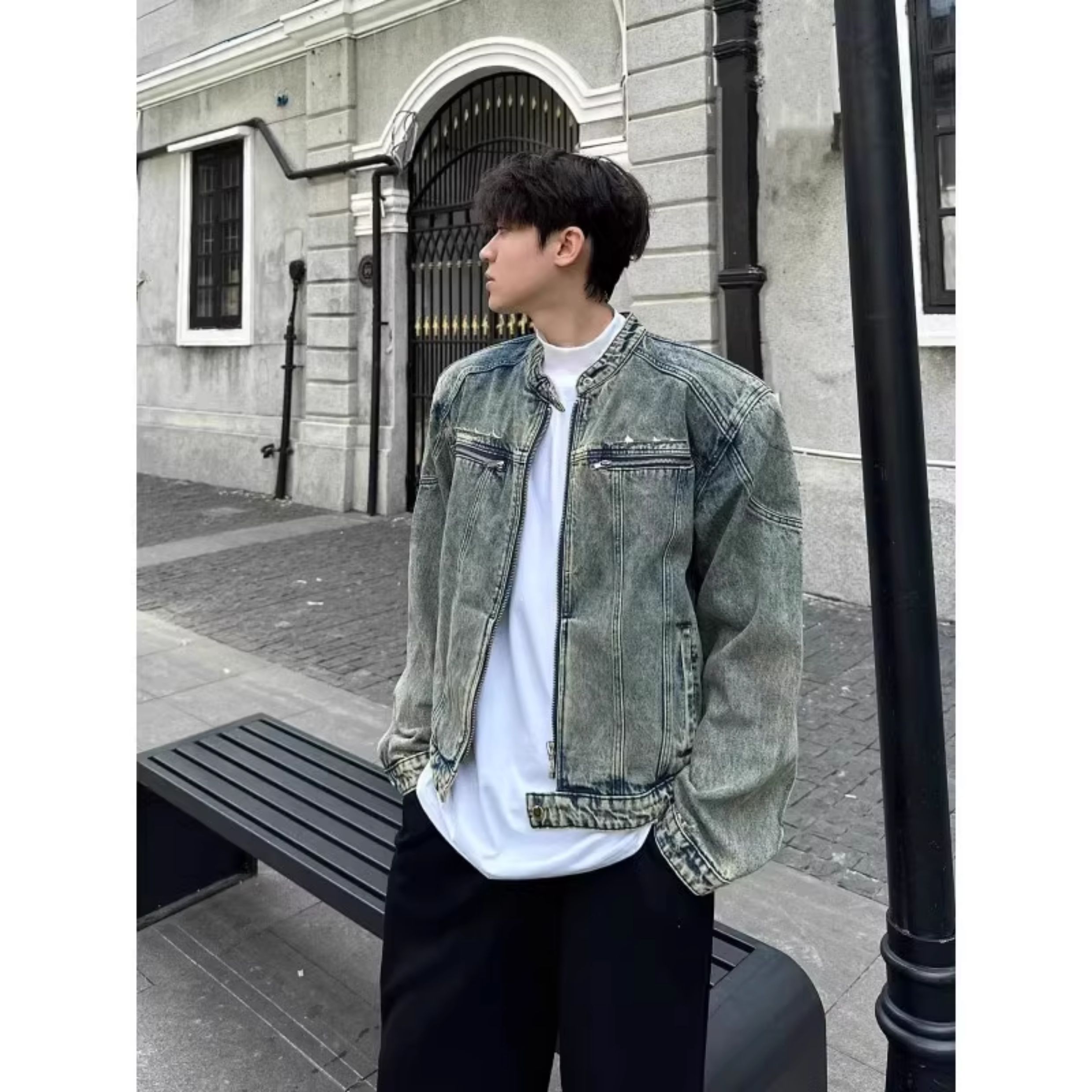 龐博文同款墊肩牛仔外套男美式春秋季cleanfit短款男生穿搭夾克潮