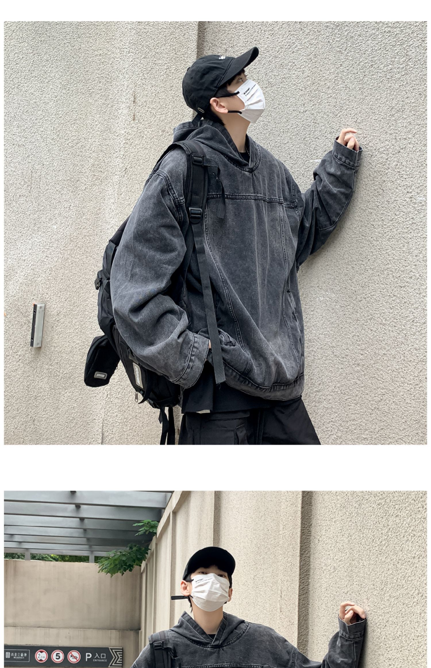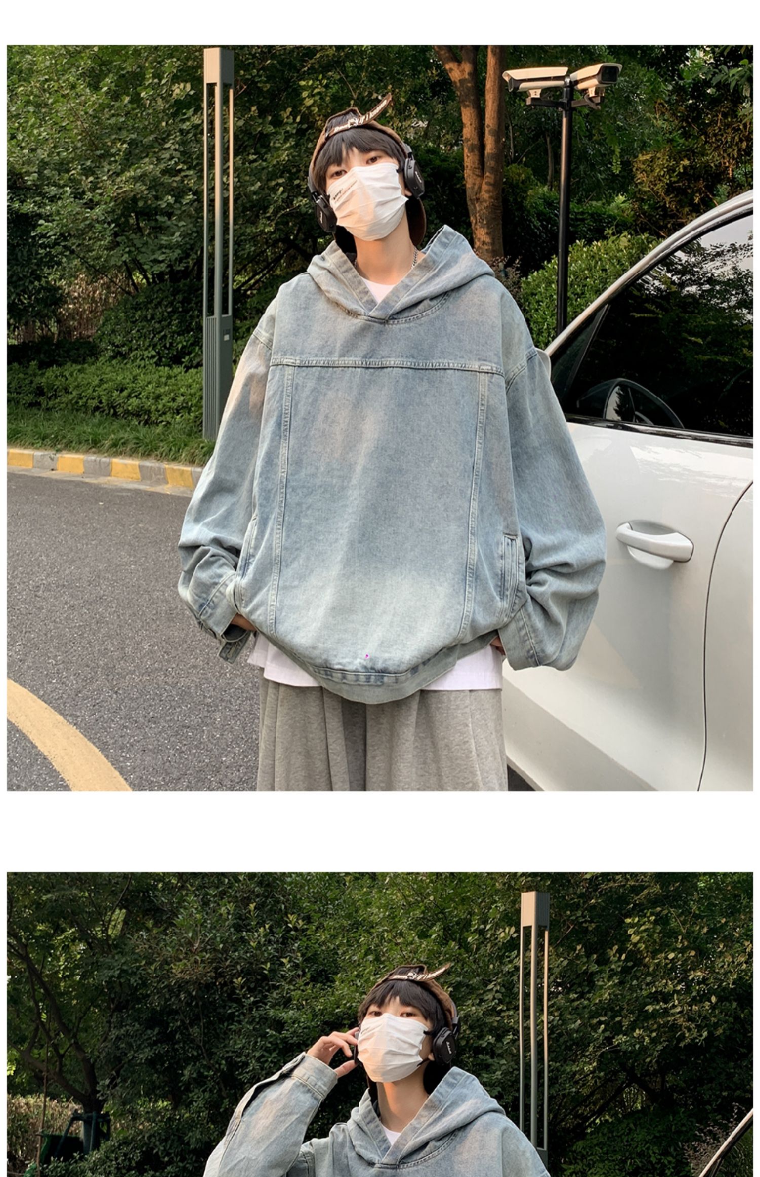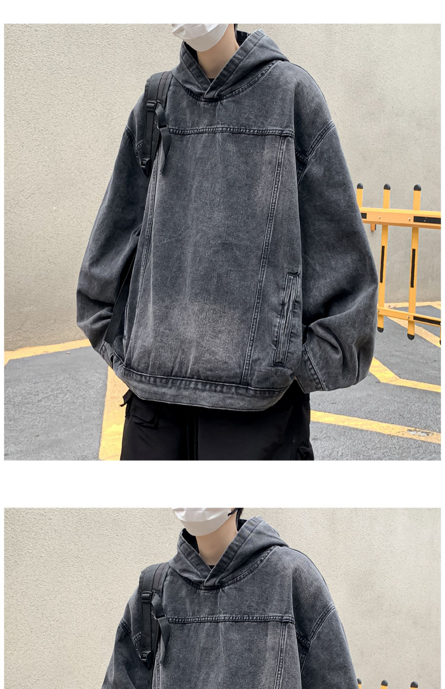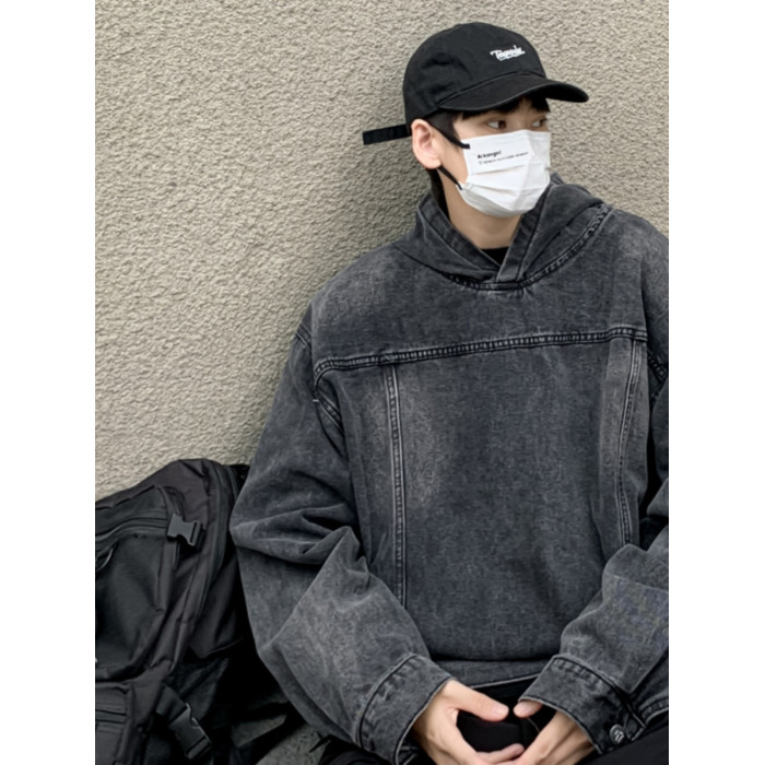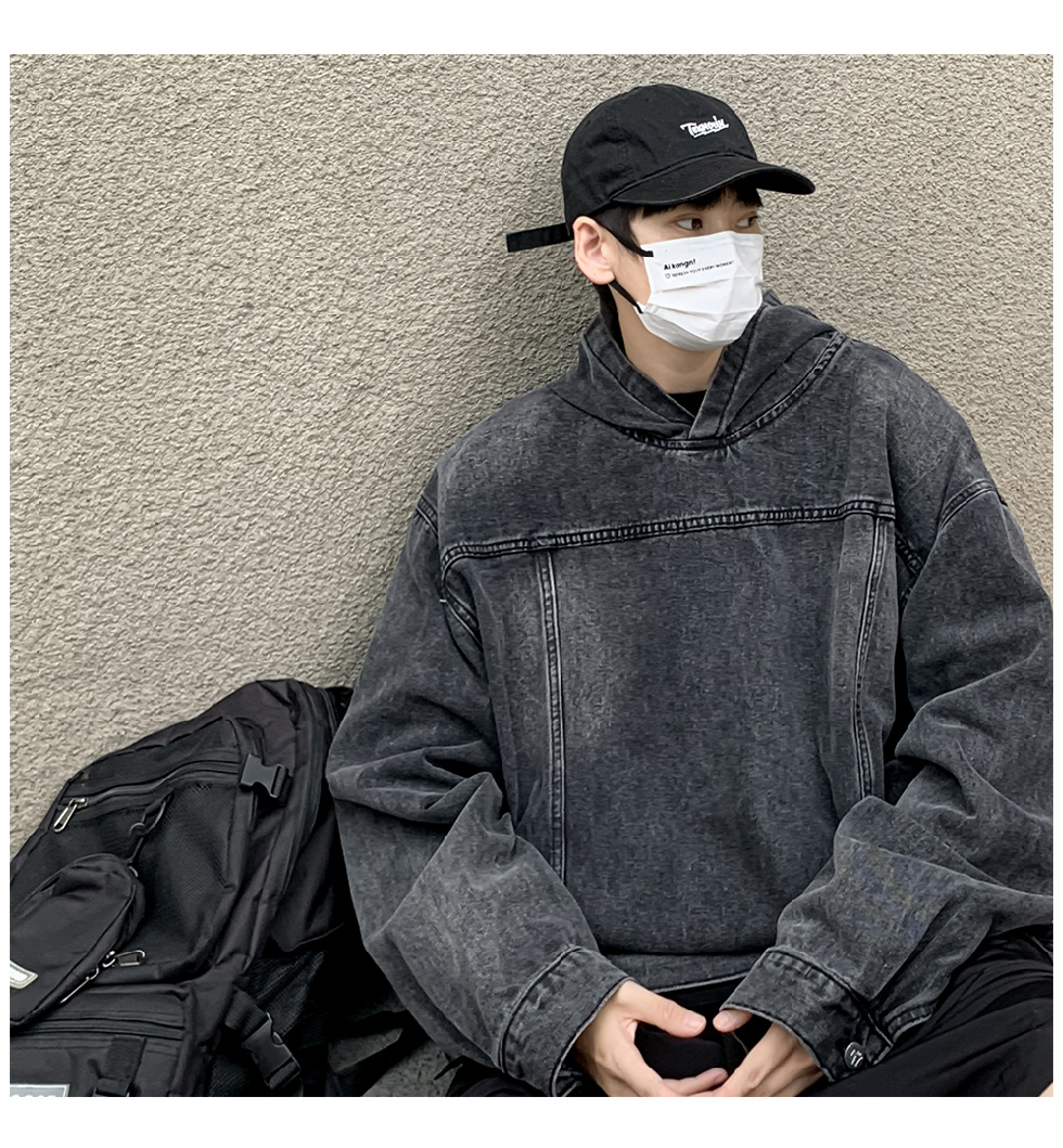 重磅水洗牛仔衛衣男春秋季潮牌寬松連帽夾克ins美式高街情侶外套
