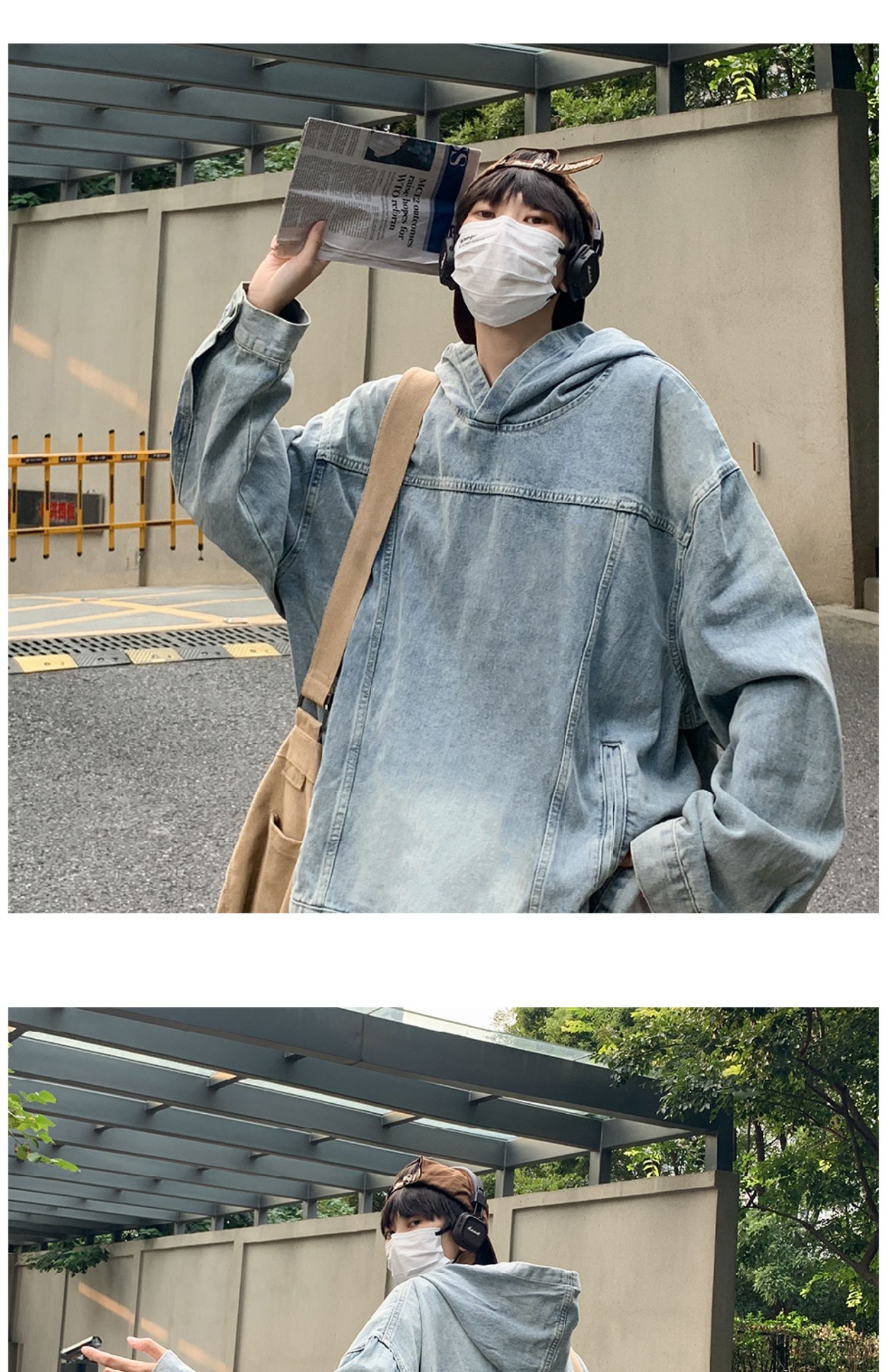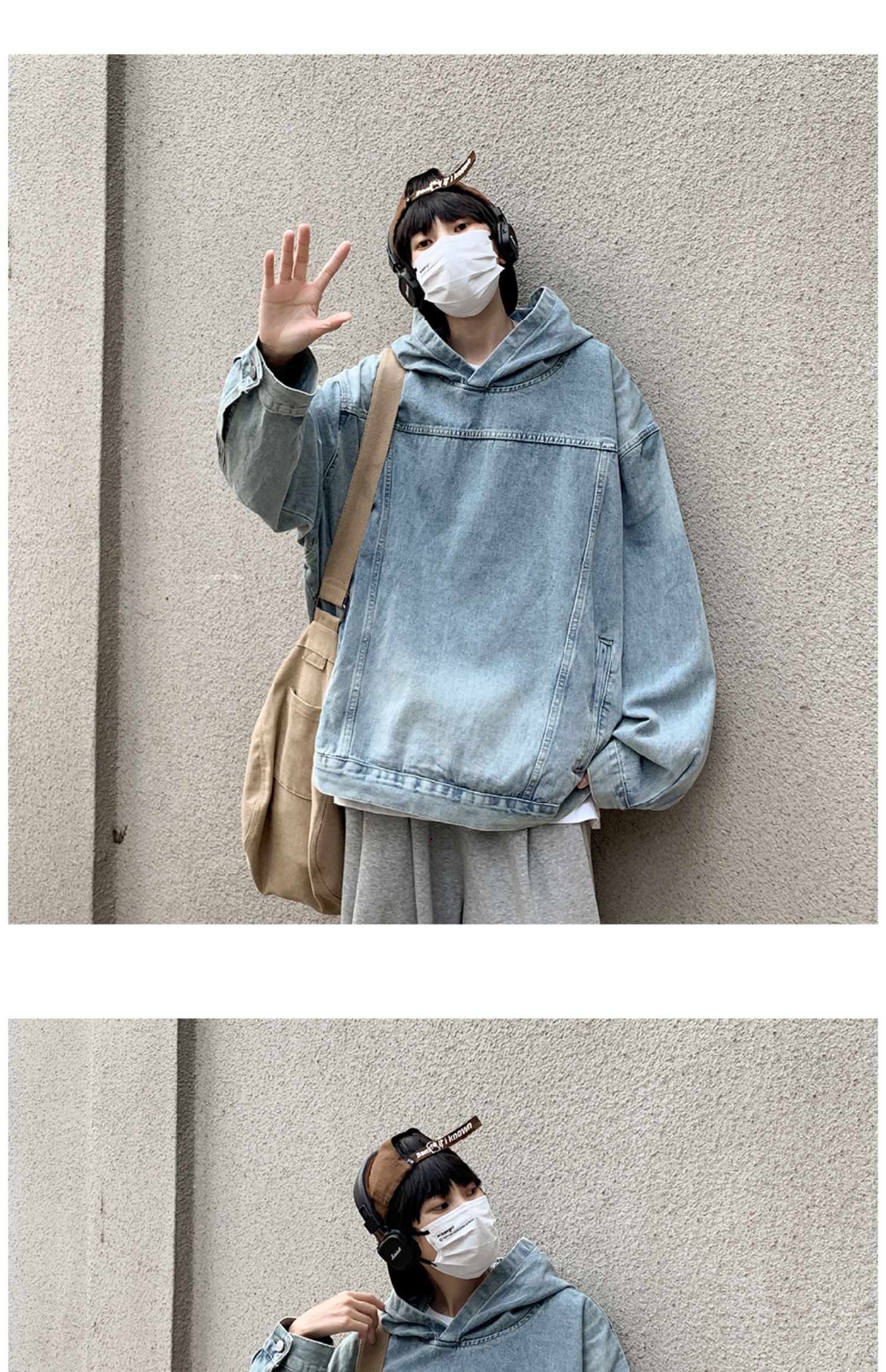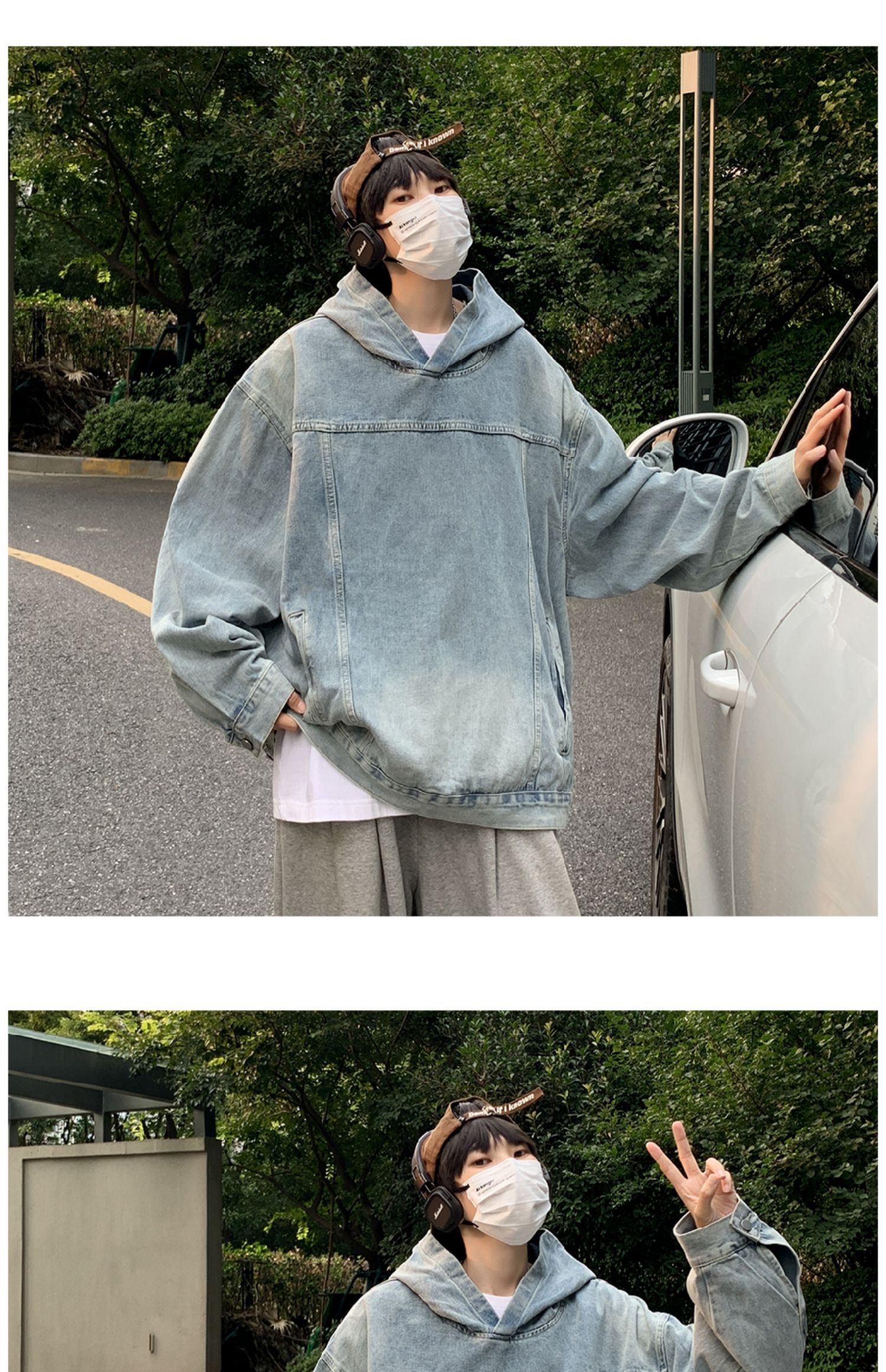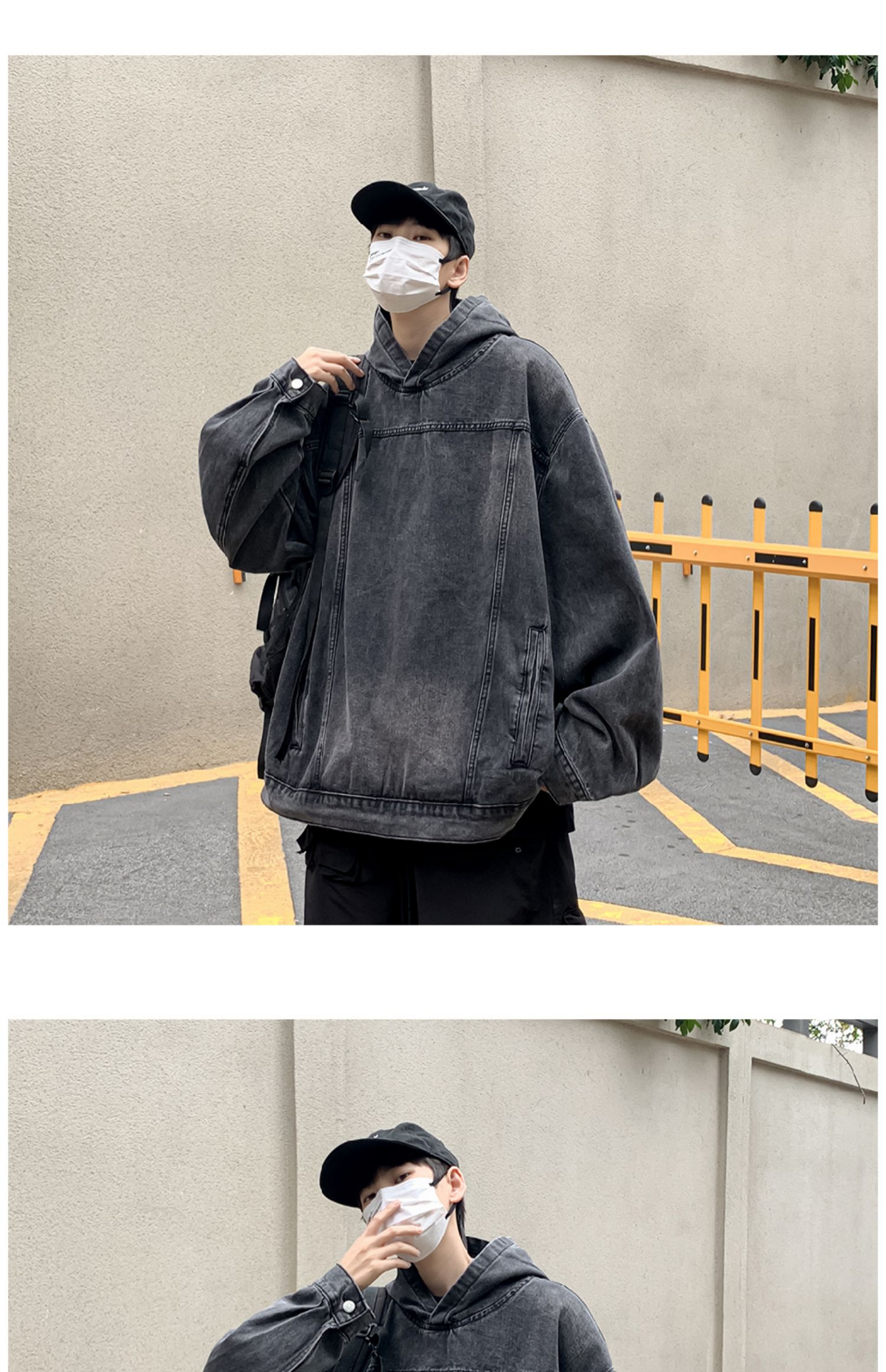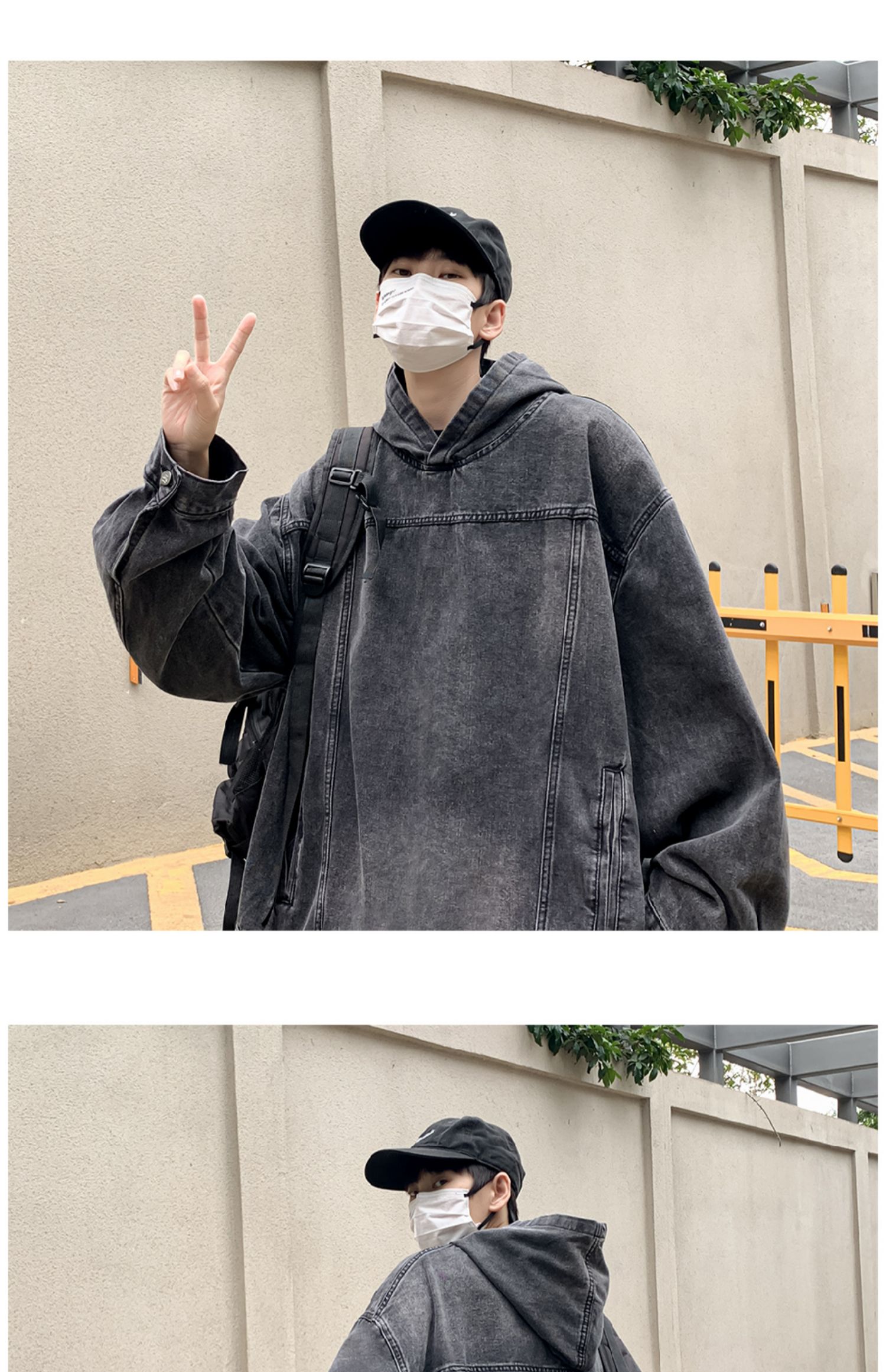 重磅水洗牛仔衛衣男春秋季潮牌寬松連帽夾克ins美式高街情侶外套
