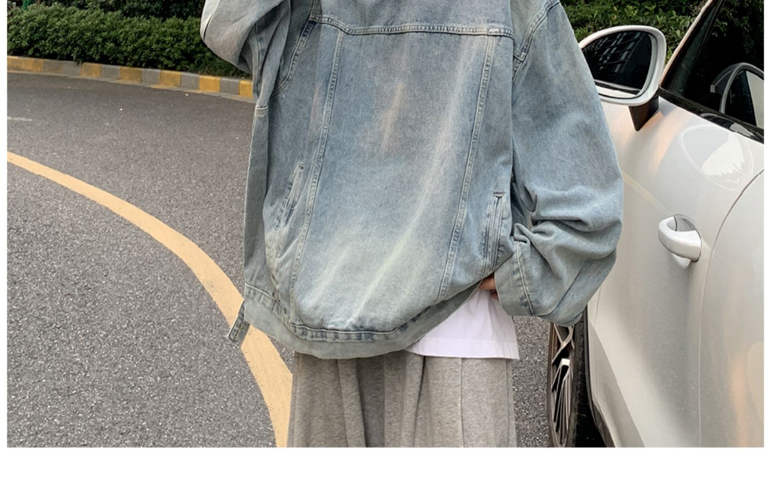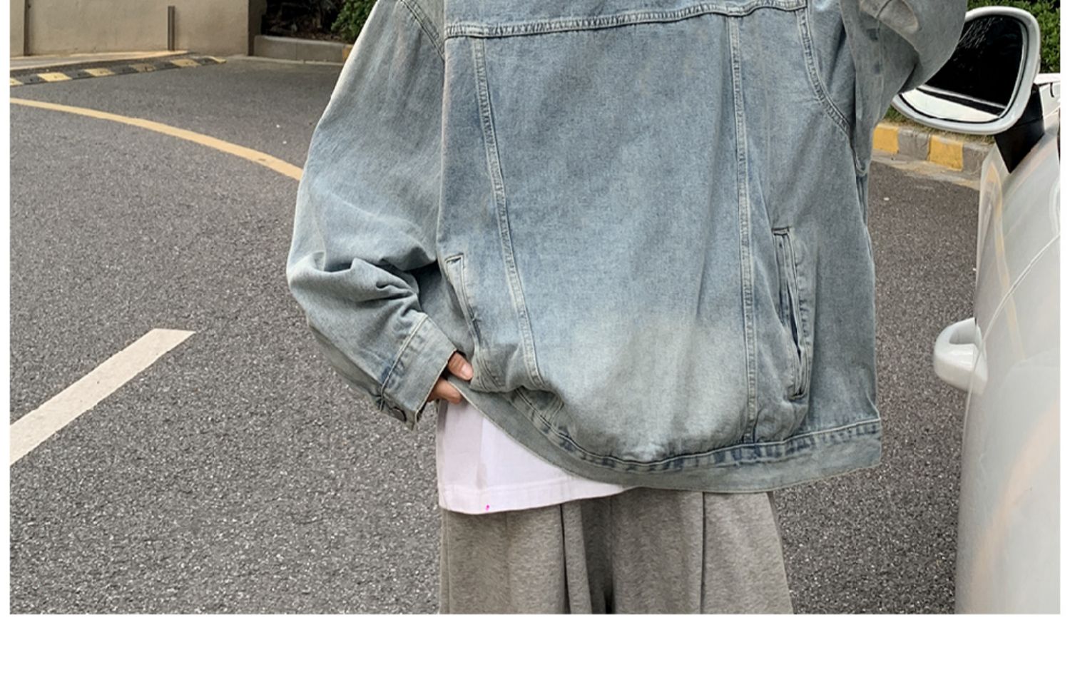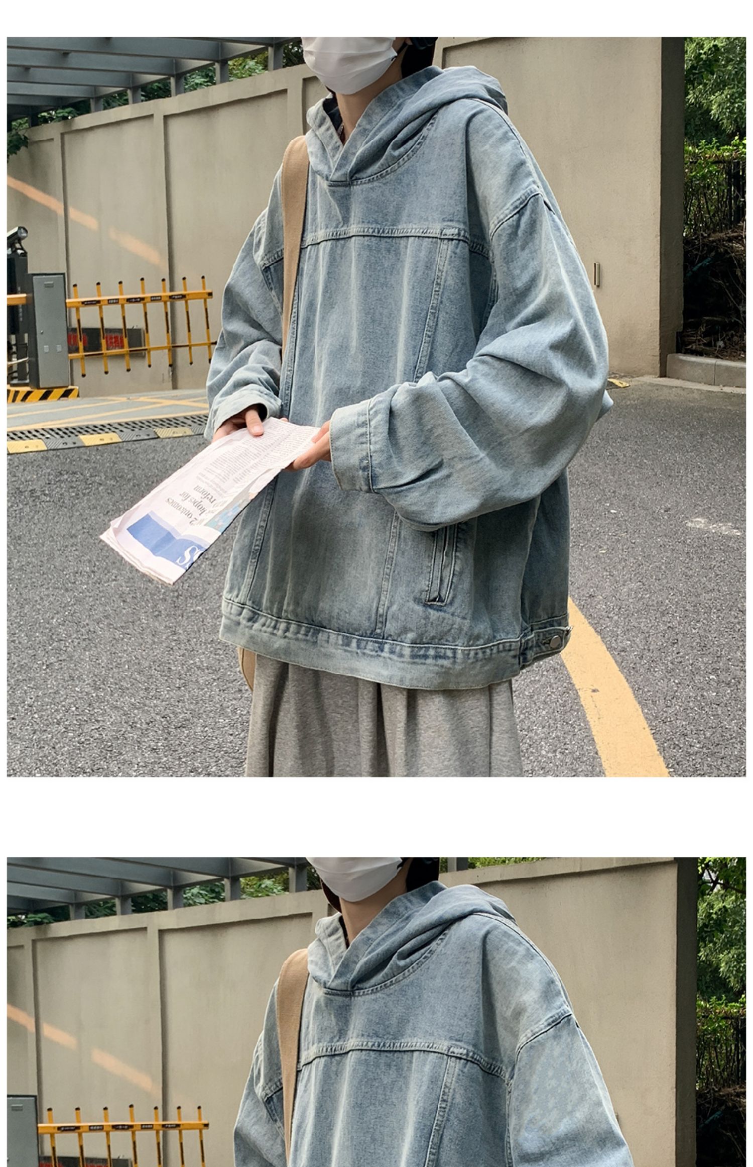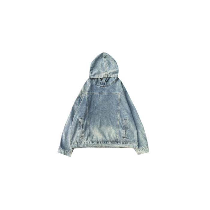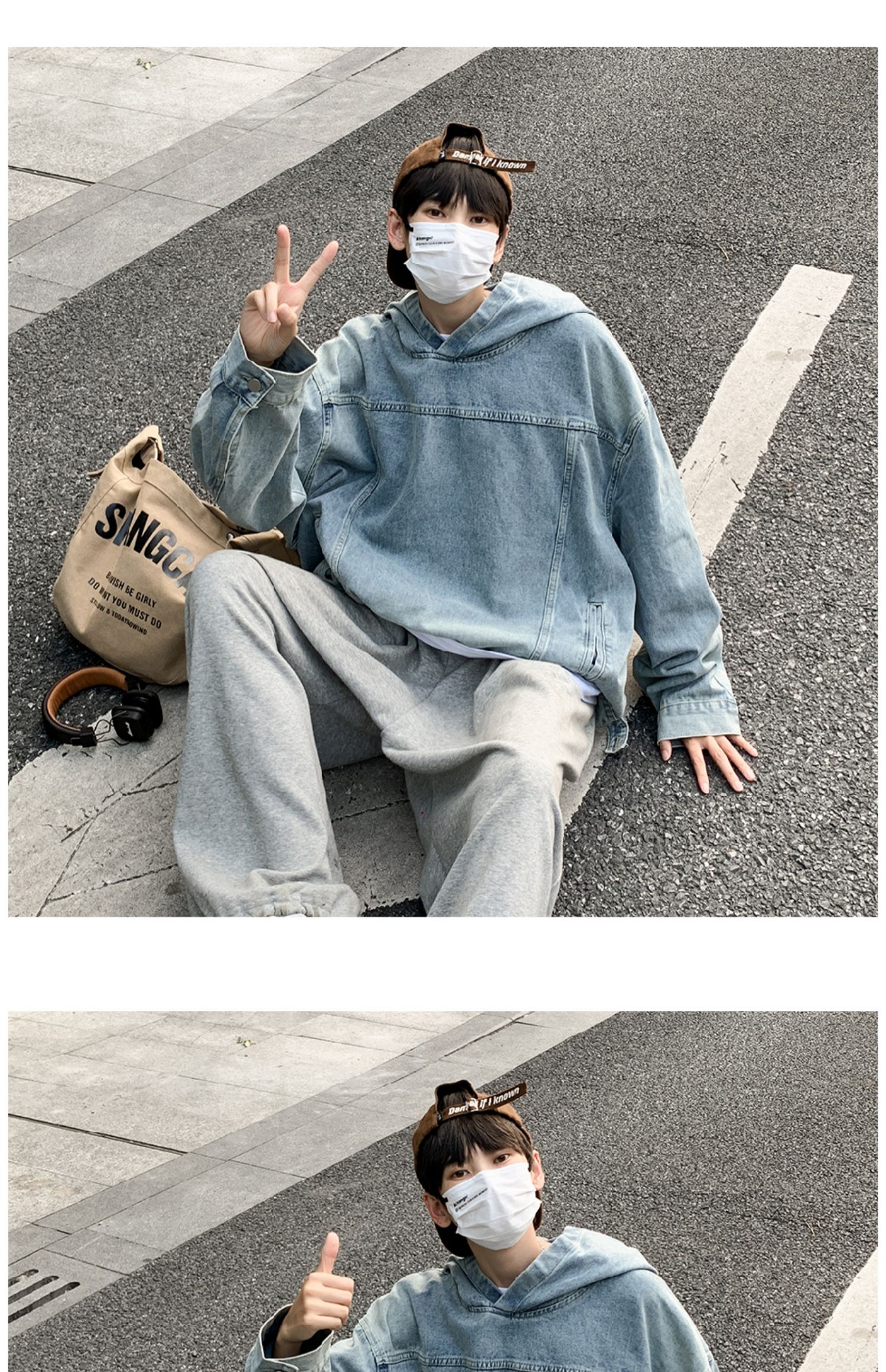 重磅水洗牛仔衛衣男春秋季潮牌寬松連帽夾克ins美式高街情侶外套