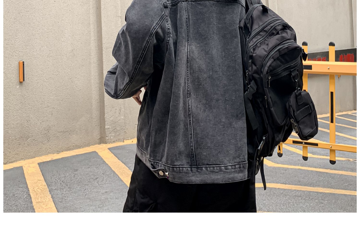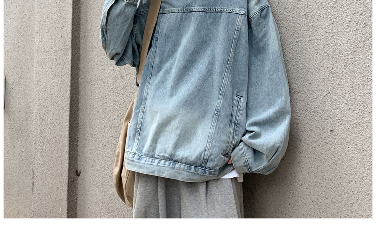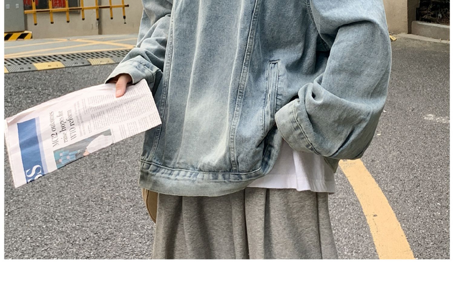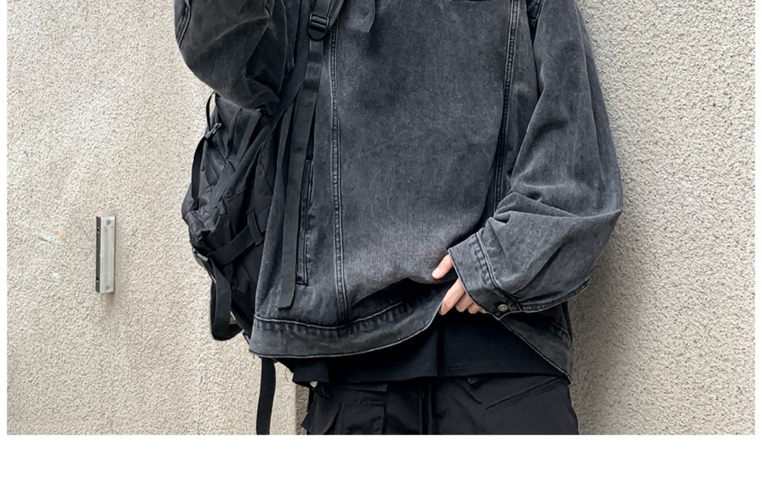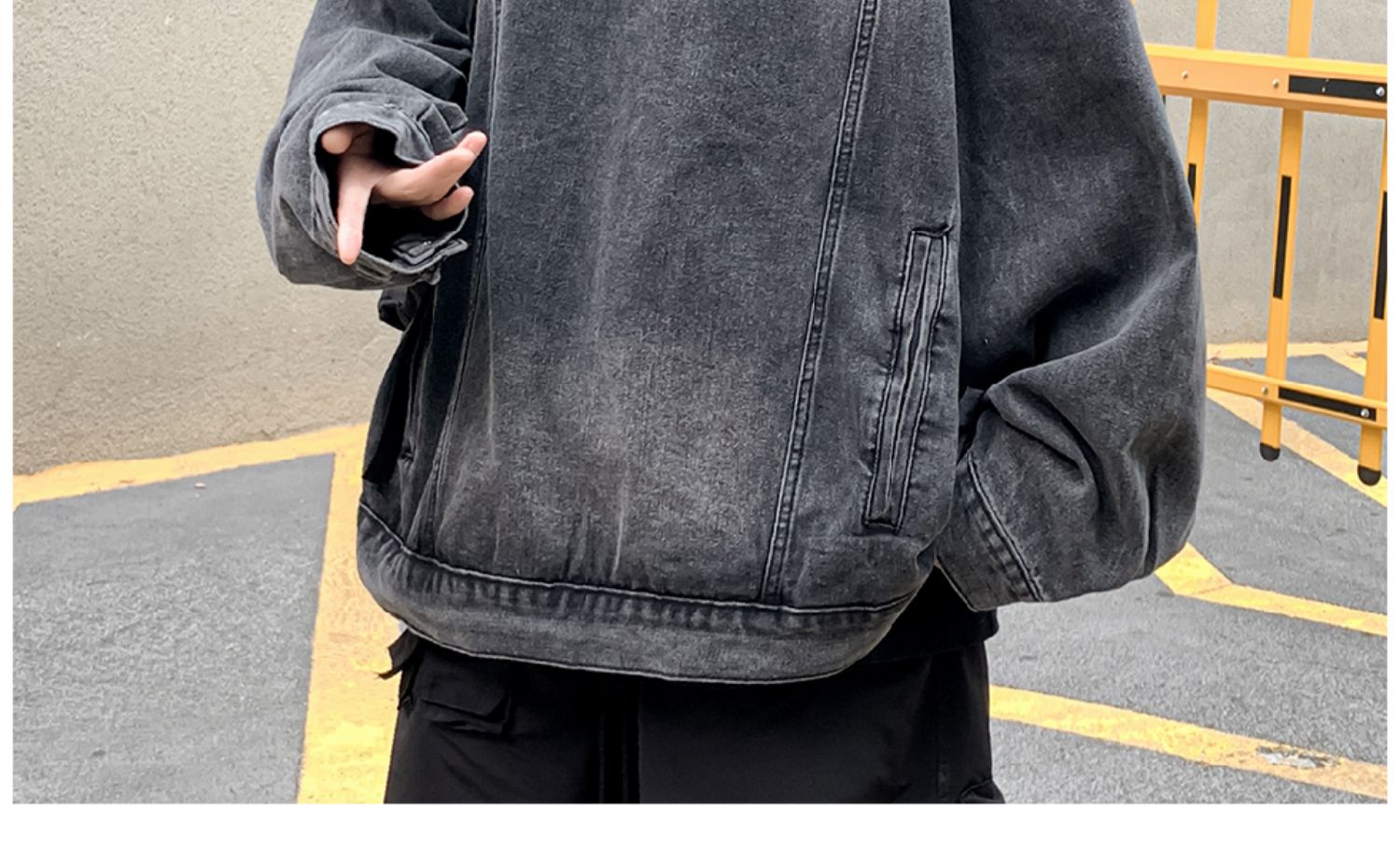 重磅水洗牛仔衛衣男春秋季潮牌寬松連帽夾克ins美式高街情侶外套
