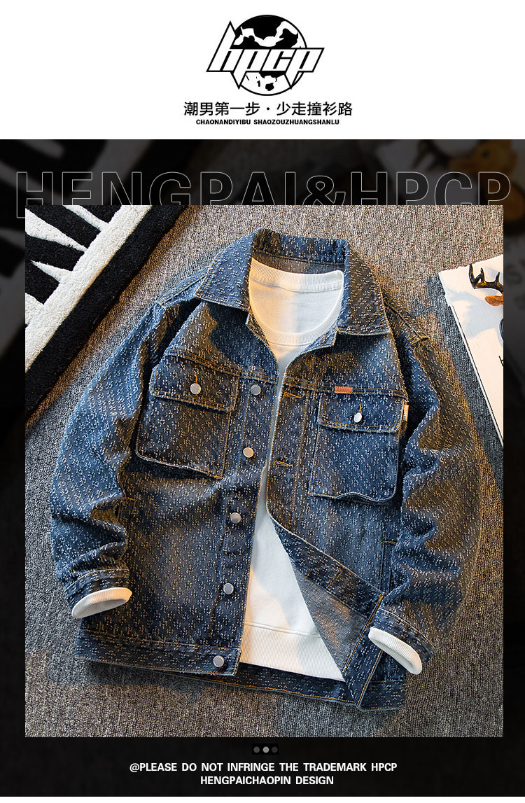 HPCP重工貓爪鉤花牛仔外套男秋季新款高級感潮牌男士痞帥工裝夾克