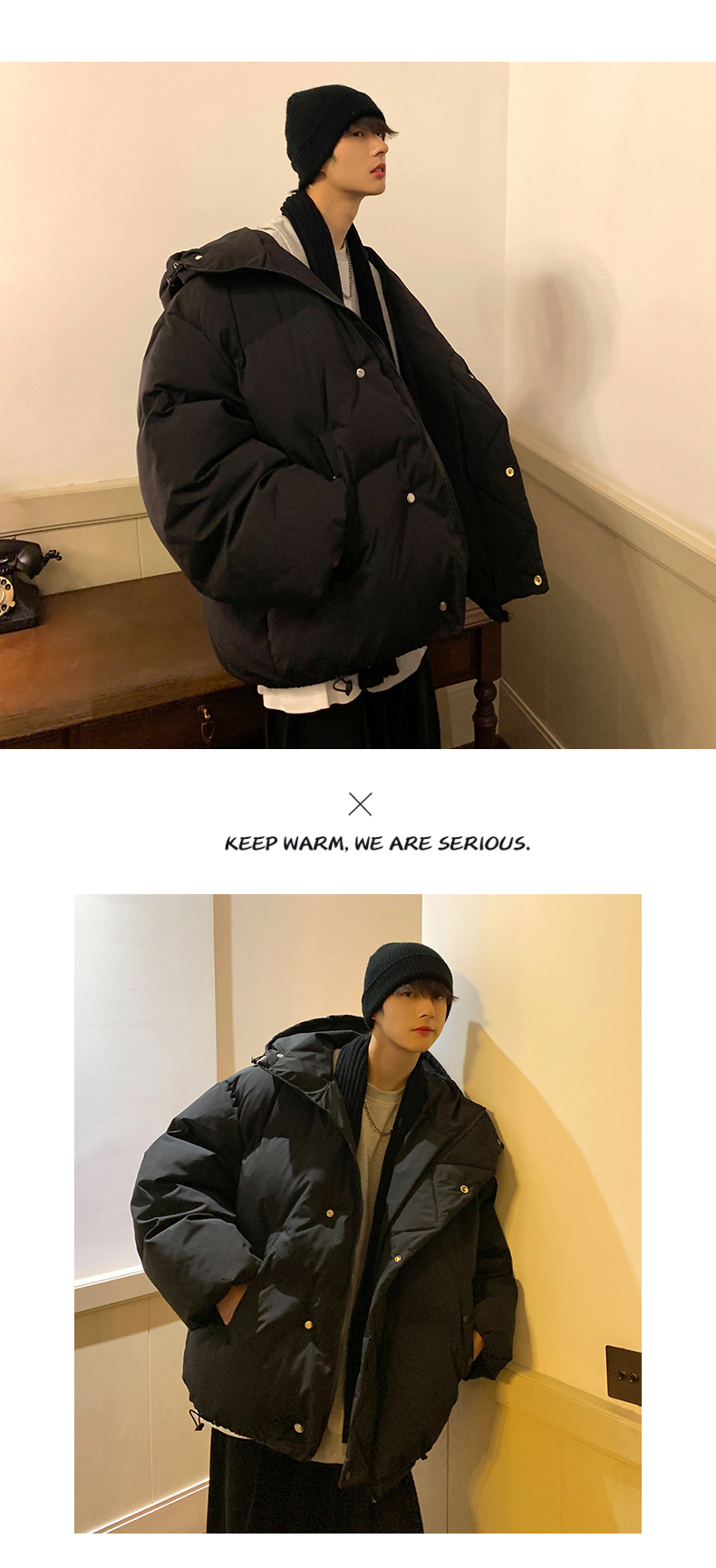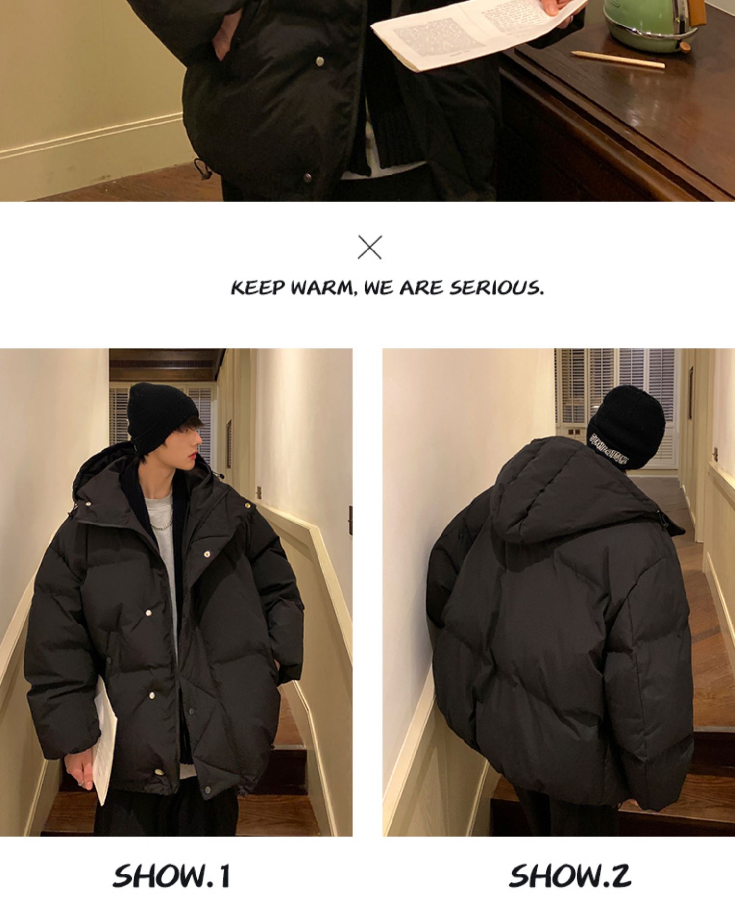 冬季羽絨服男士港風寬松麵包服連帽加厚青少年ins潮大碼外套