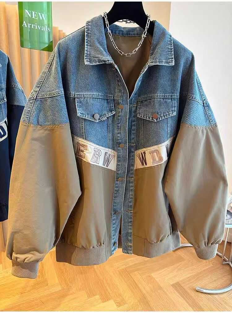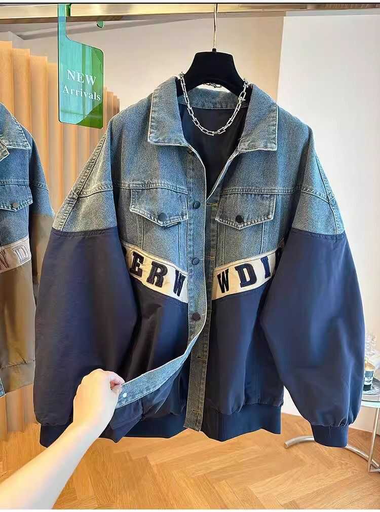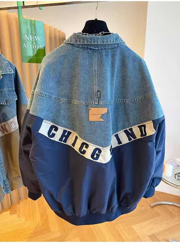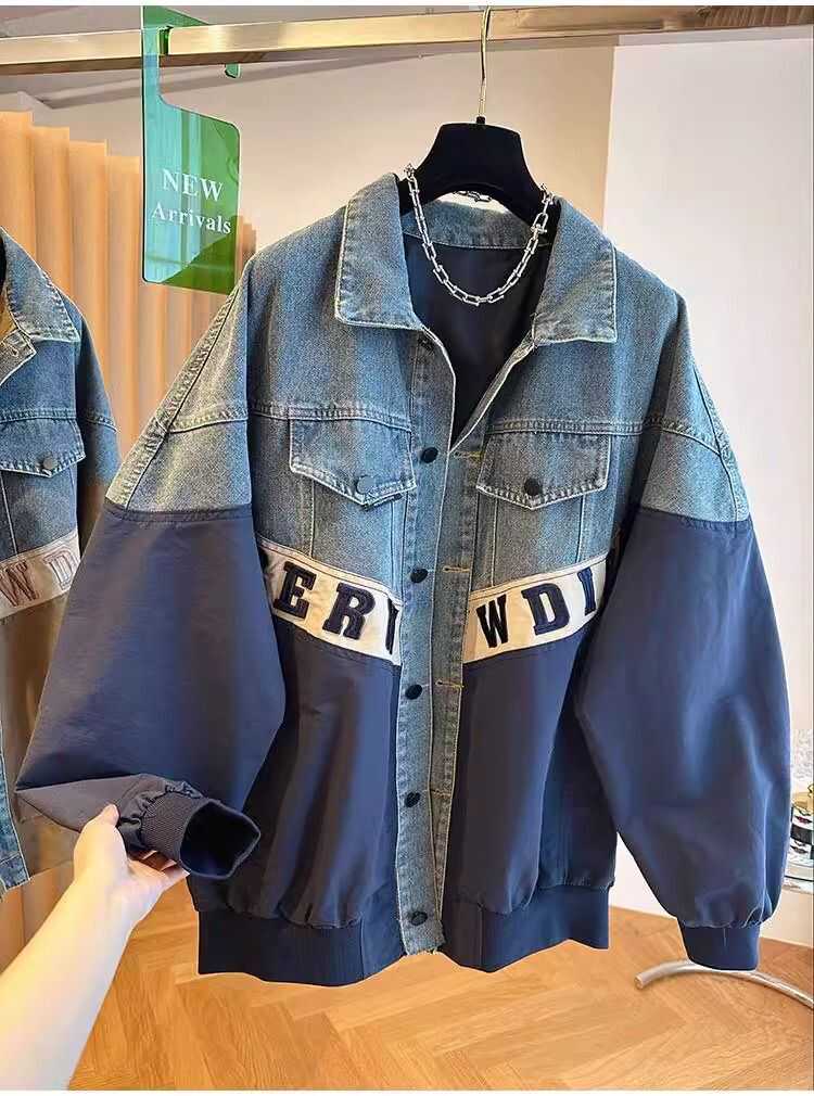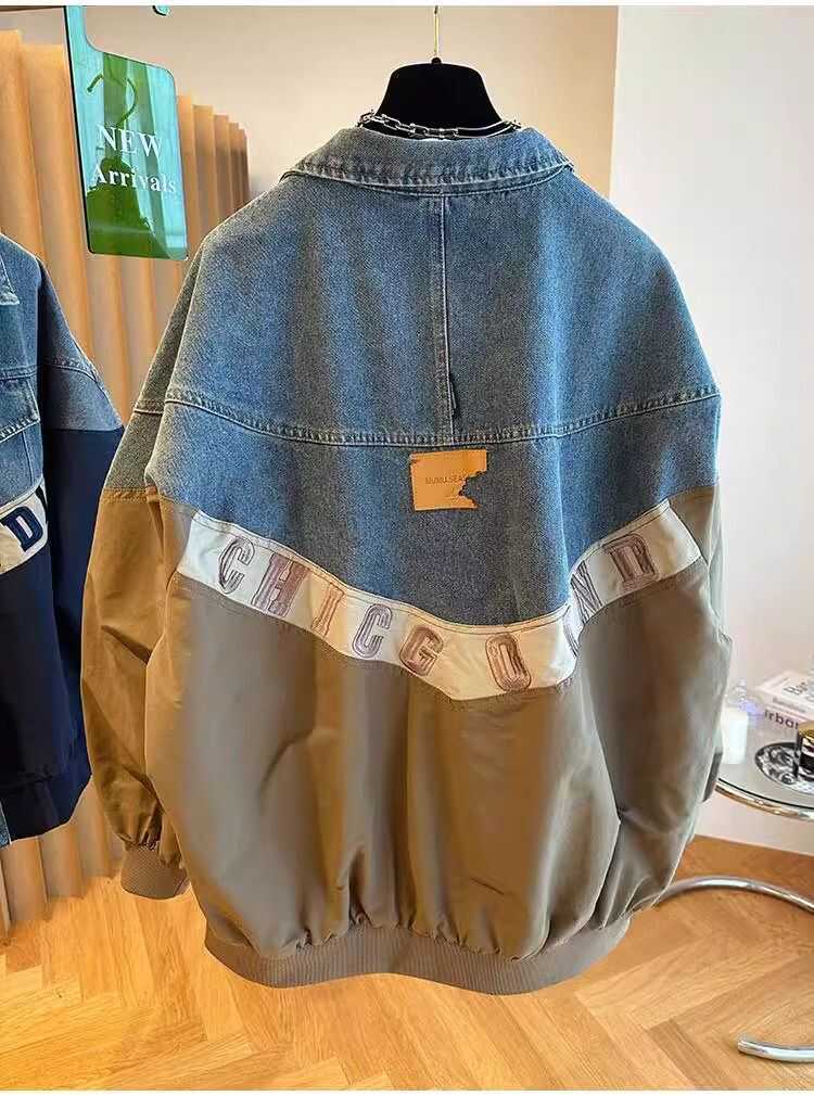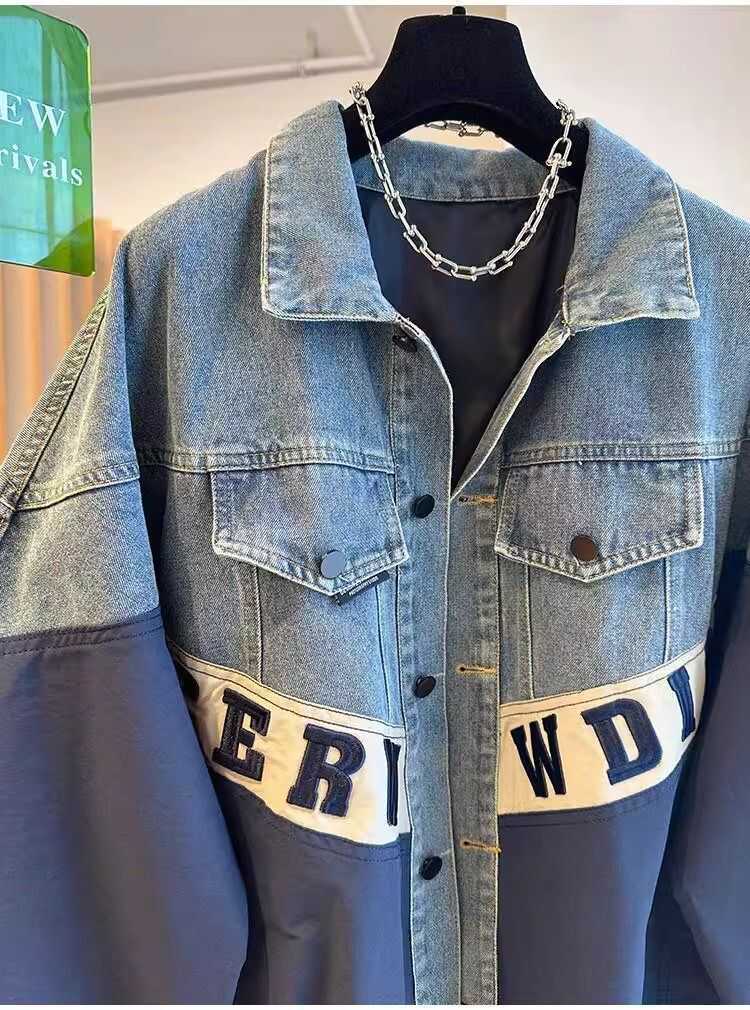 特大碼300斤歐貨寬松休閒拼接牛仔外套男裝春季時尚潮流百搭夾克
