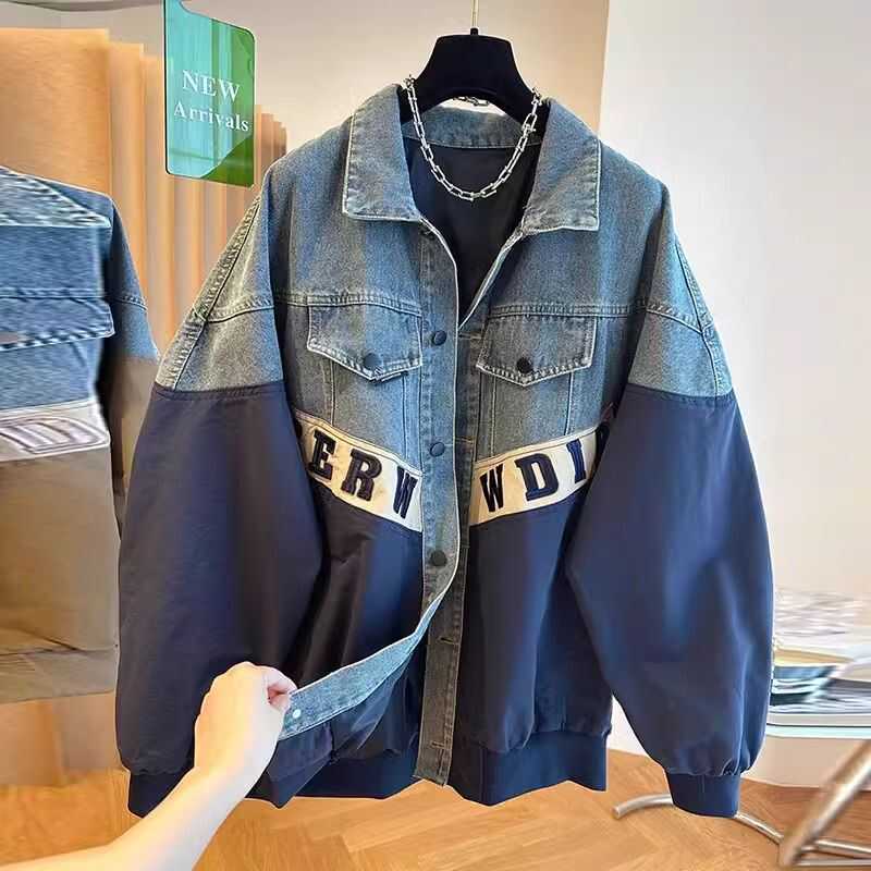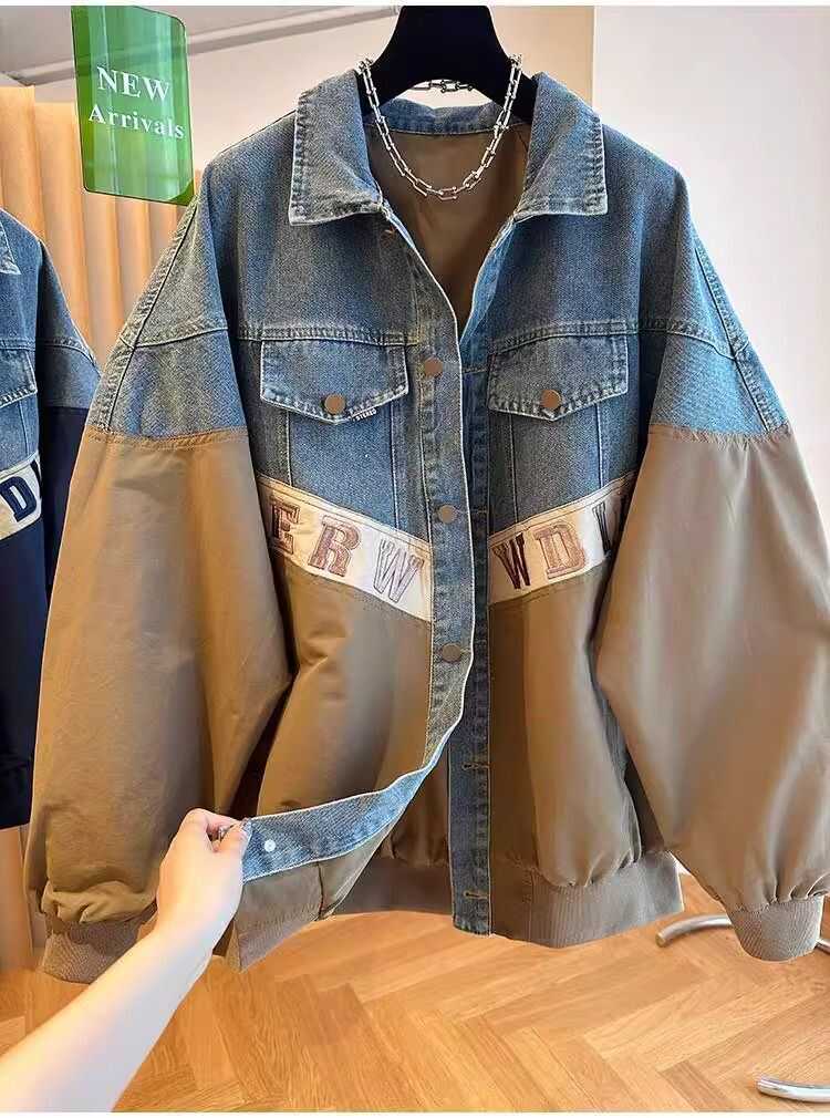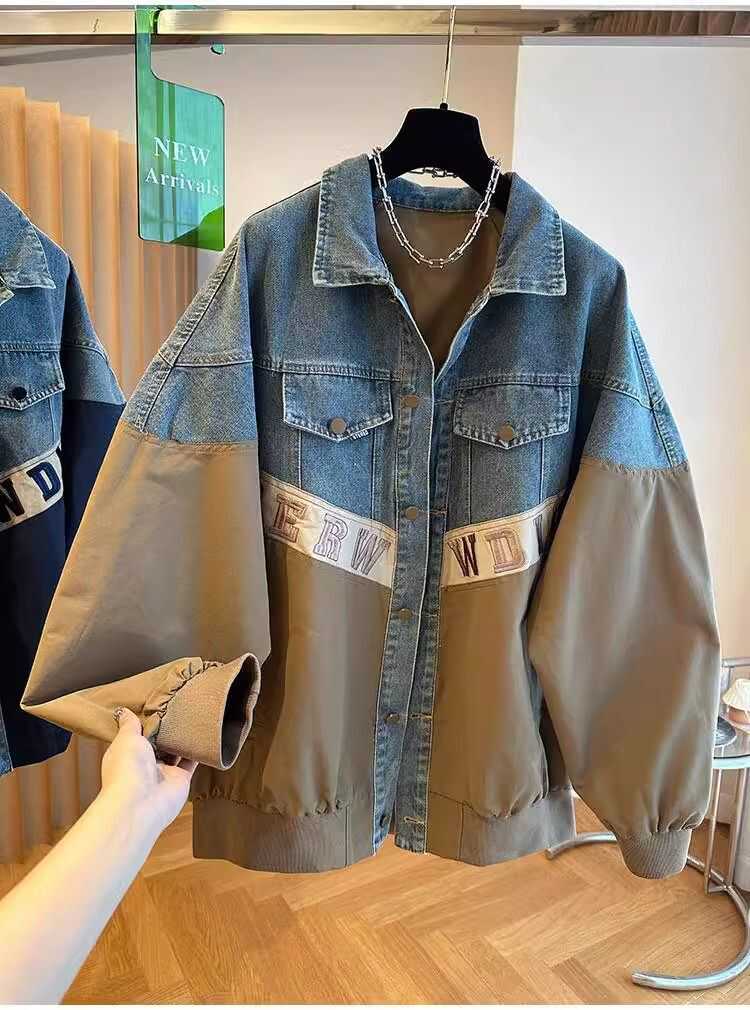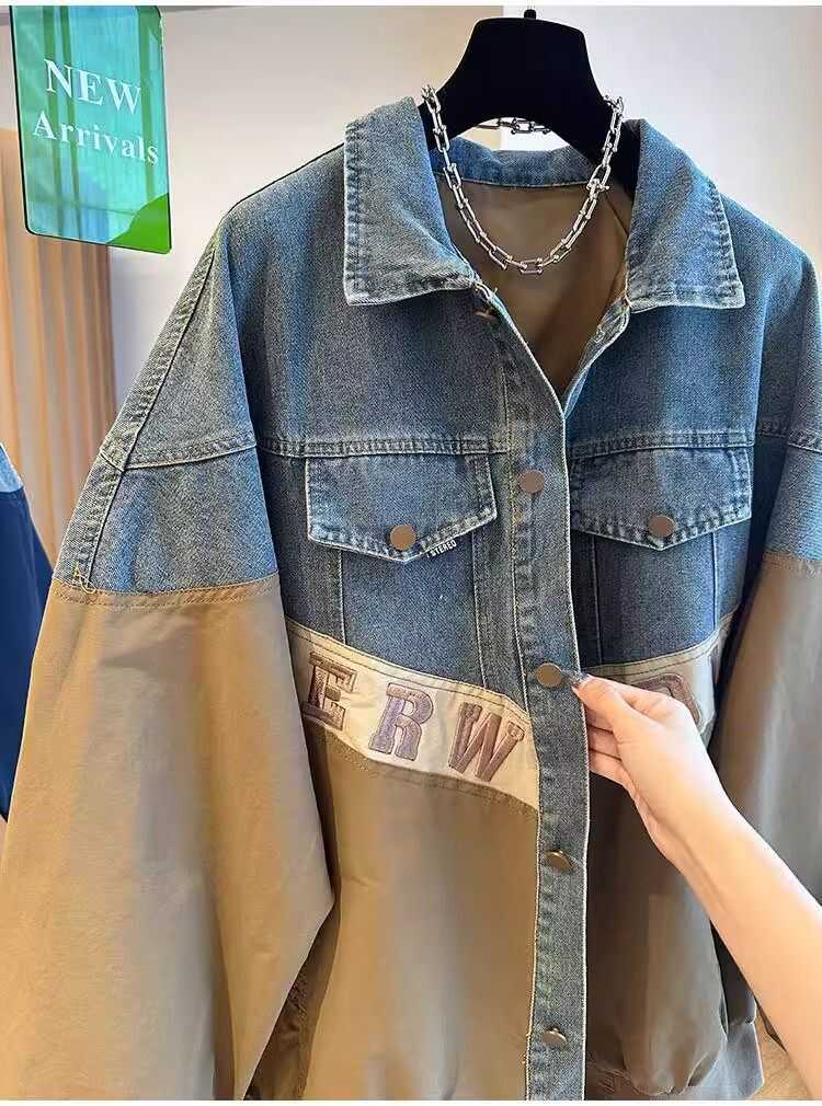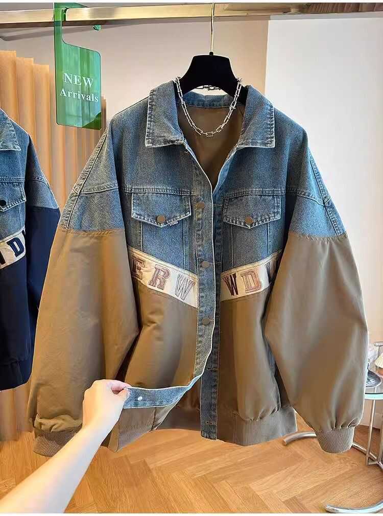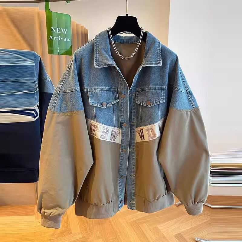 特大碼300斤歐貨寬松休閒拼接牛仔外套男裝春季時尚潮流百搭夾克