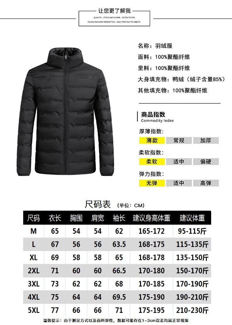 輕薄羽絨服男冬季短款白鴨絨超輕羽絨衣石墨烯保暖立領白鴨絨男裝