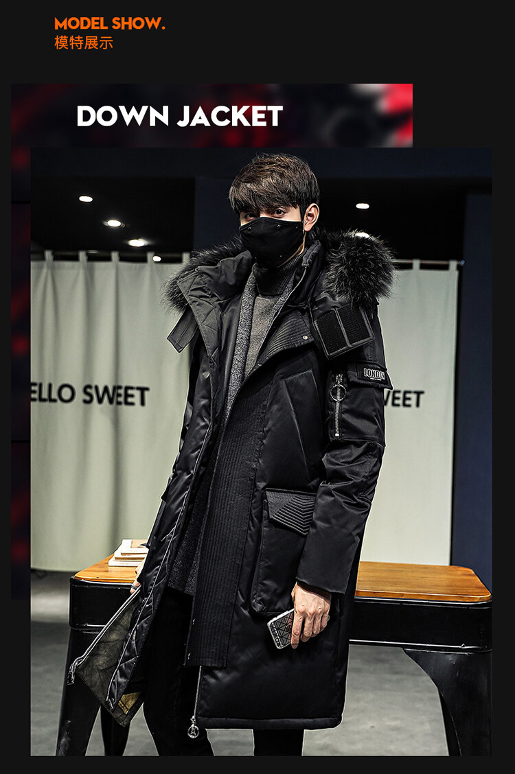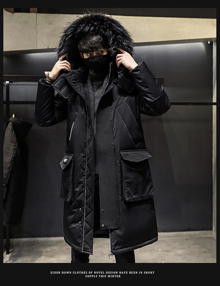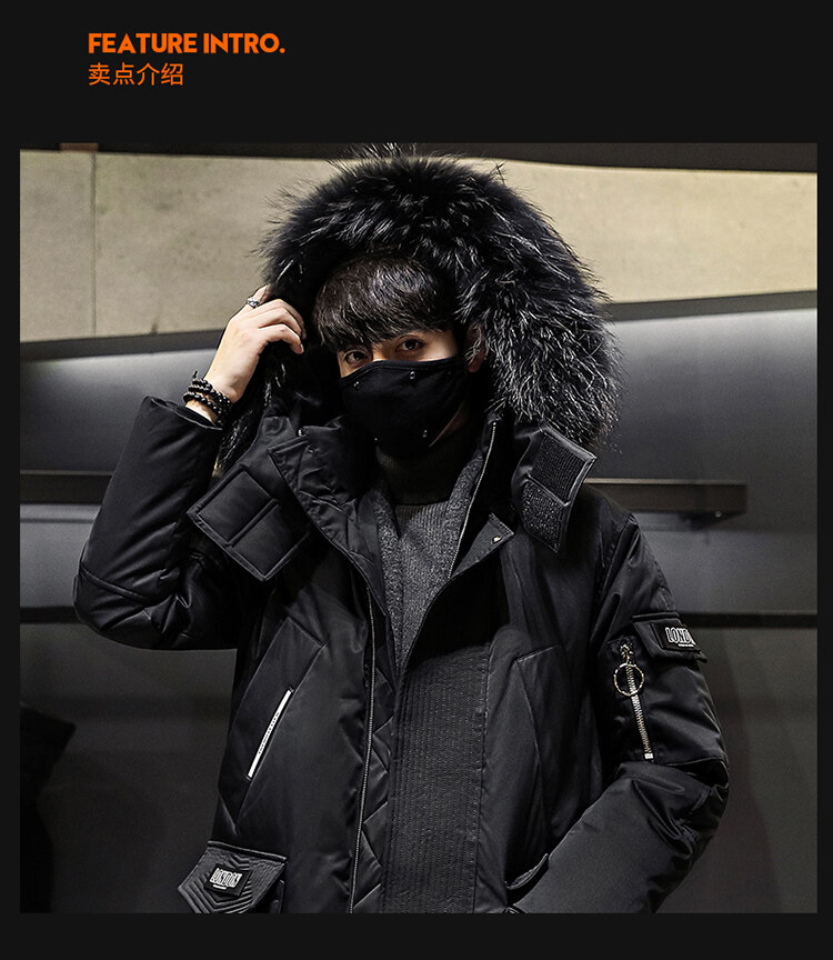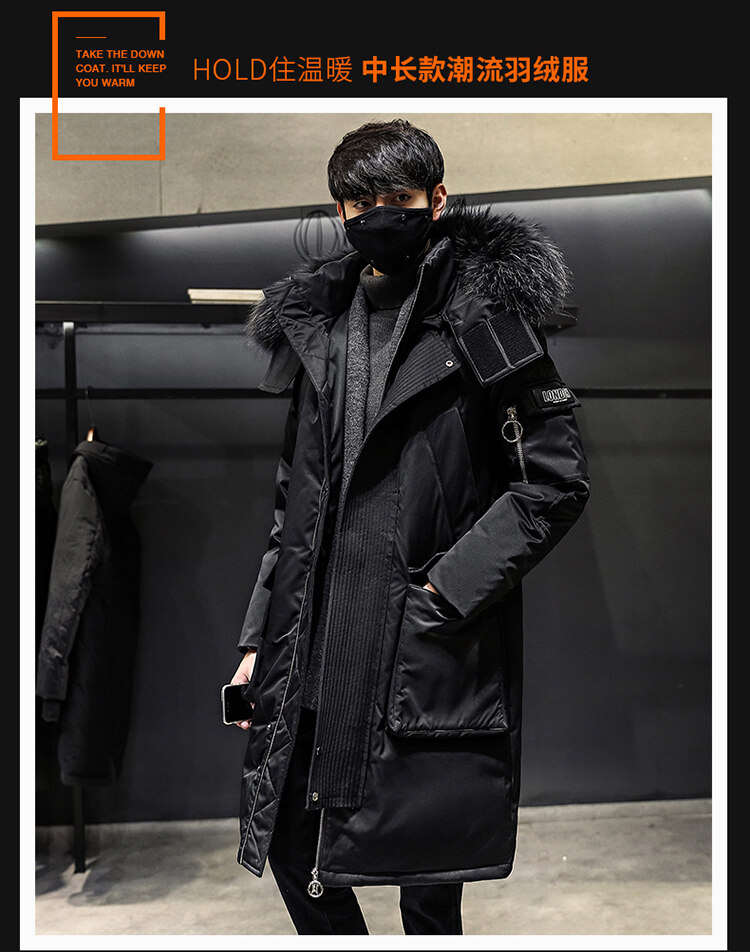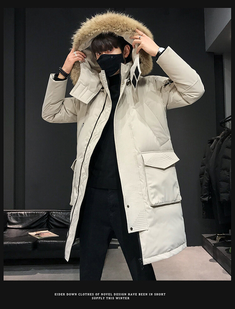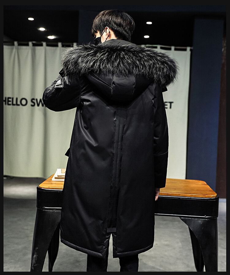 冬季中長款羽絨服男士派克服初中生高中學生加厚大毛領白鴨絨外套