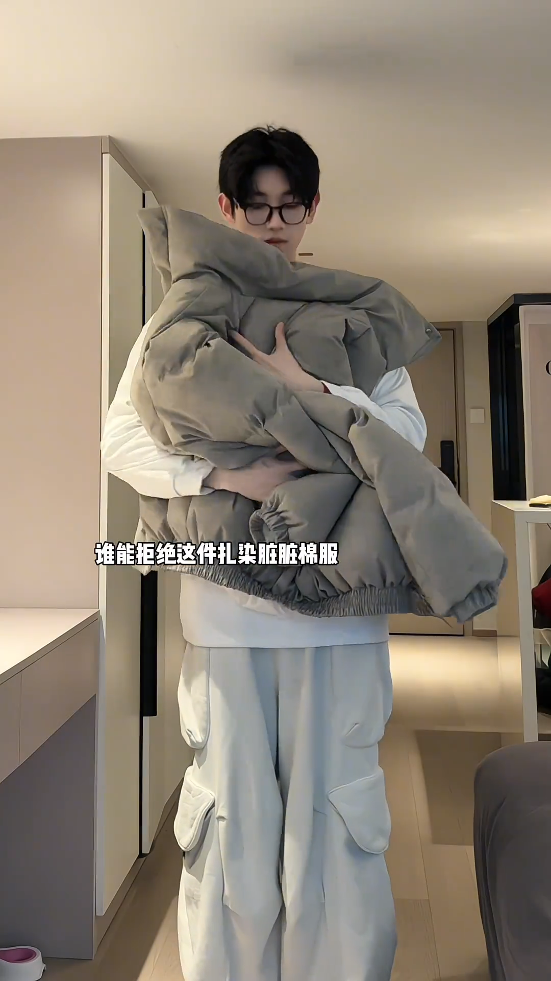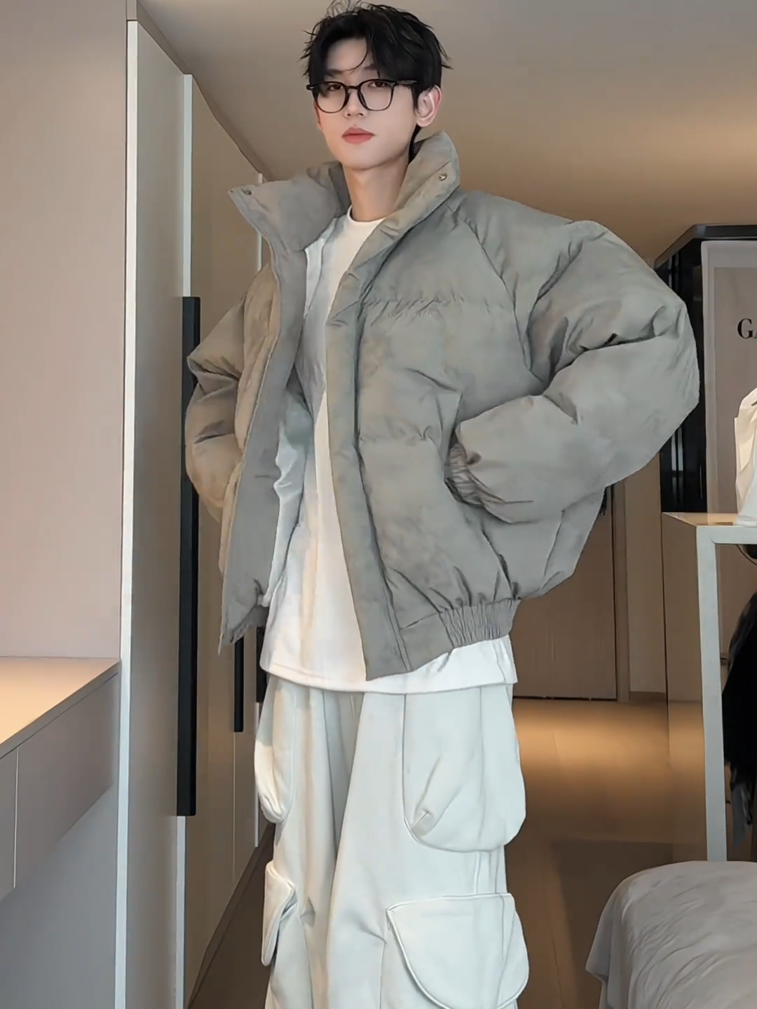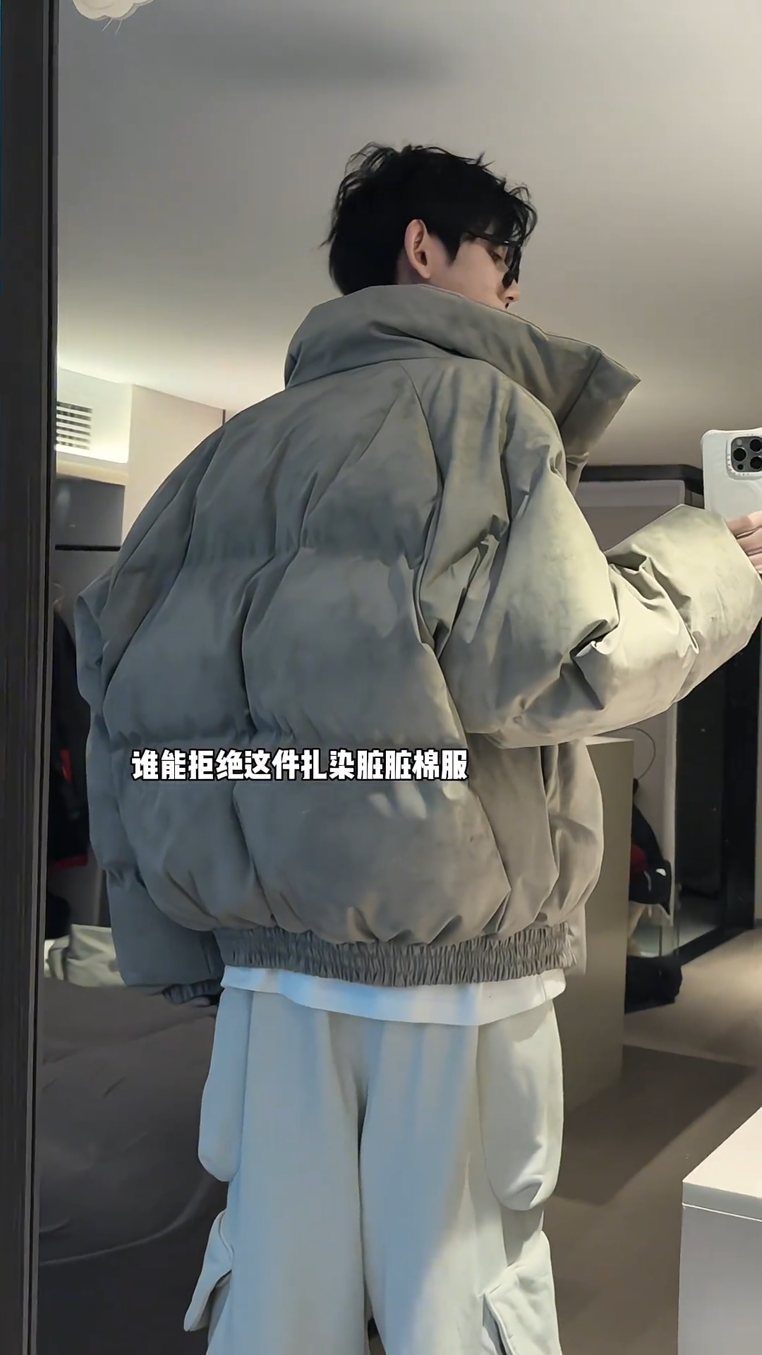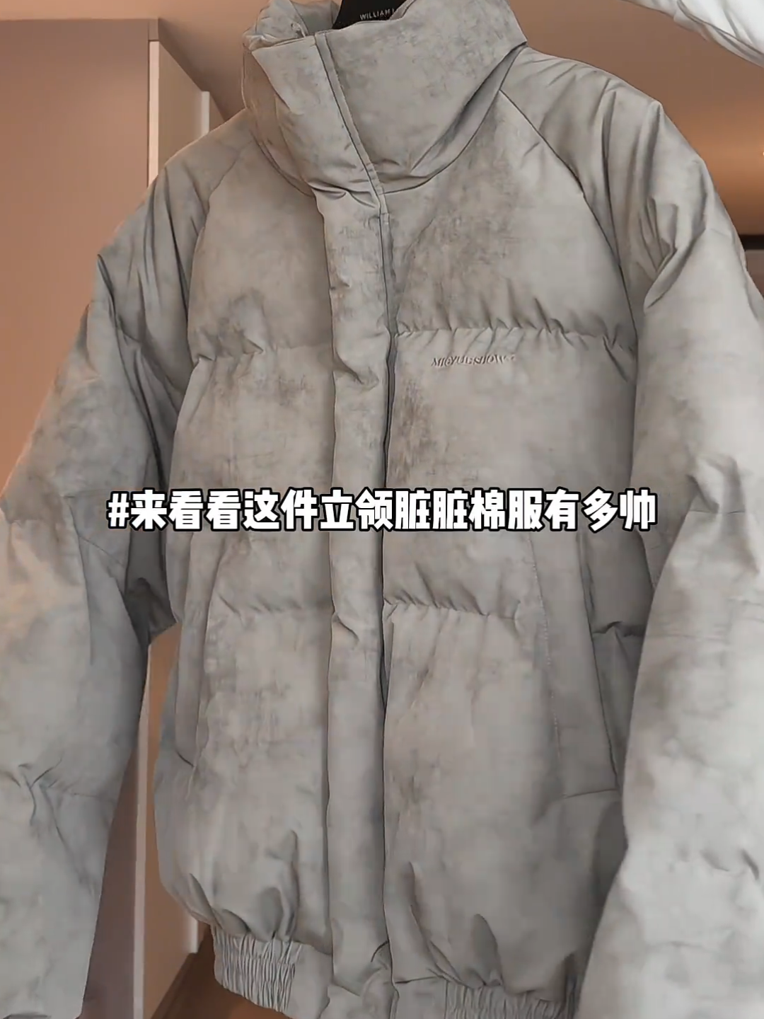 美式復古髒髒短款羽絨服男款冬季加厚立領麵包服cleanfit棉衣外套