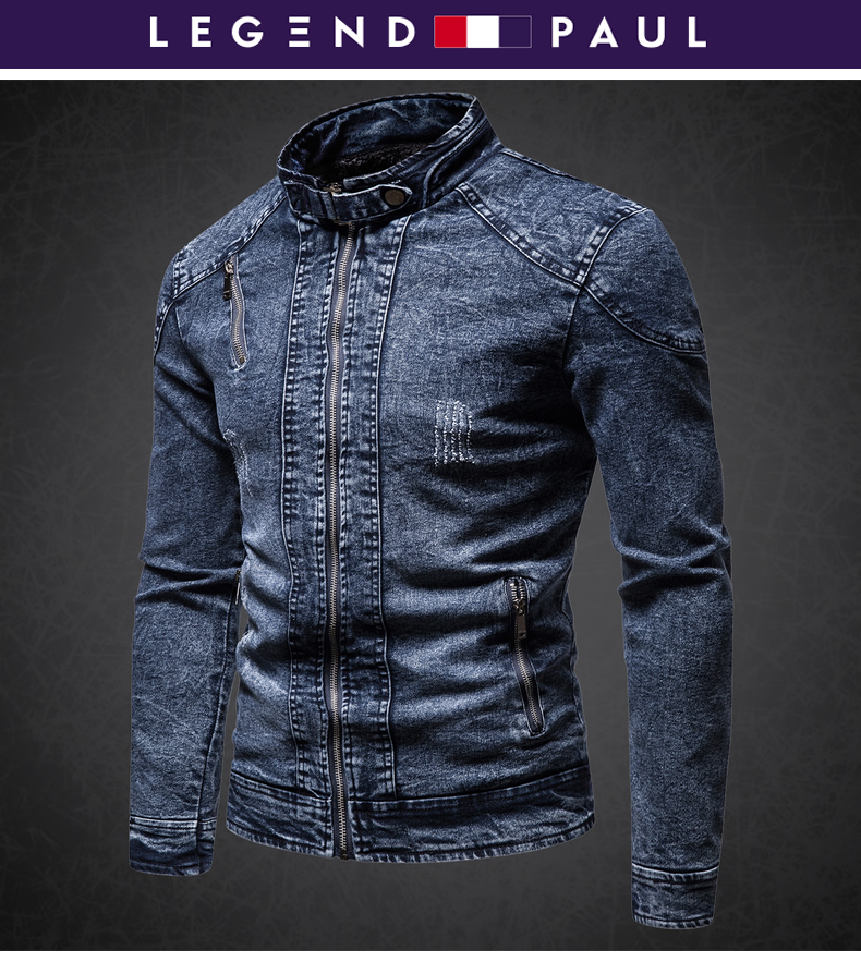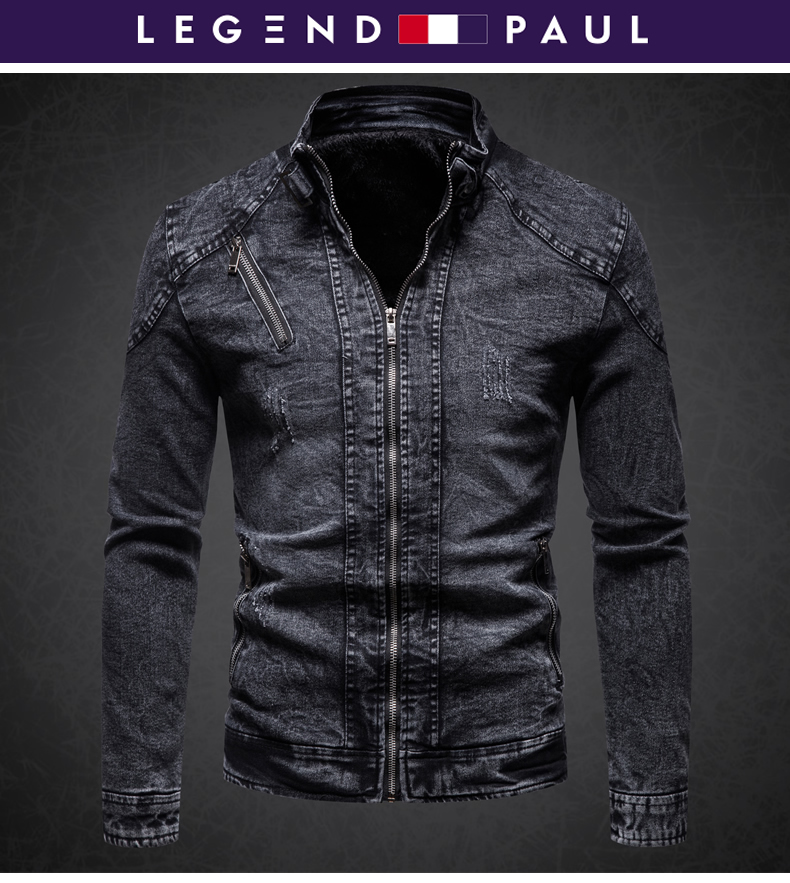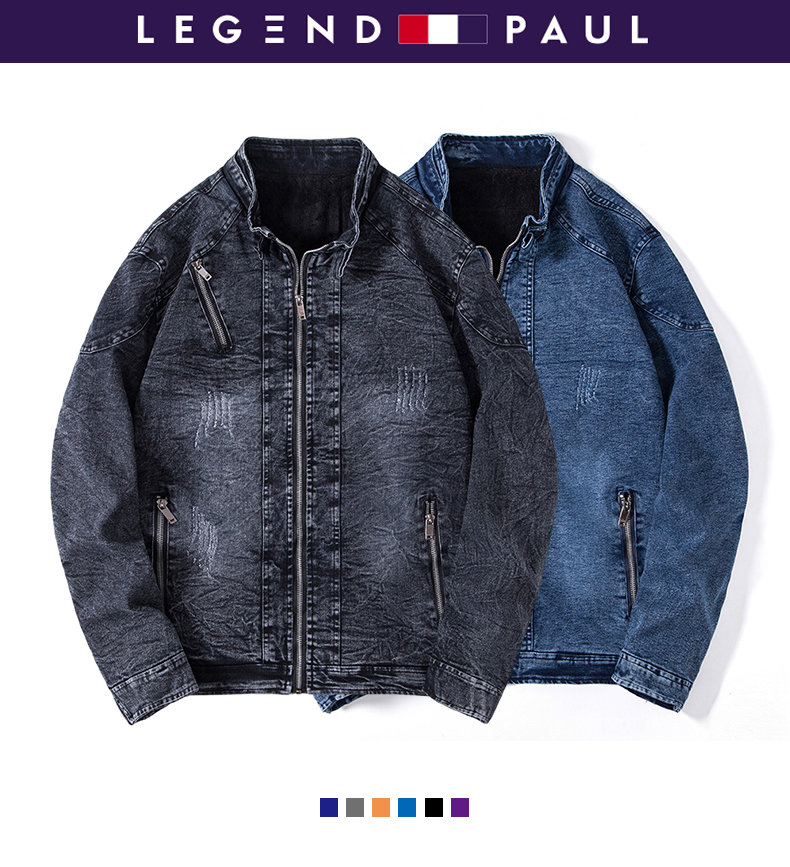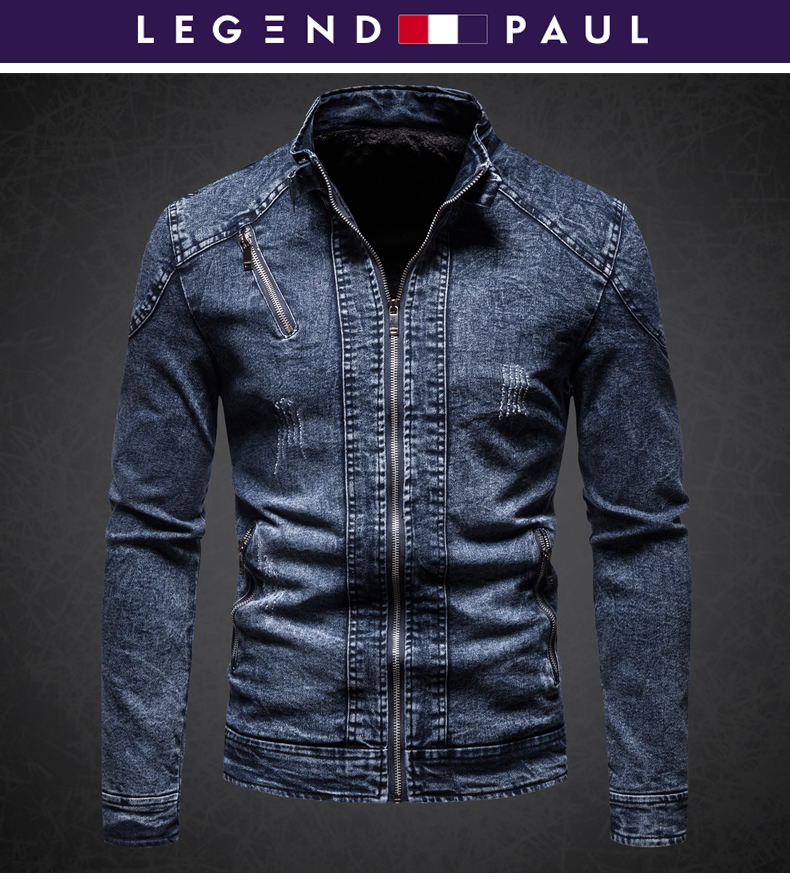 保羅復古牛仔外套男立領夾克秋冬季加絨潮牌修身韓版潮流帥氣衣服