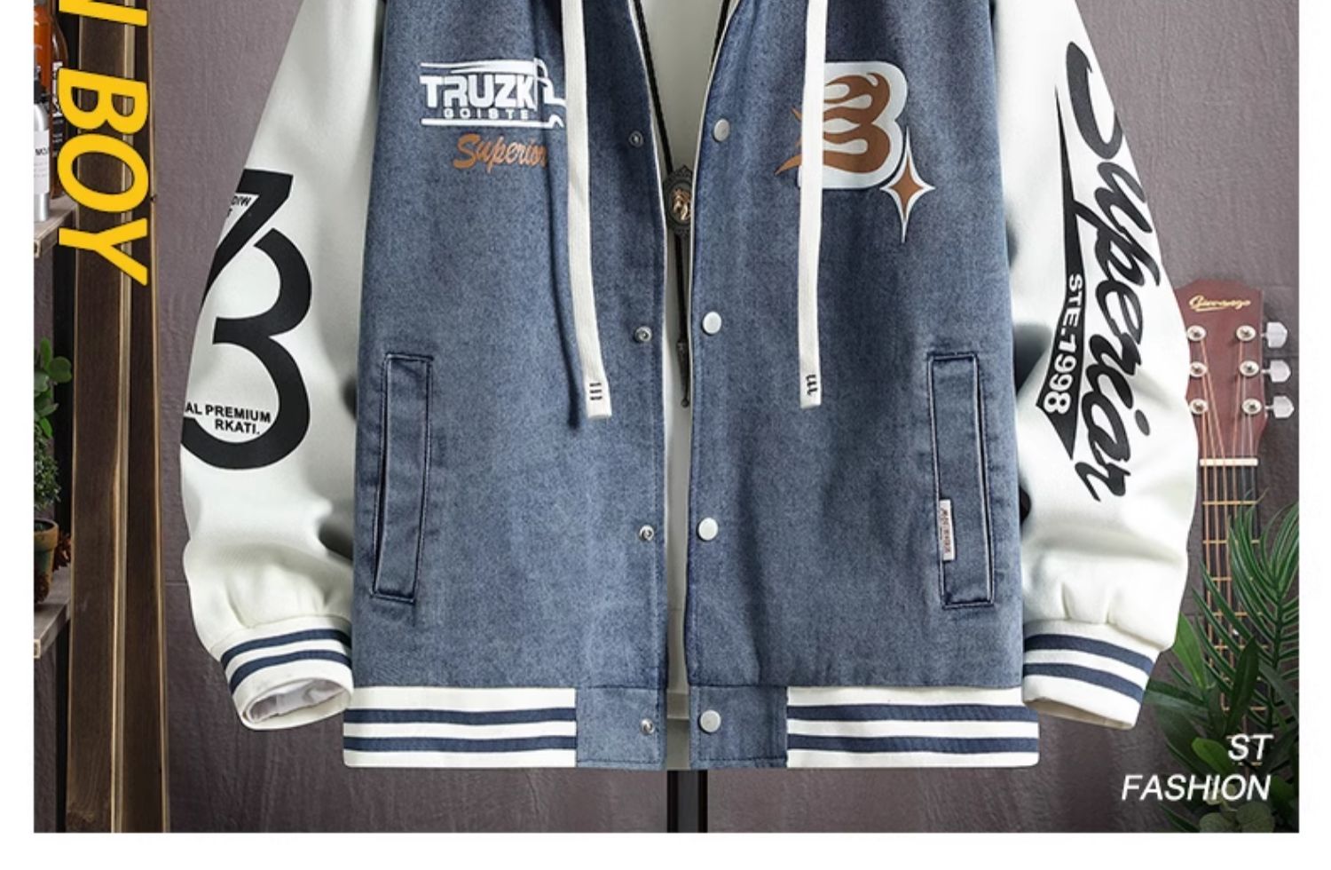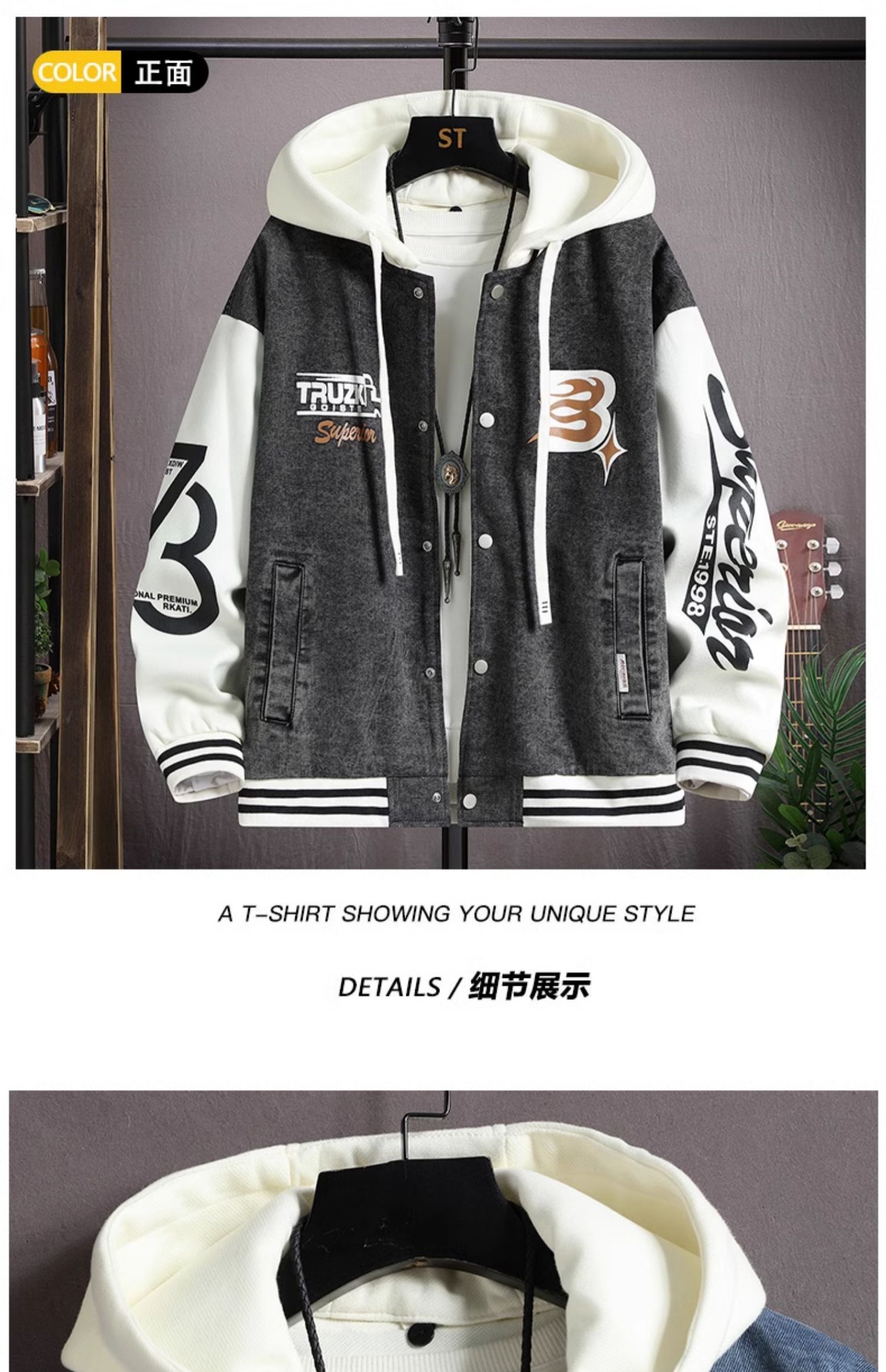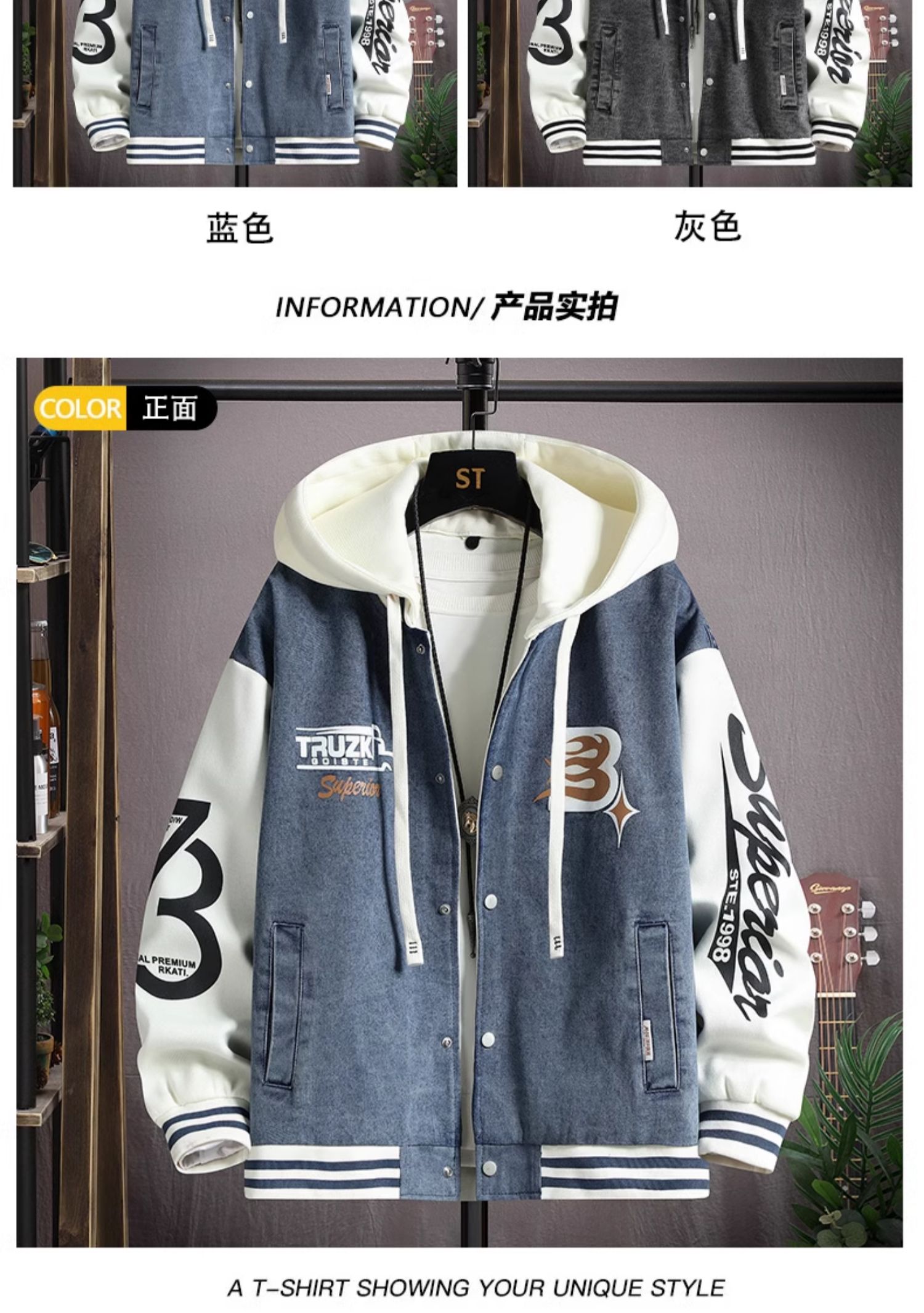花花公子牛仔外套男士2025秋冬季新款青少年潮流百搭拼接上衣夾克