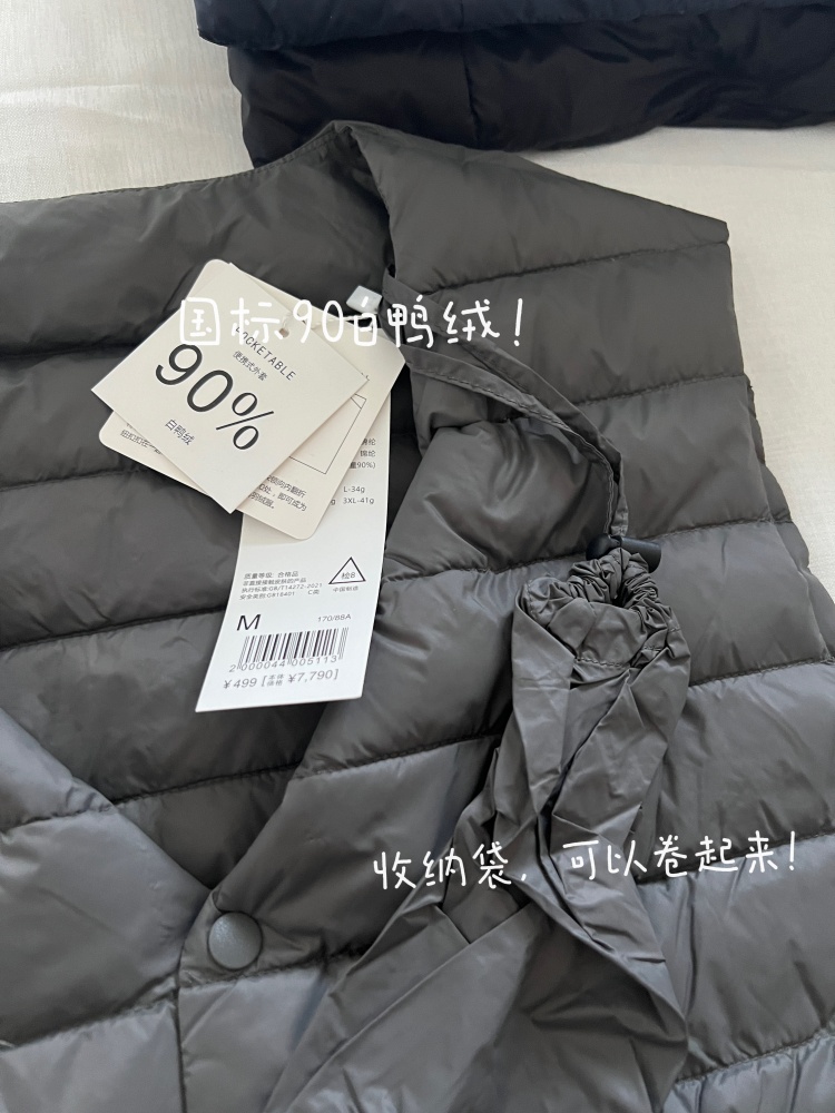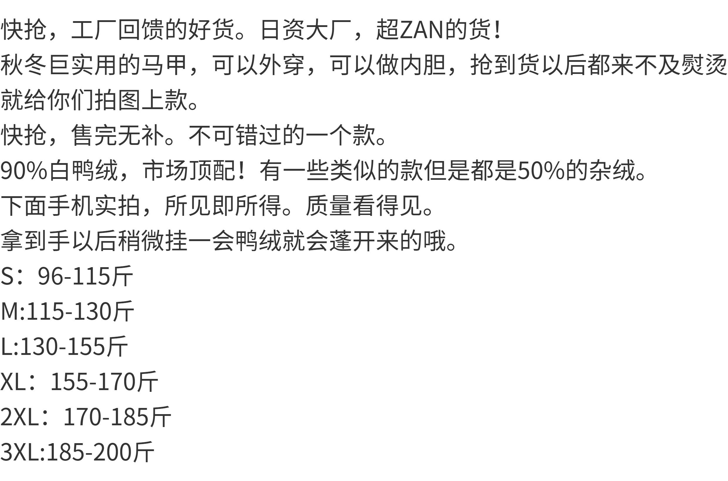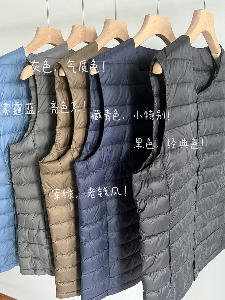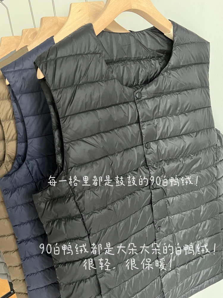 2025秋冬新品90白鴨絨保暖輕薄純色圓領可攜式羽絨內膽馬甲背心男士