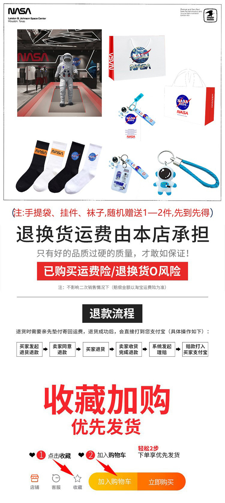 NASA聯名潮牌羽絨服男女同款短款兩雙面穿冬季加厚情侶棒球服外套
