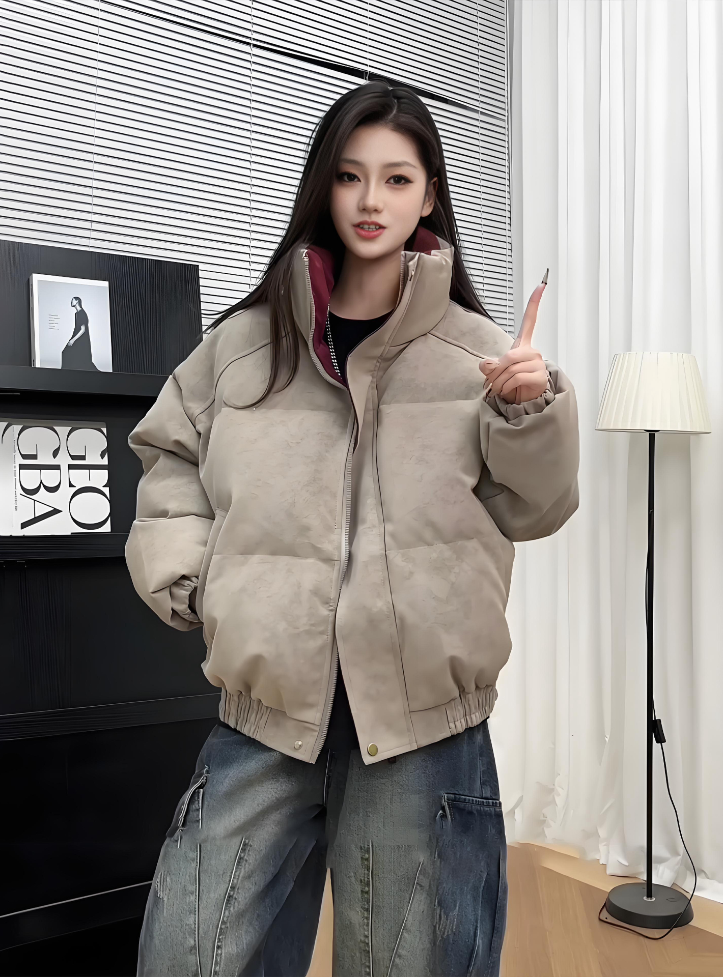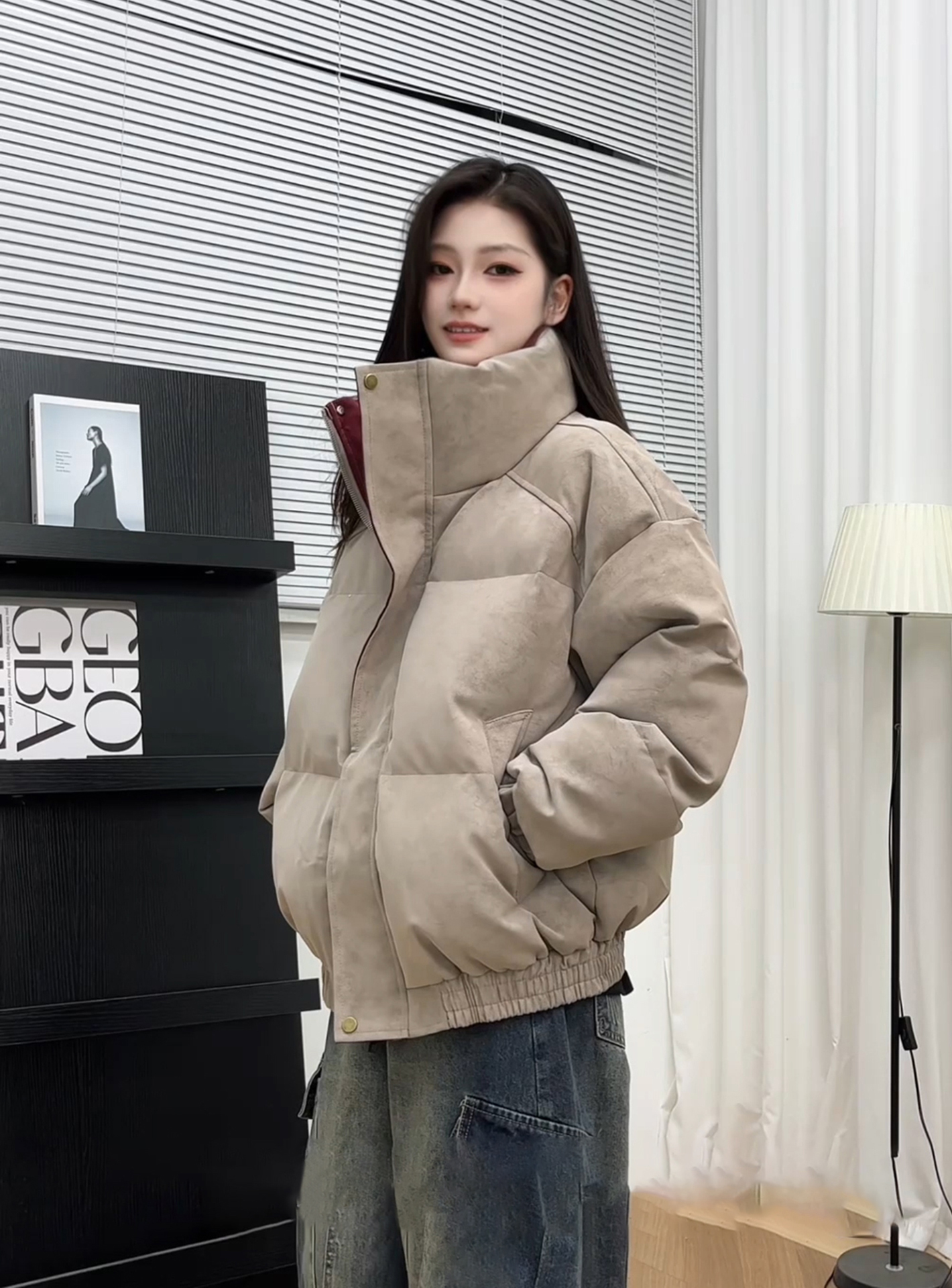 灰色盔甲皮棉服男冬加厚防寒羽絨棉襖外套短款cleanfit立領麵包服