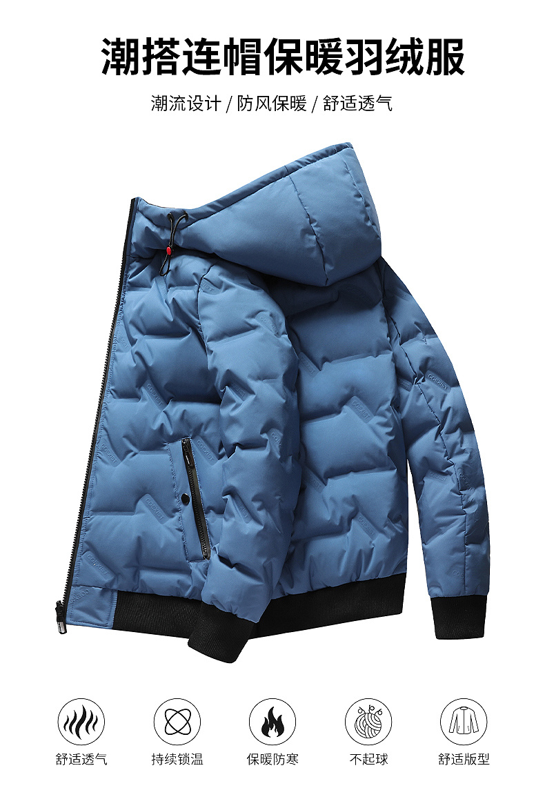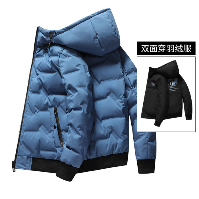 雙面穿白鴨絨羽絨服短款2025秋冬季新款連帽男裝純色保暖防風外套