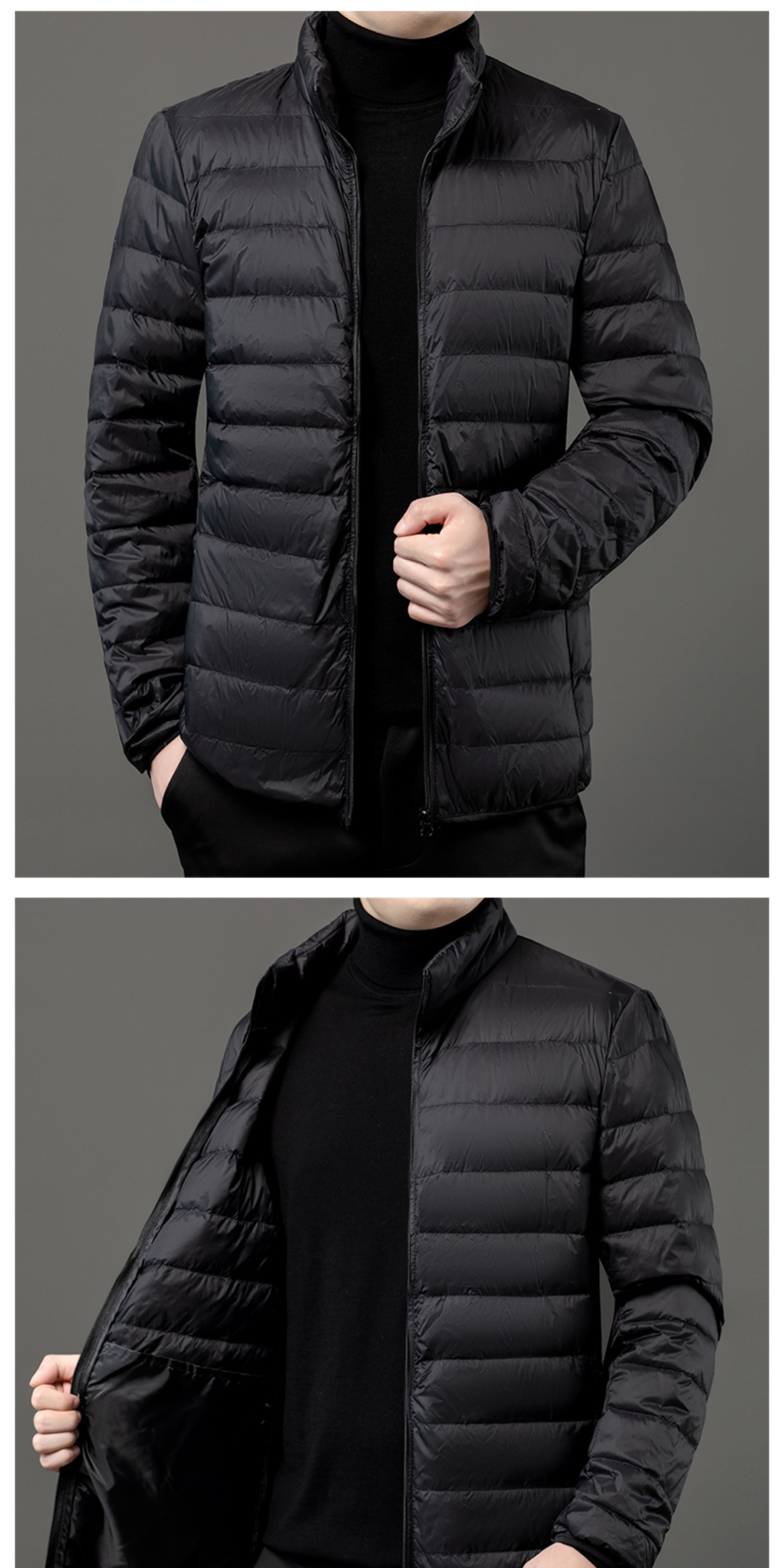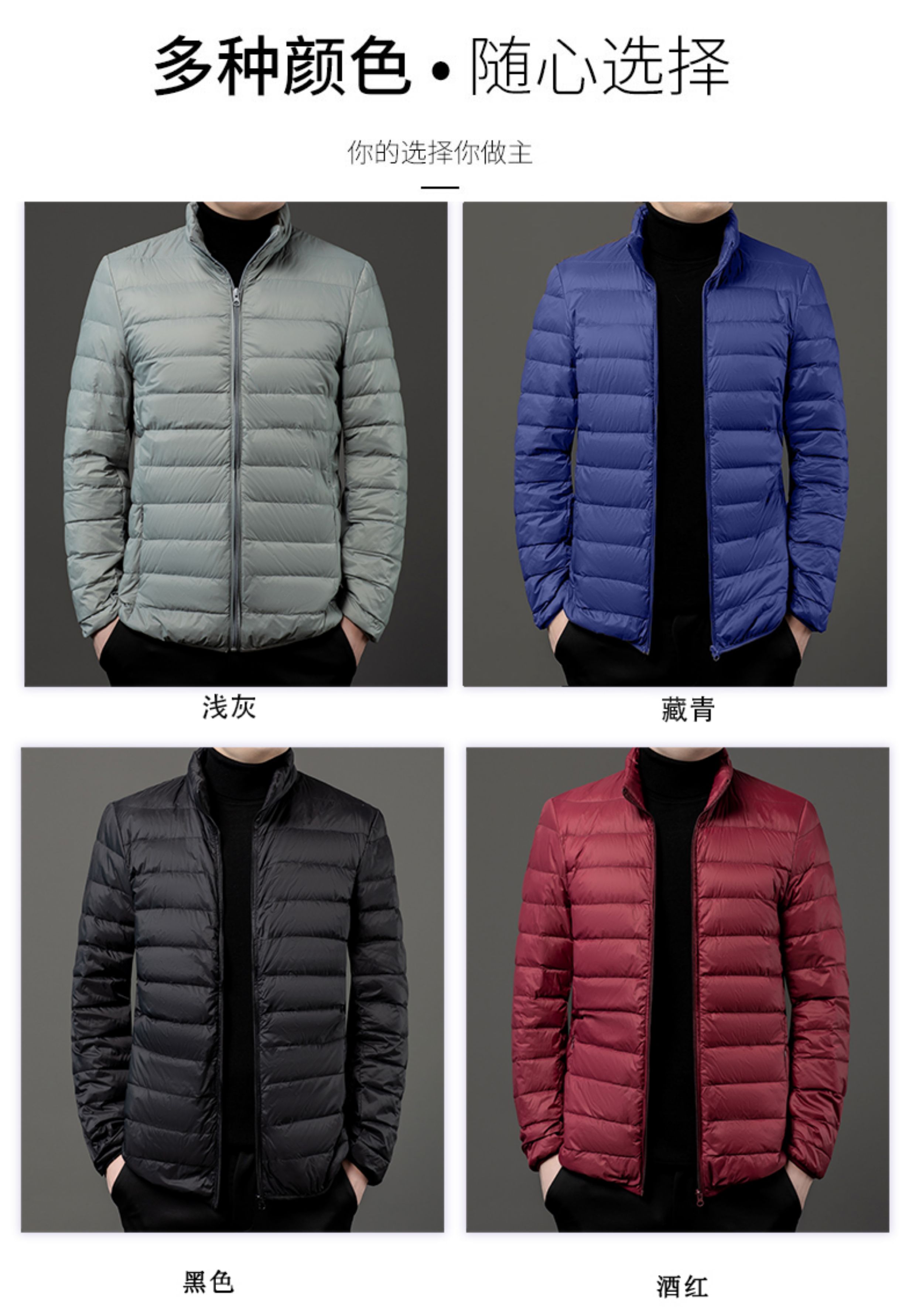 啄木鳥輕薄羽絨服男冬季新款超薄款立領短款爸爸保暖內穿內膽外套