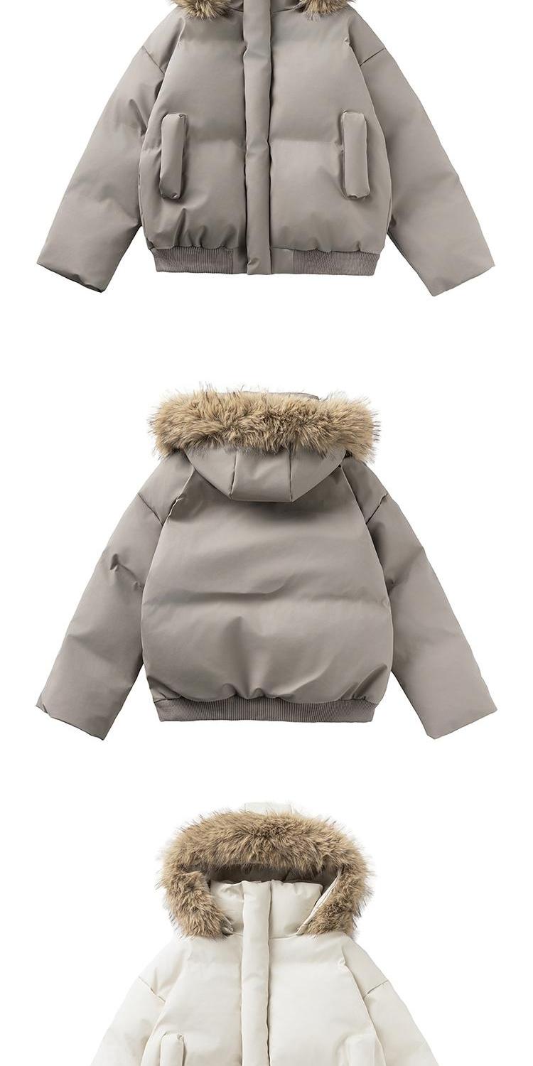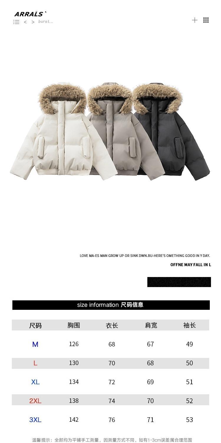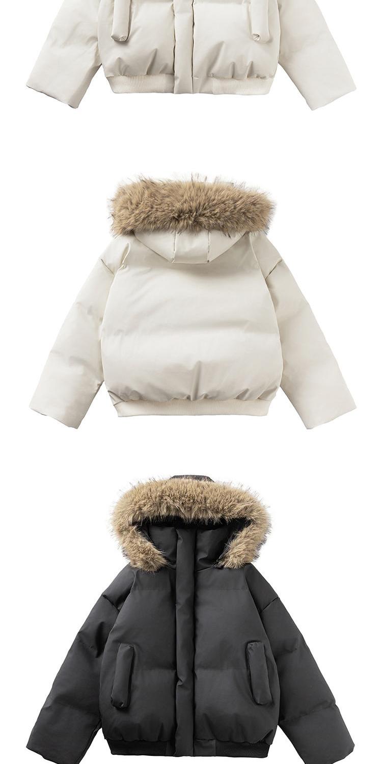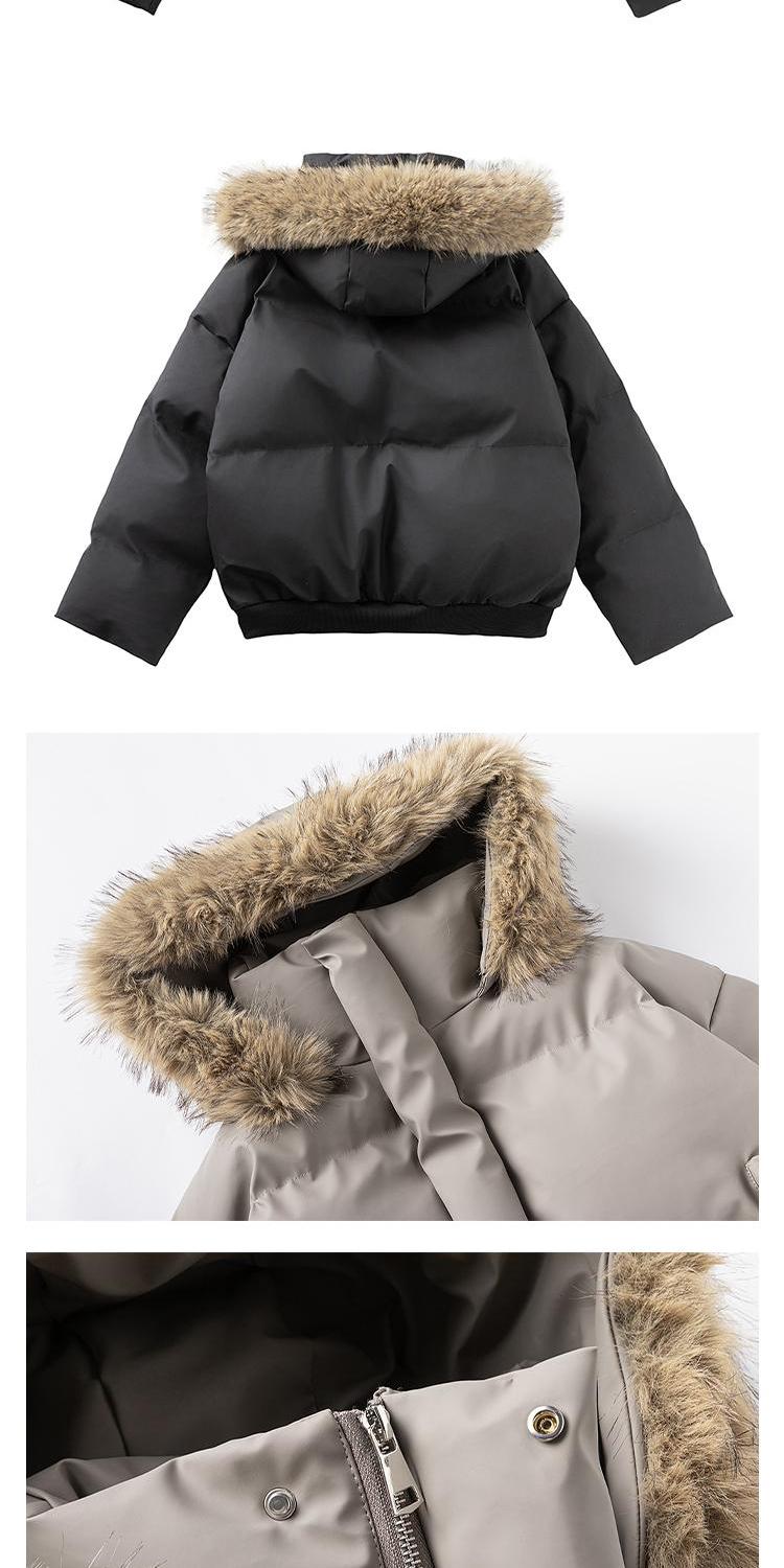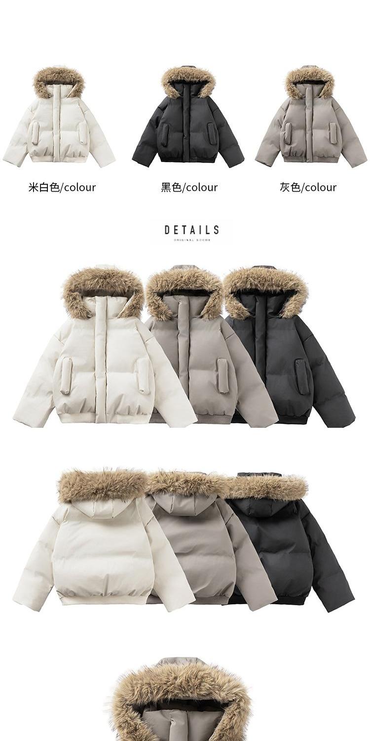 黑色短款毛領羽絨服男冬季加厚保暖工裝棉衣外套連帽情侶派克棉服