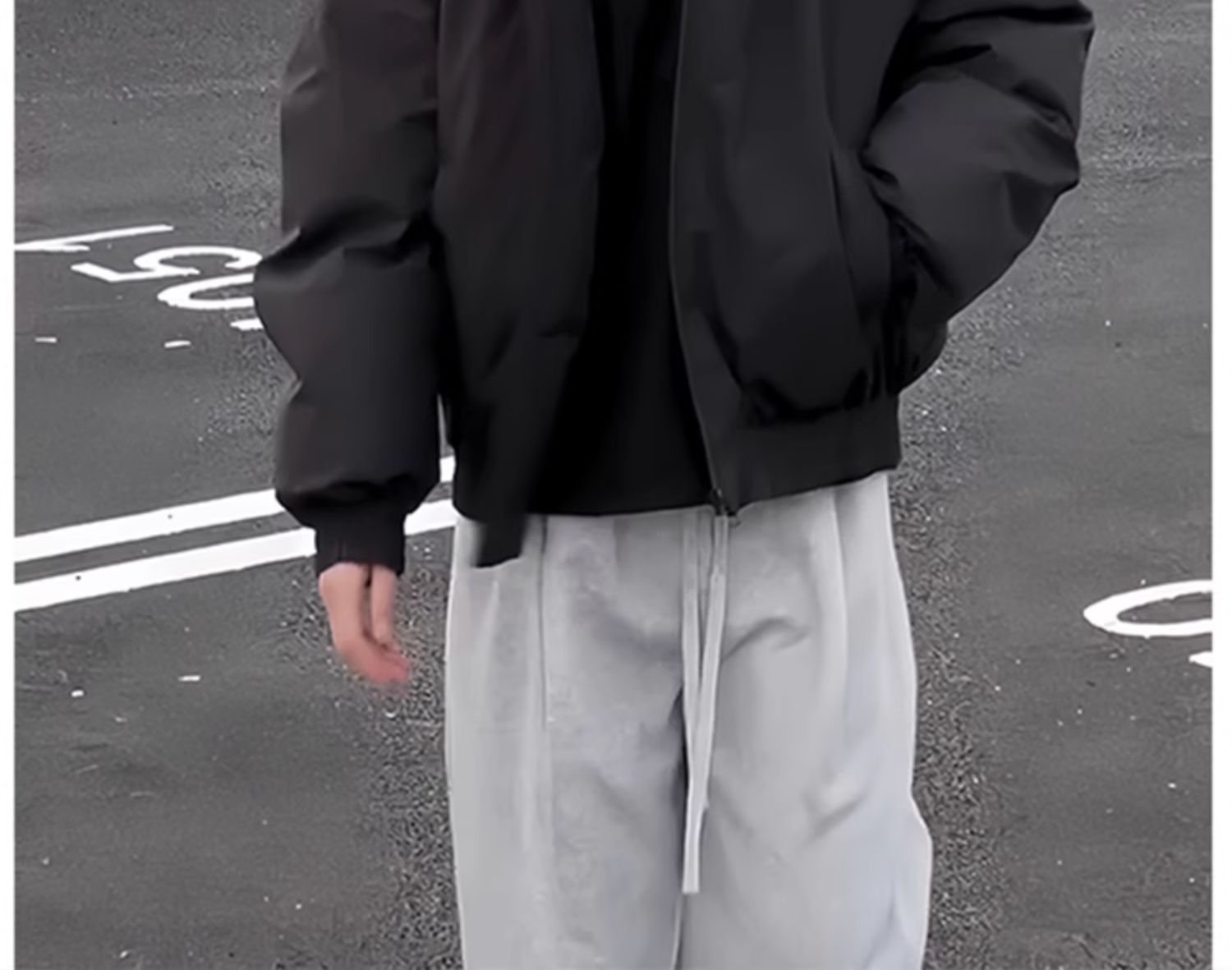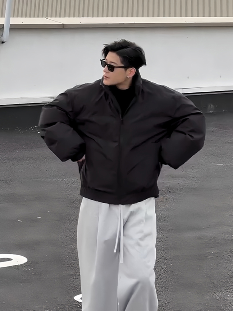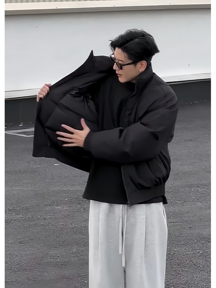 黑色飛行夾克羽絨服男款廓形短款工裝外套cleanfit美式痞帥棒球服
