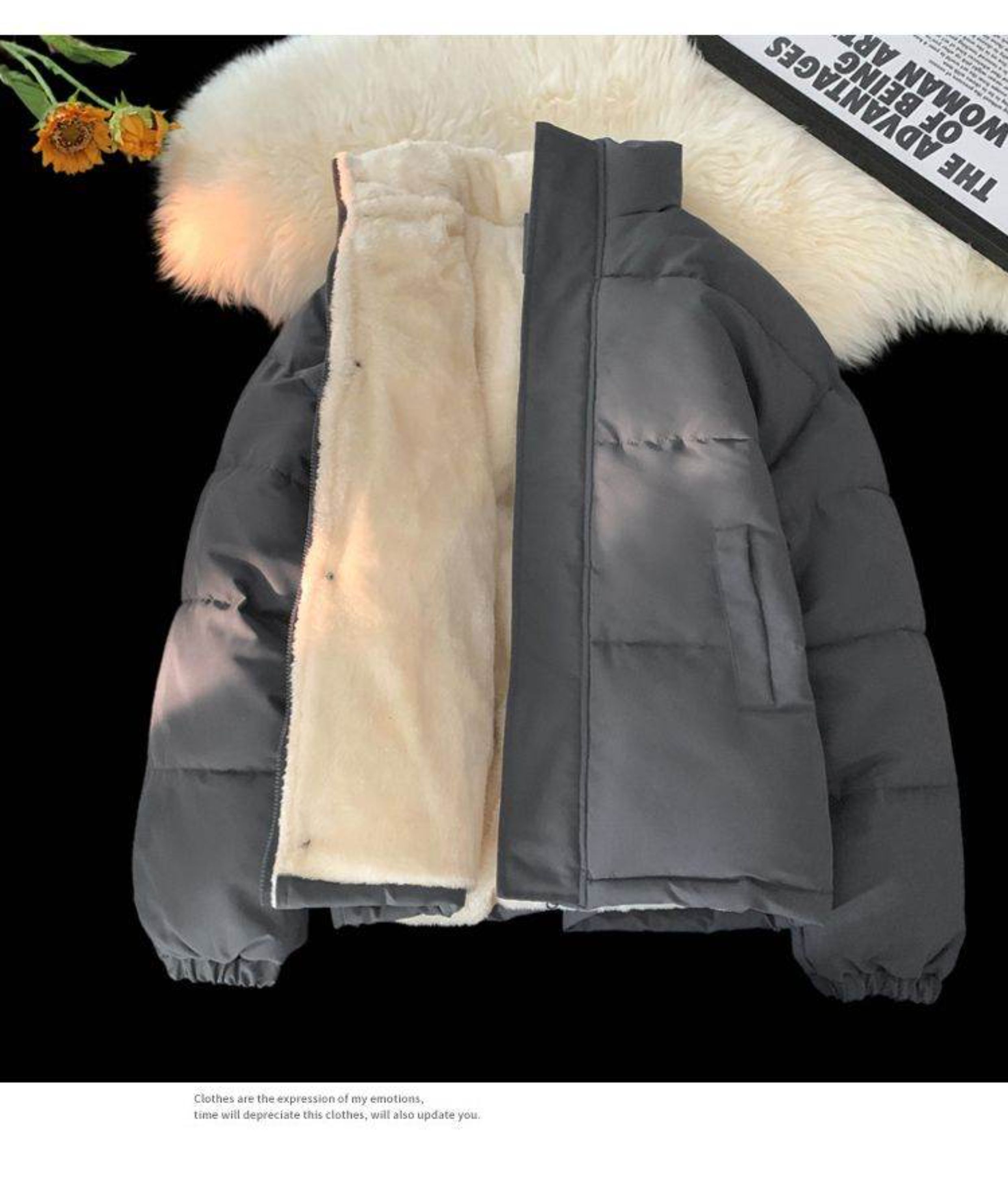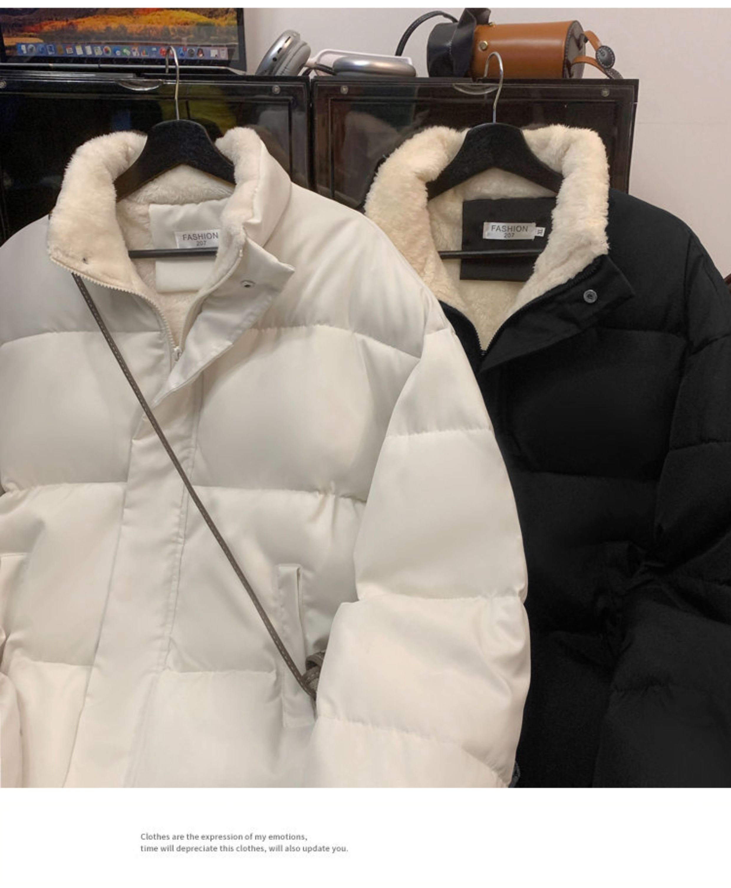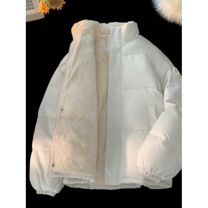 加絨加厚羽絨服男24新款保暖立領冬季外套高級感大碼寬松棉襖情侶