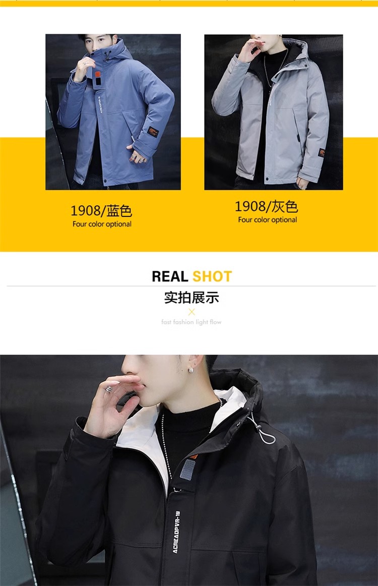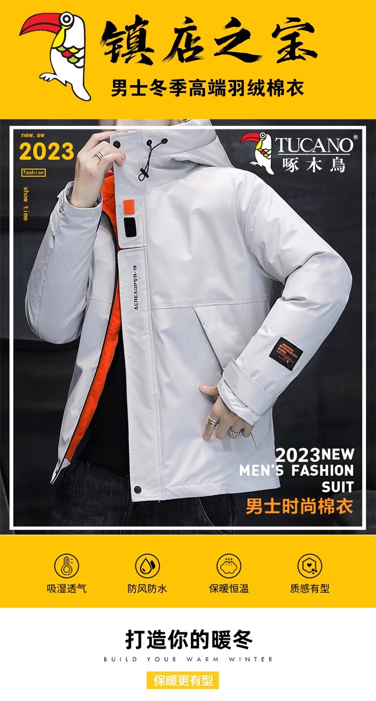 啄木鳥羽絨服男冬季新款加絨加厚棉服連帽棉襖外套冬裝保暖棉衣男