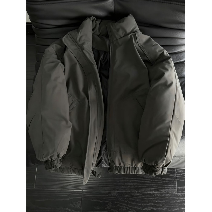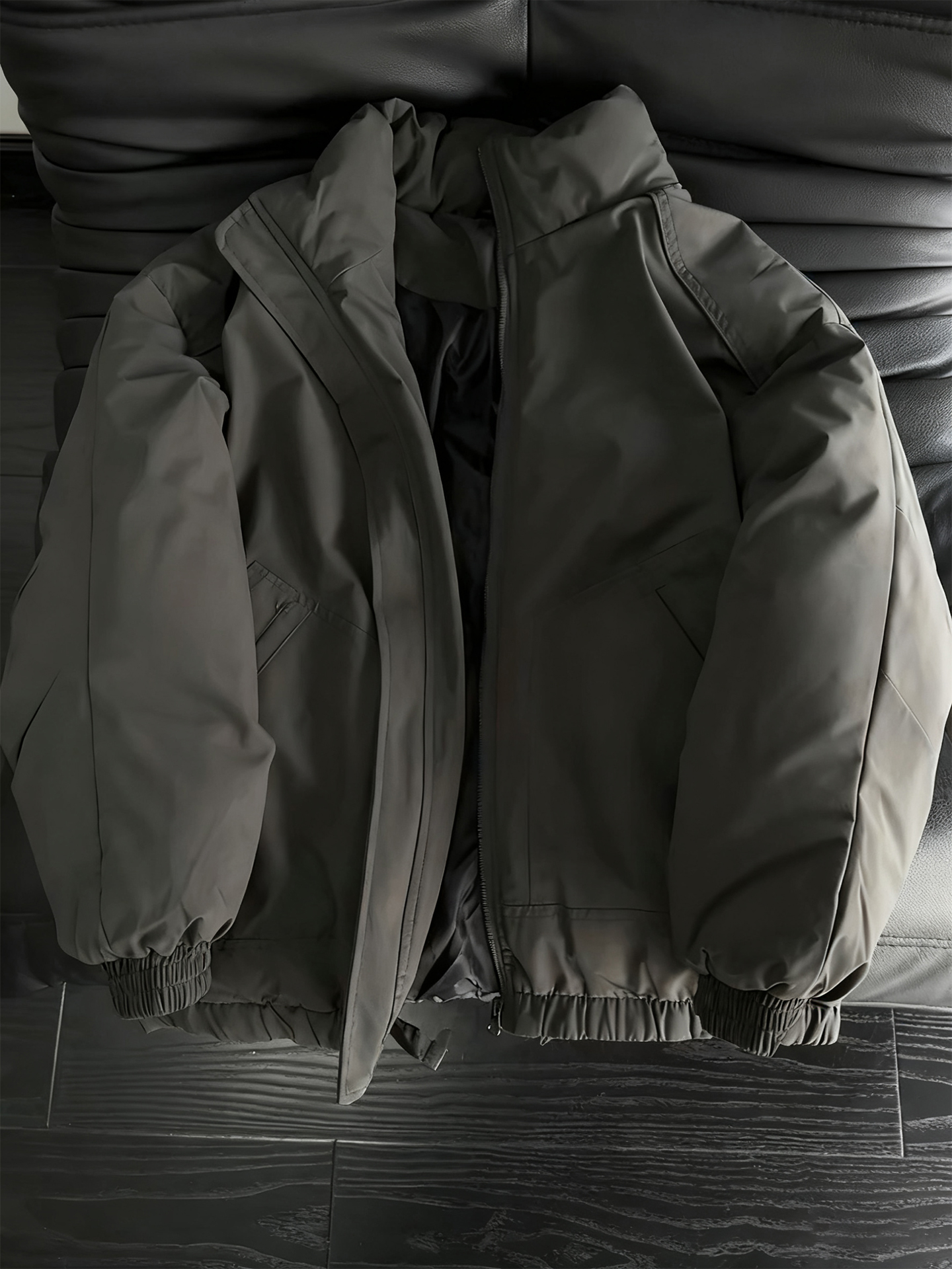 cleanfit深灰色飛行夾克羽絨棉服男款冬季立領棒球服美式棉衣外套
