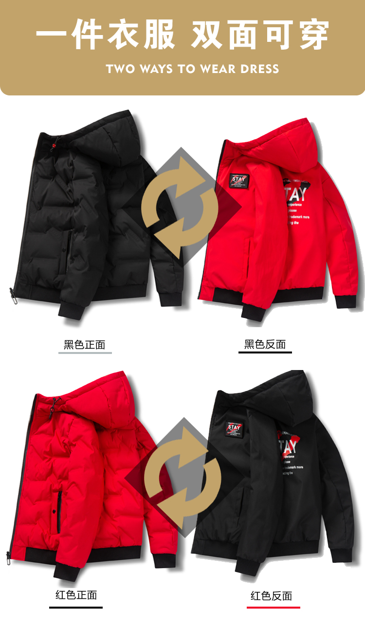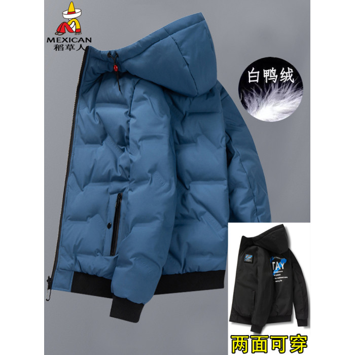 稻草人羽絨服男士冬季2025新款連帽雙面穿短款外套白鴨絨加厚上衣