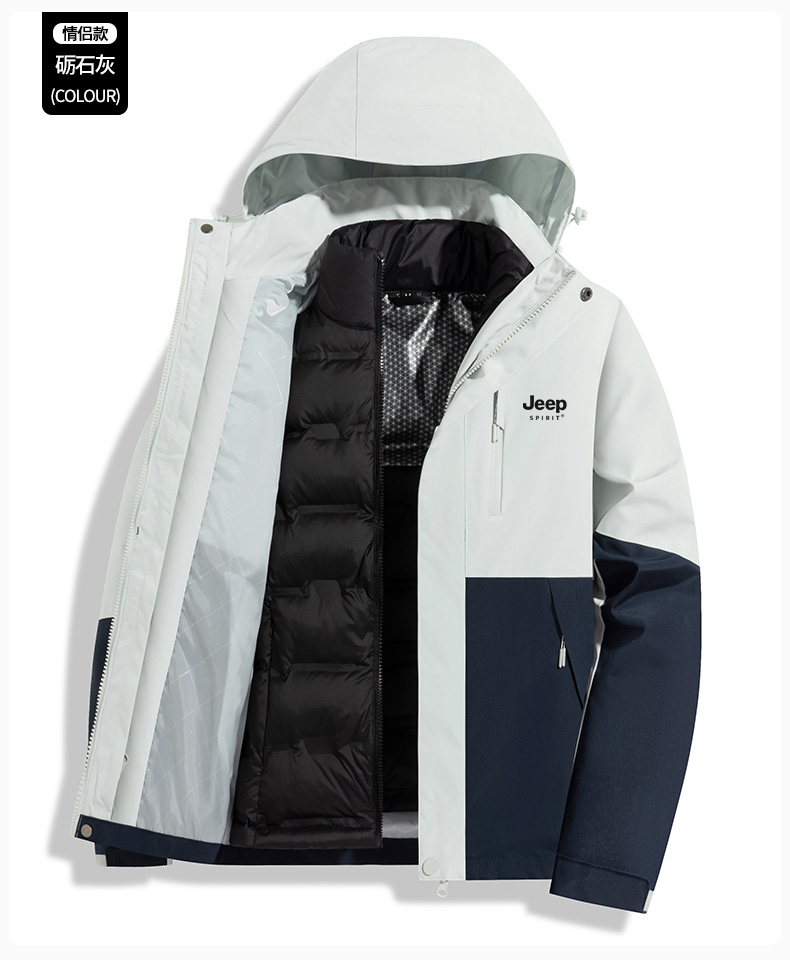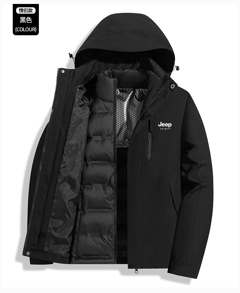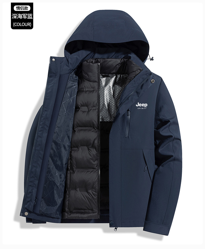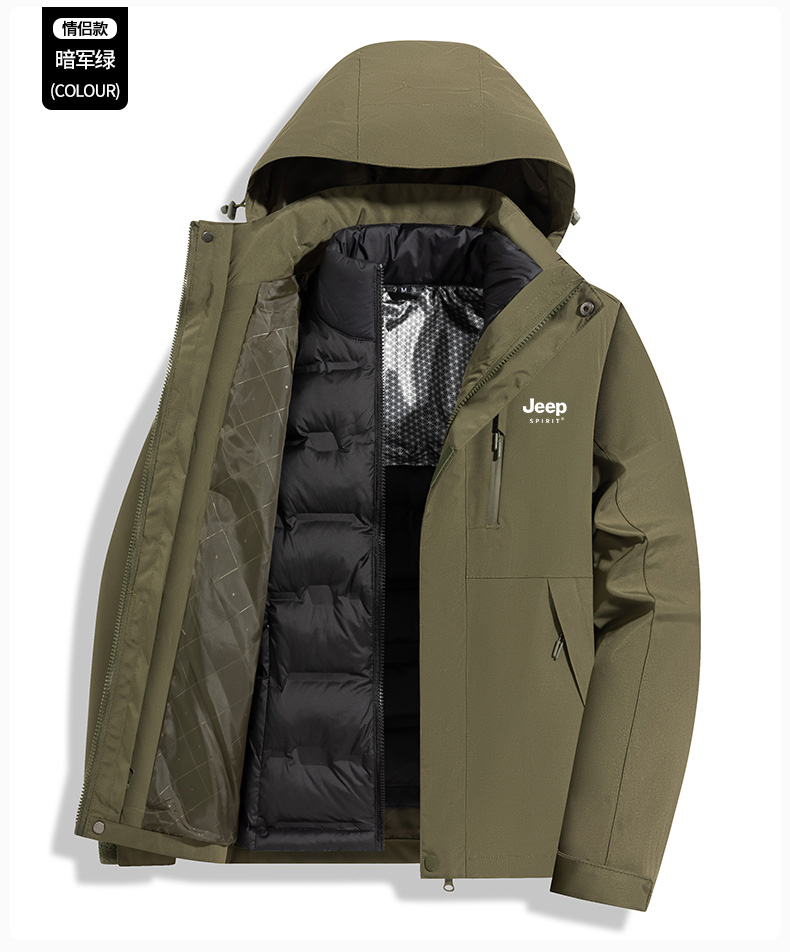 JEEP羽絨服男2025新款三合一沖鋒衣可拆卸內膽青少年加絨加厚外套